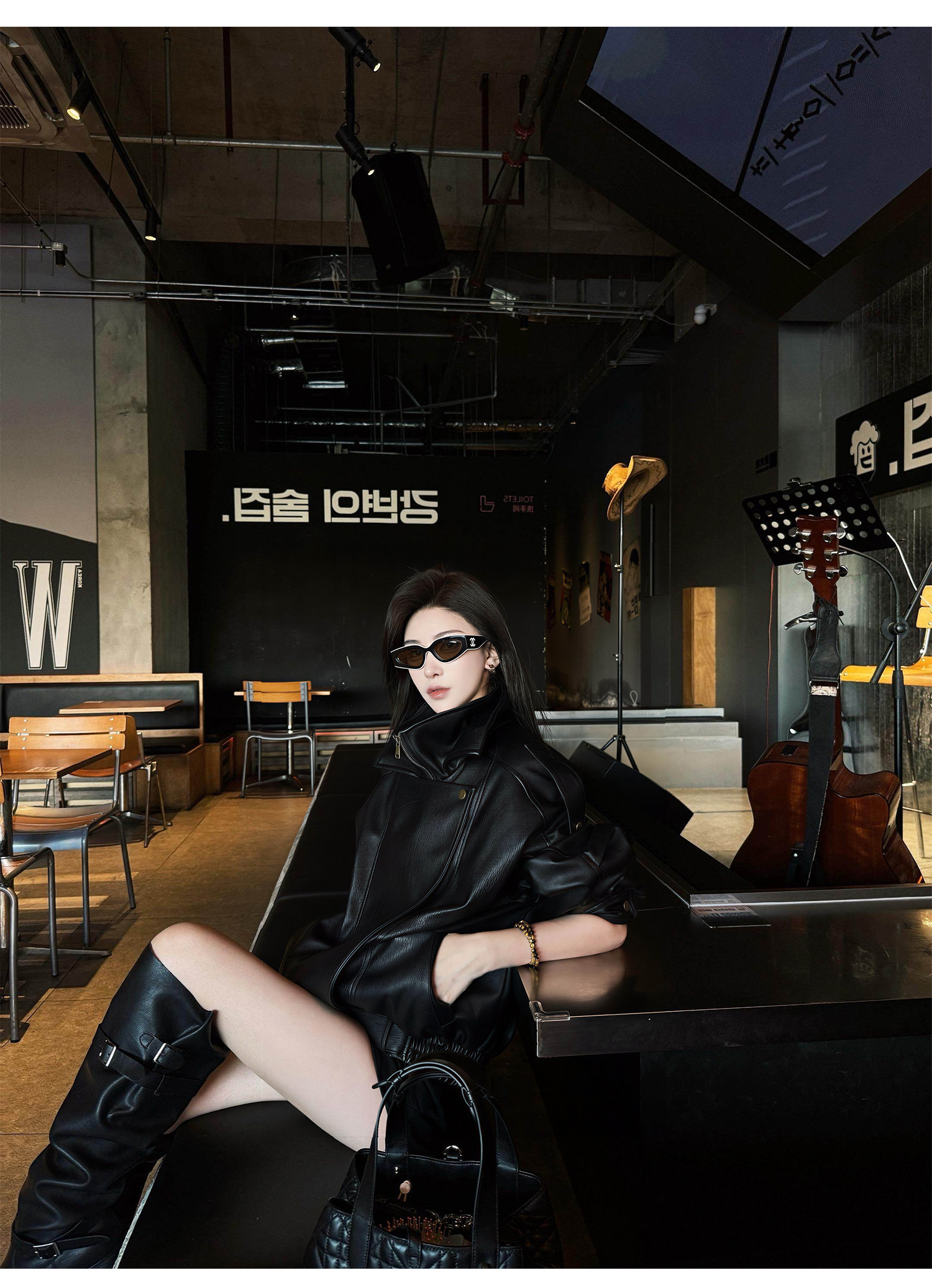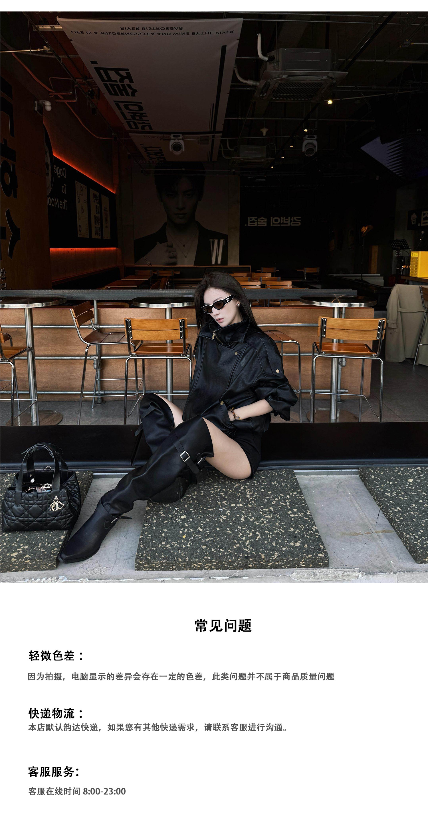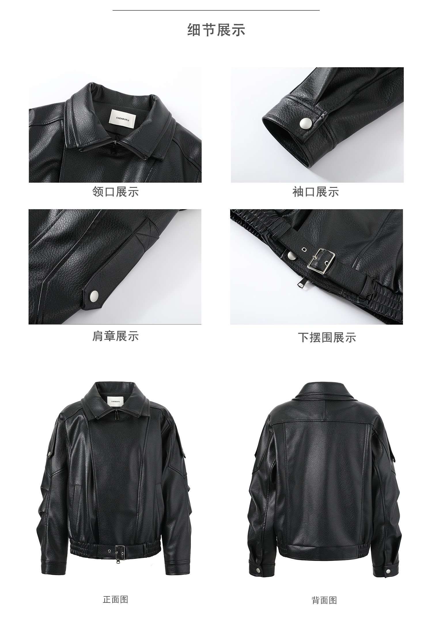 Chen Bu Ku High-End Black Leather Jacket for Women, Spring Cool and Stylish Loose Protein Leather Biker Jacket with Stand Collar