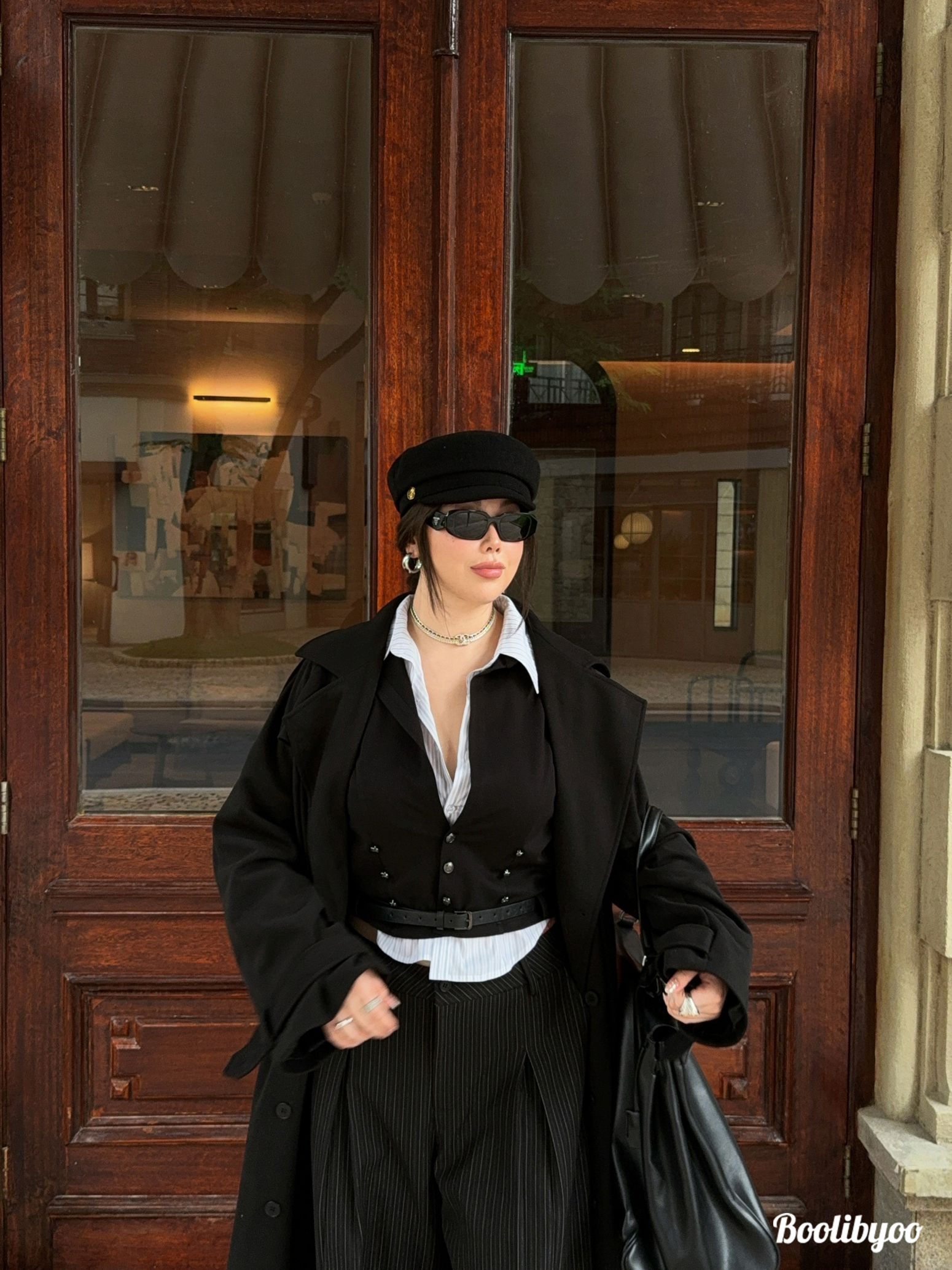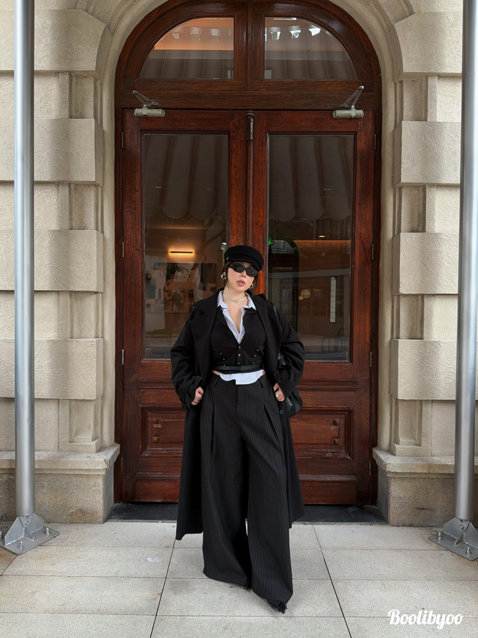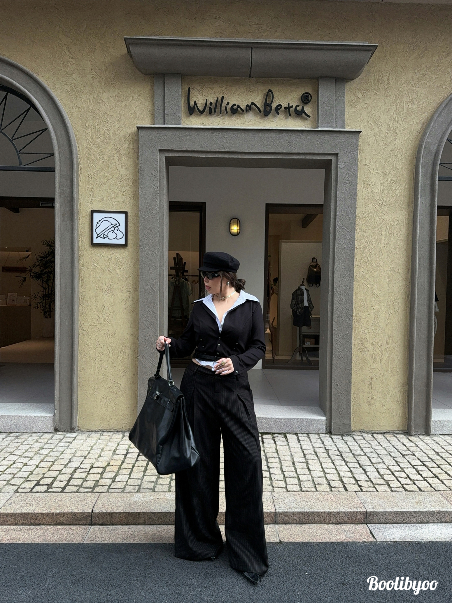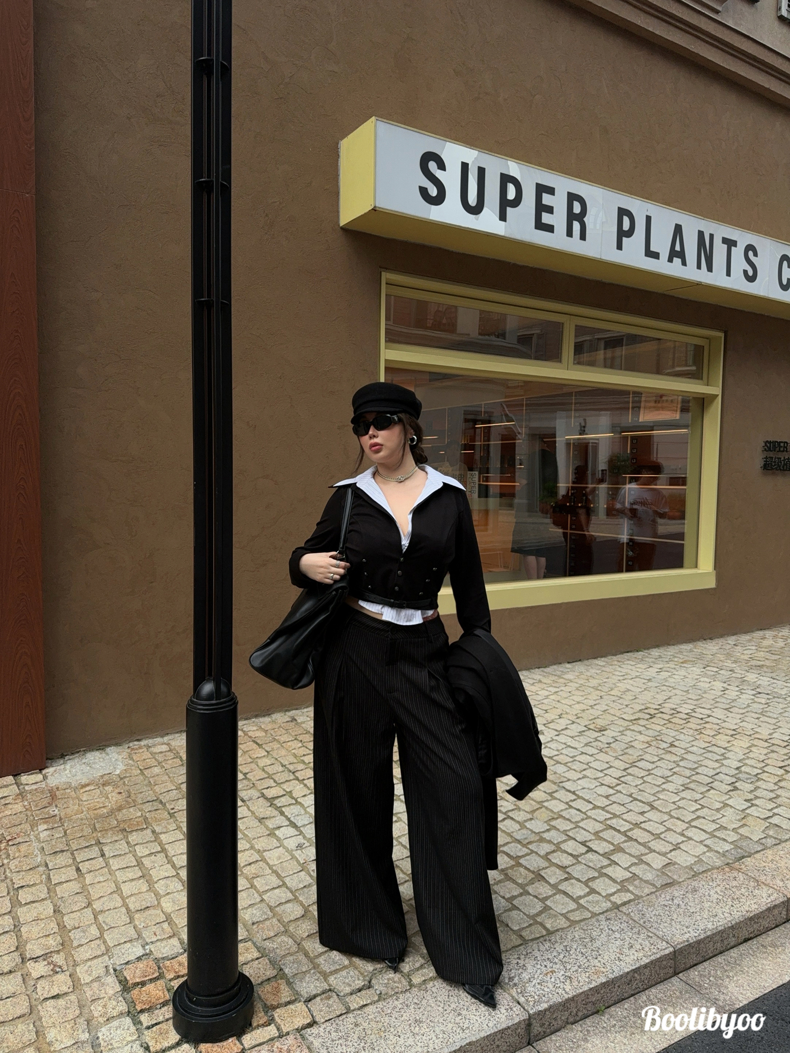 Boolibyoo High-End Office Aesthetics Plus-Size Hot Girl Siren Style Fake Two-Piece Deep V Waist-Cinching Long-Sleeve Shirt