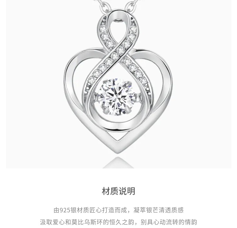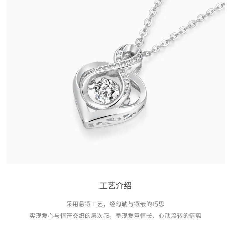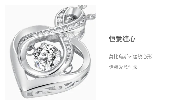 Lao Fengxiang Möbius Strip Heart Pendant 925 Silver Necklace for Women Gift