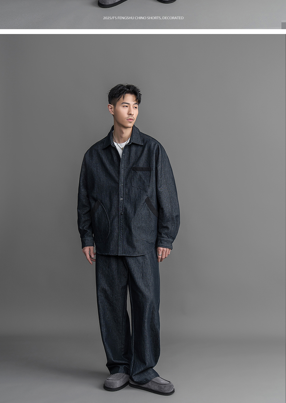 Fengshu Autumn Retro Washed High-End Denim Suit Men's New Loose Casual Shirt Men's Two-Piece Set