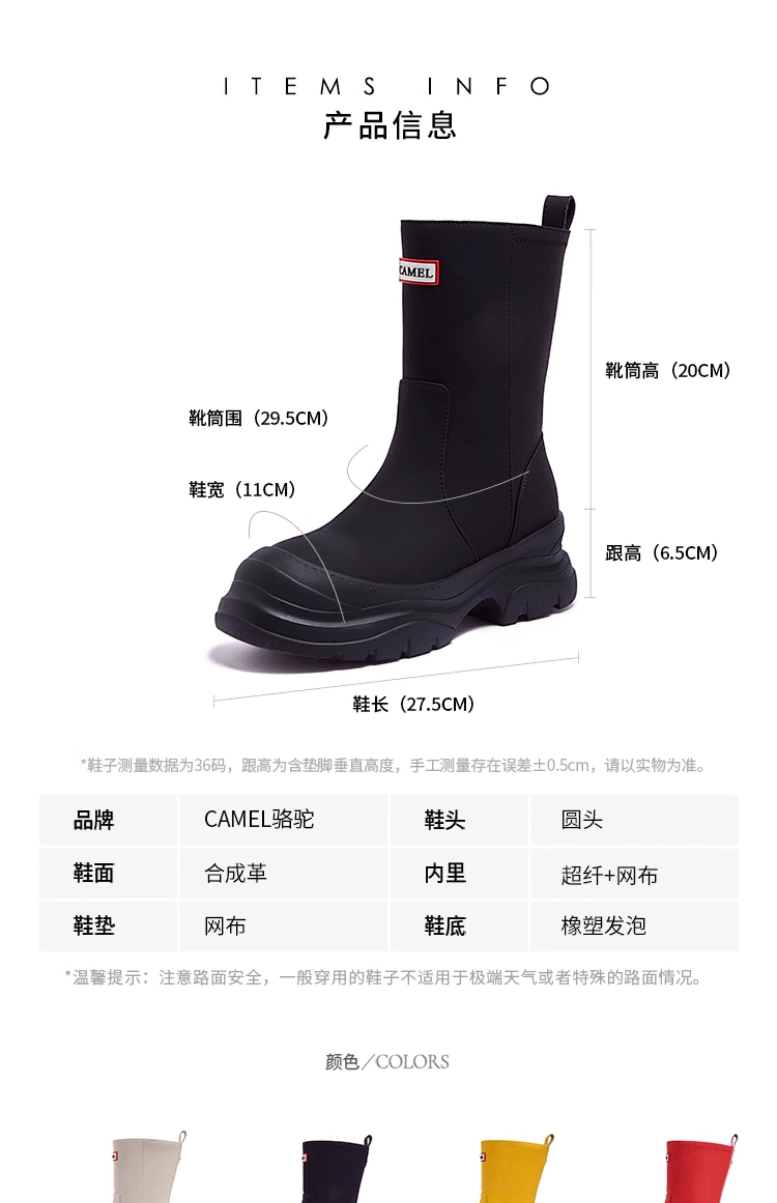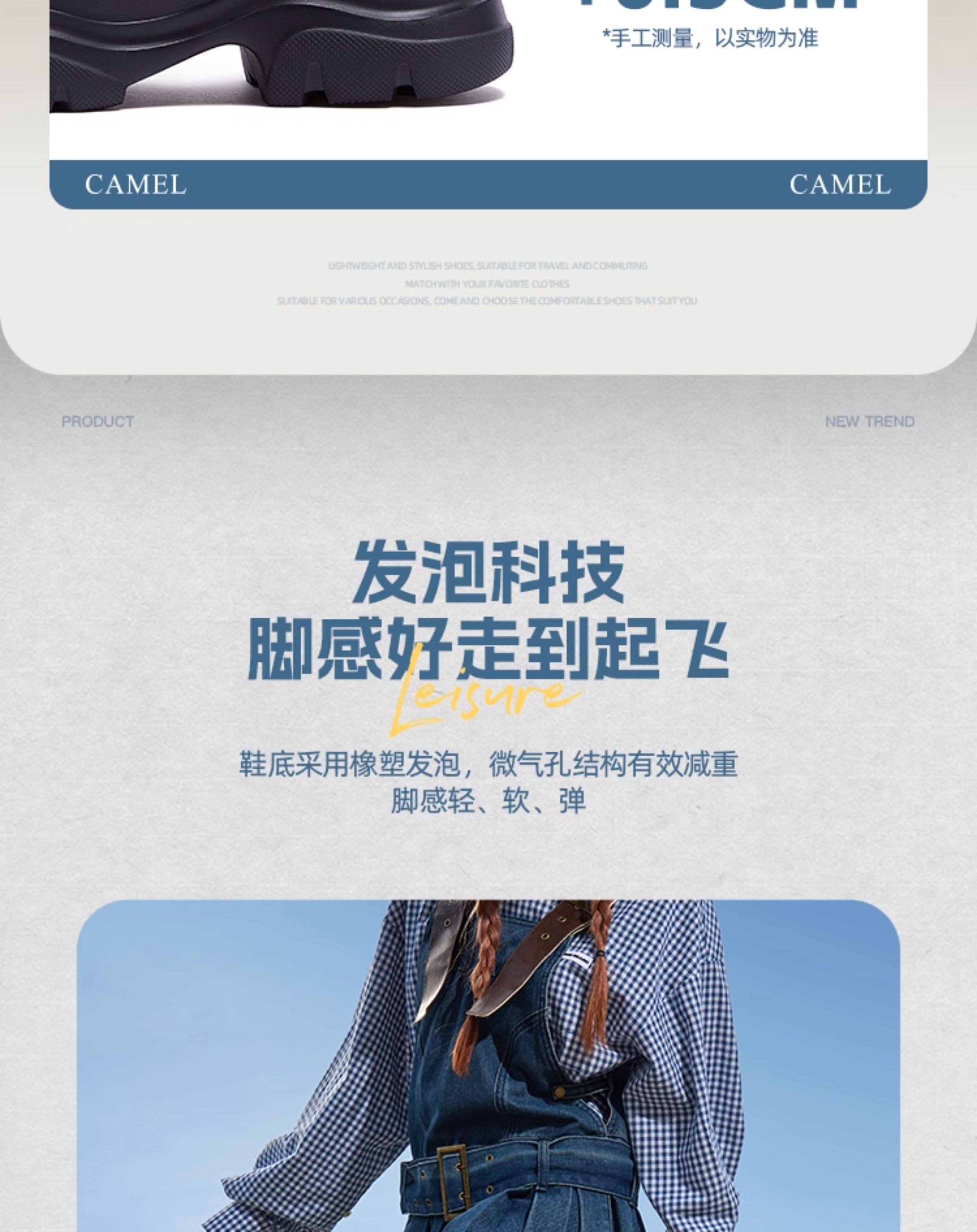 Camel Outdoor Casual Shoes 2025 Women's Waterproof Versatile Thick-Soled Height-Increasing Fashion Boots Slimming Casual Short Boots