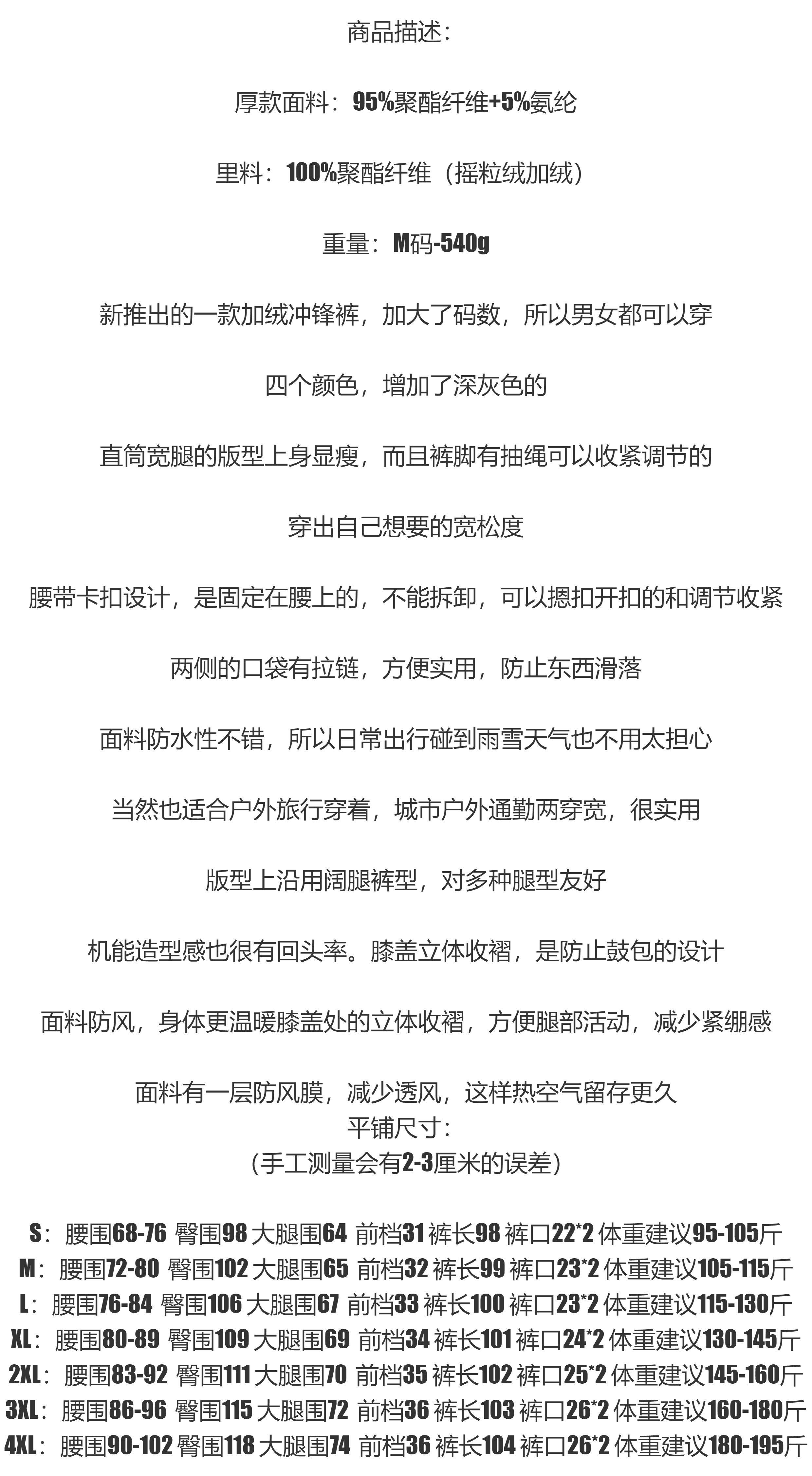 Men's and Women's Fleece-Lined, Thickened, Windproof, Waterproof, Wide-Leg Paratrooper Pants with Belt, Casual Pants, Warm Outdoor Work Pants