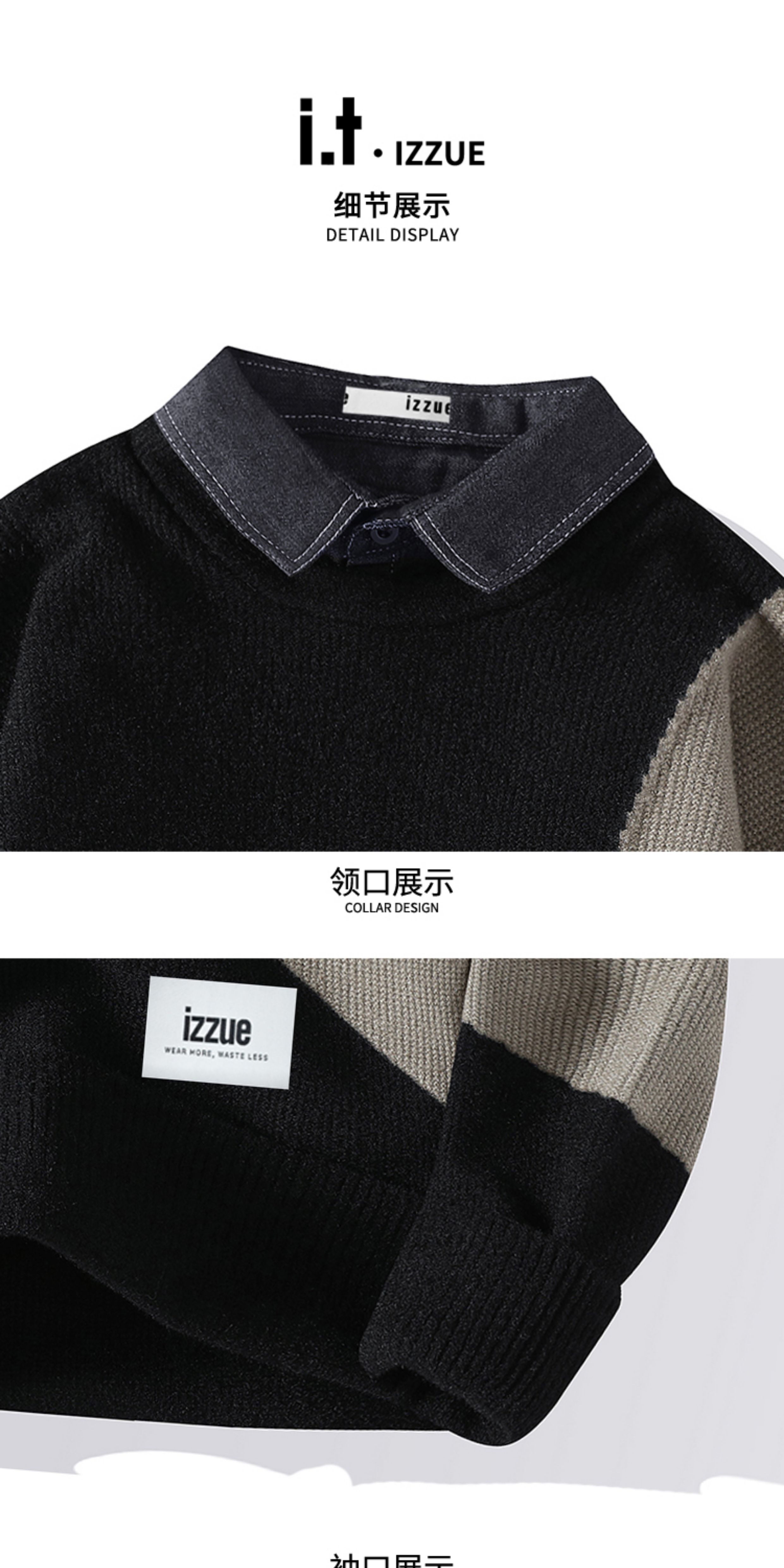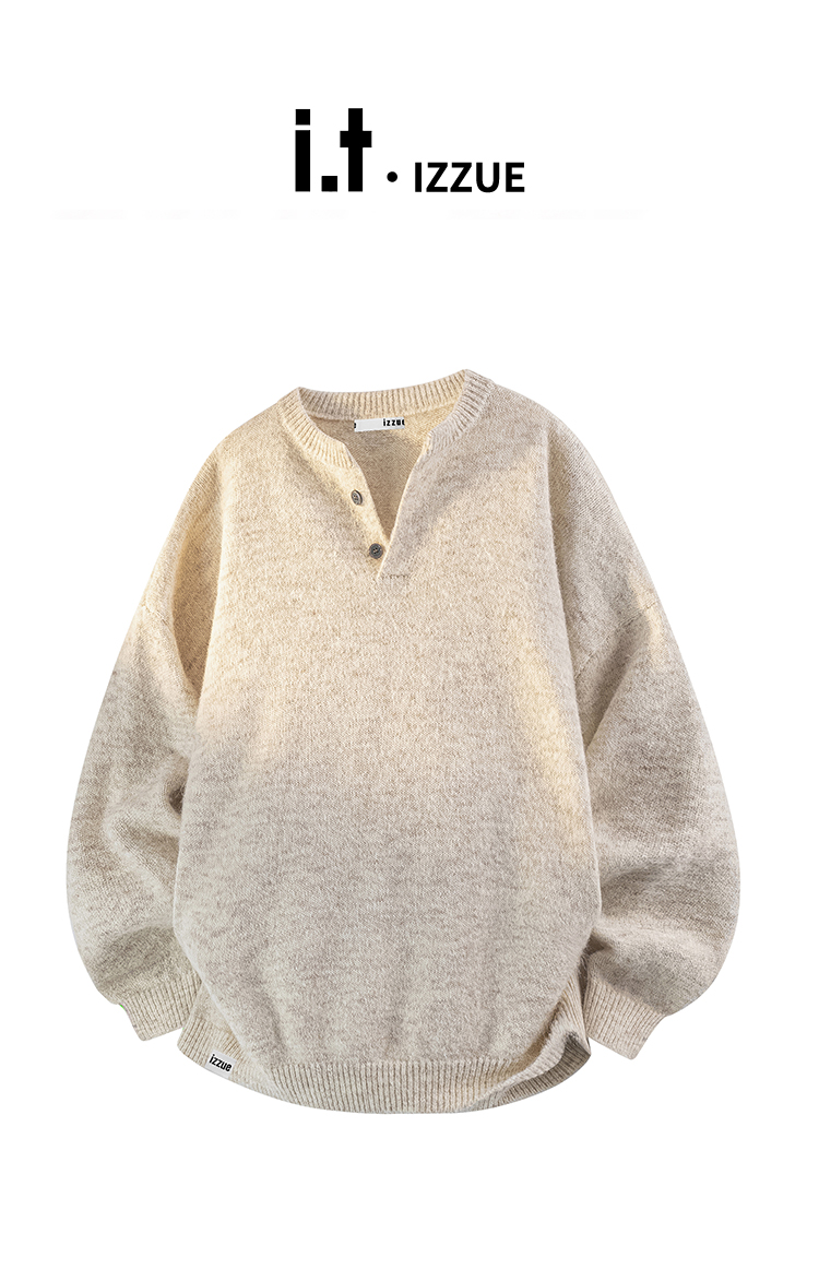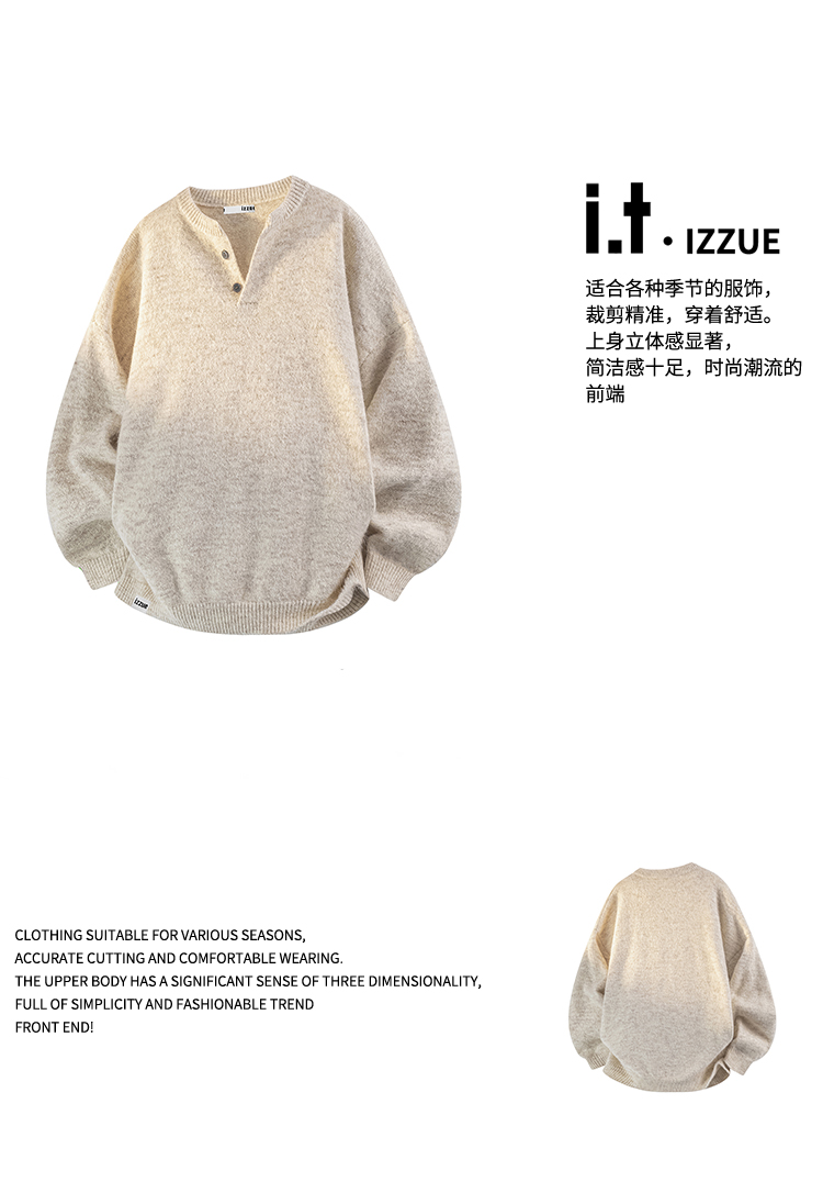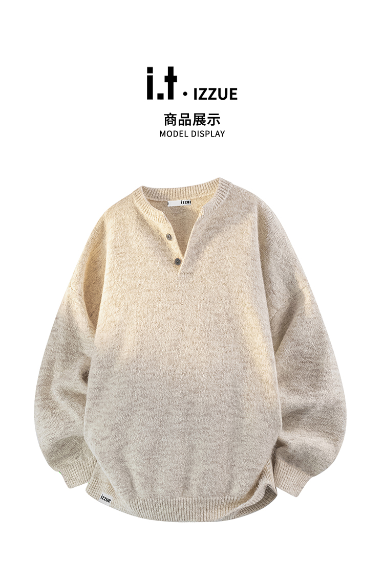 It Izzue High-End Henry Collar Sweater for Men, New Autumn American Style Loose Casual Couple Knitwear Y