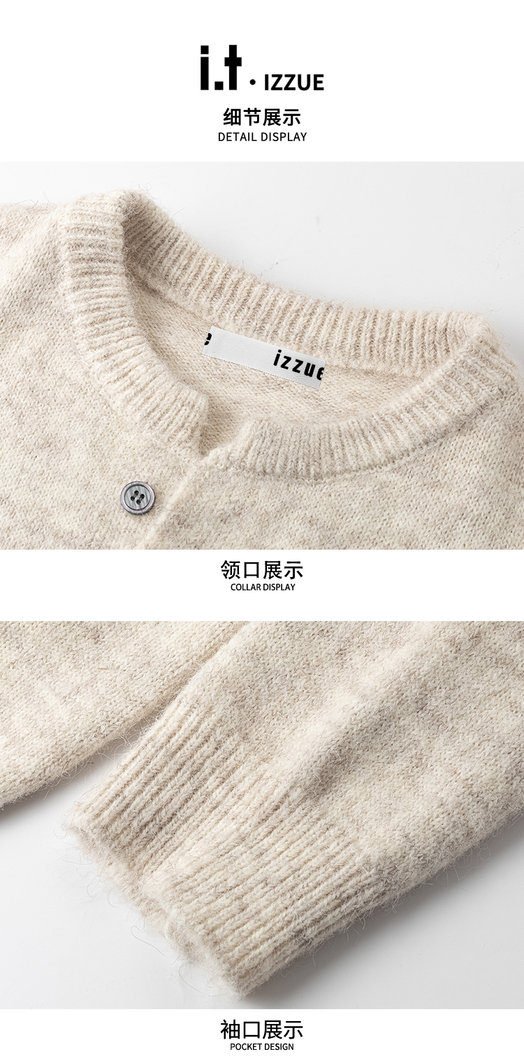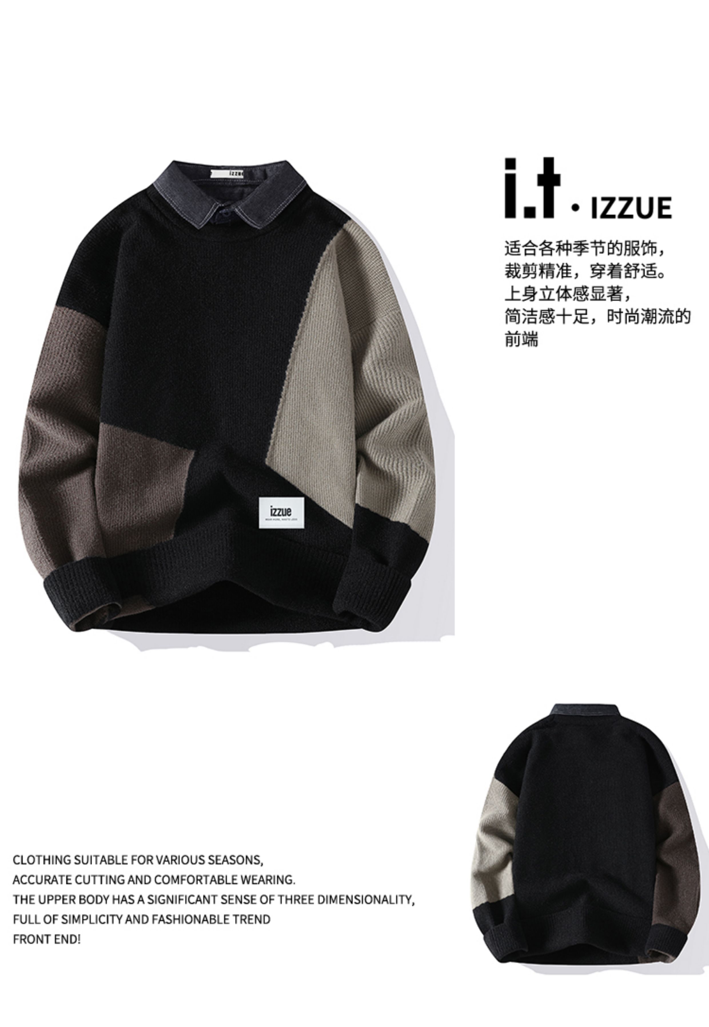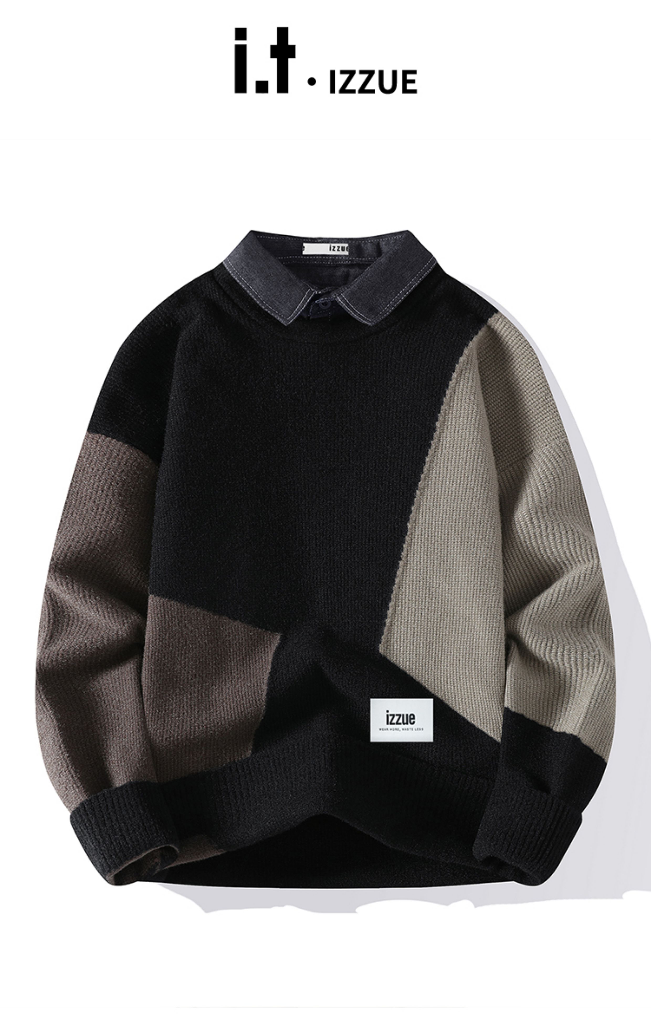 It Izzue High-End Henry Collar Sweater for Men, New Autumn American Style Loose Casual Couple Knitwear Y