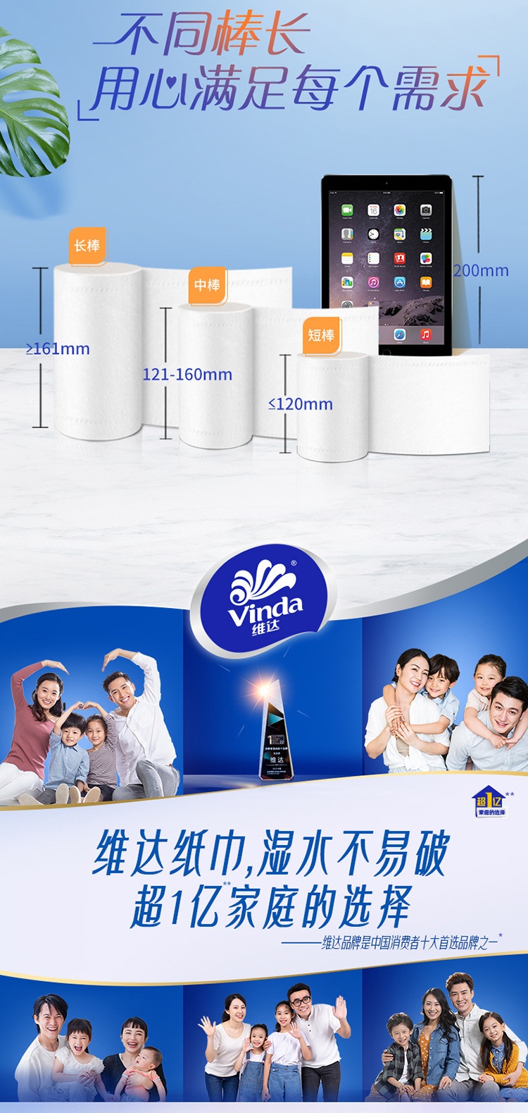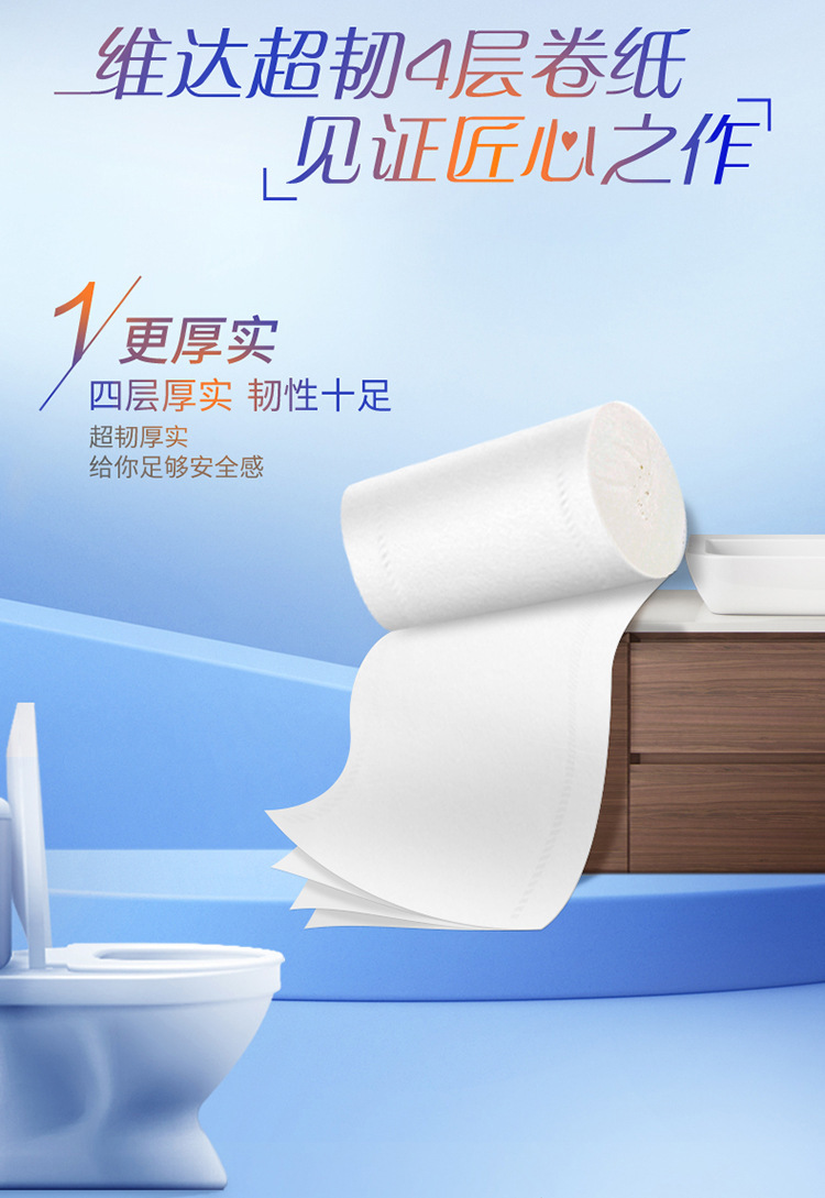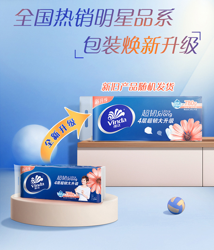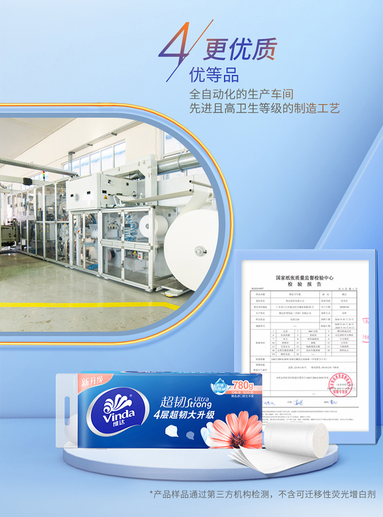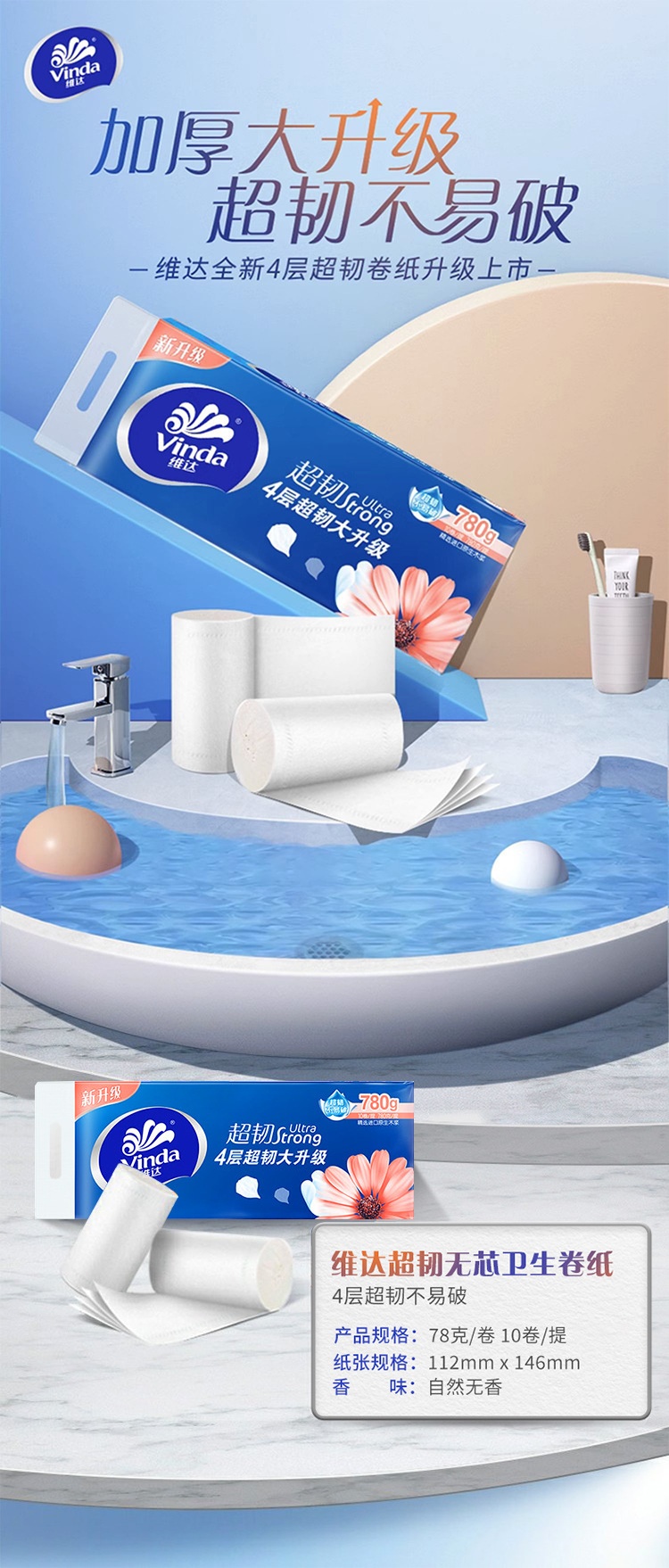 Vinda Roll Paper, Ultra-Strong, Coreless, 4-Ply, 10 Rolls, 780g Roll, Toilet Paper, Sanitary Paper, Household Paper Towels