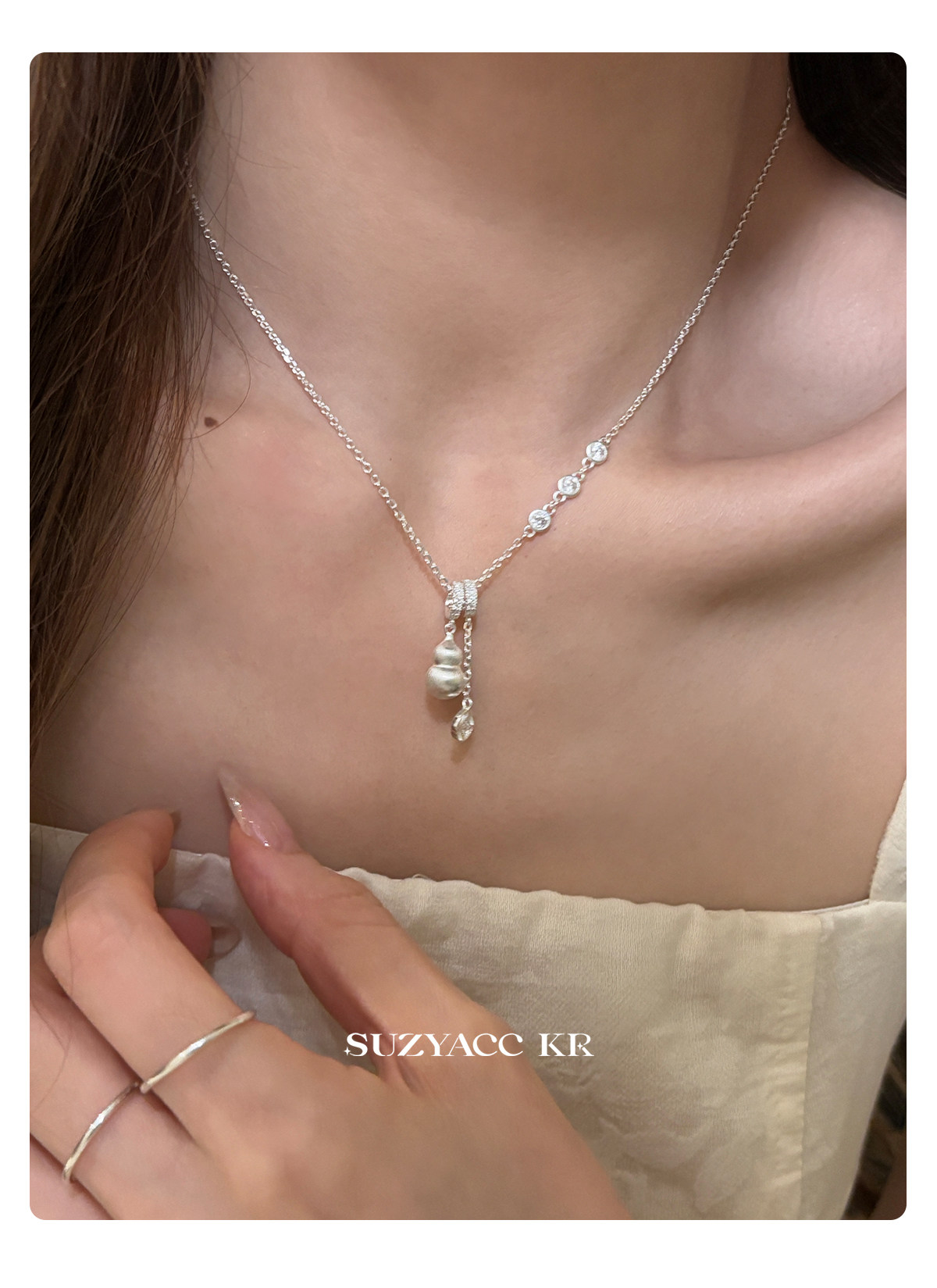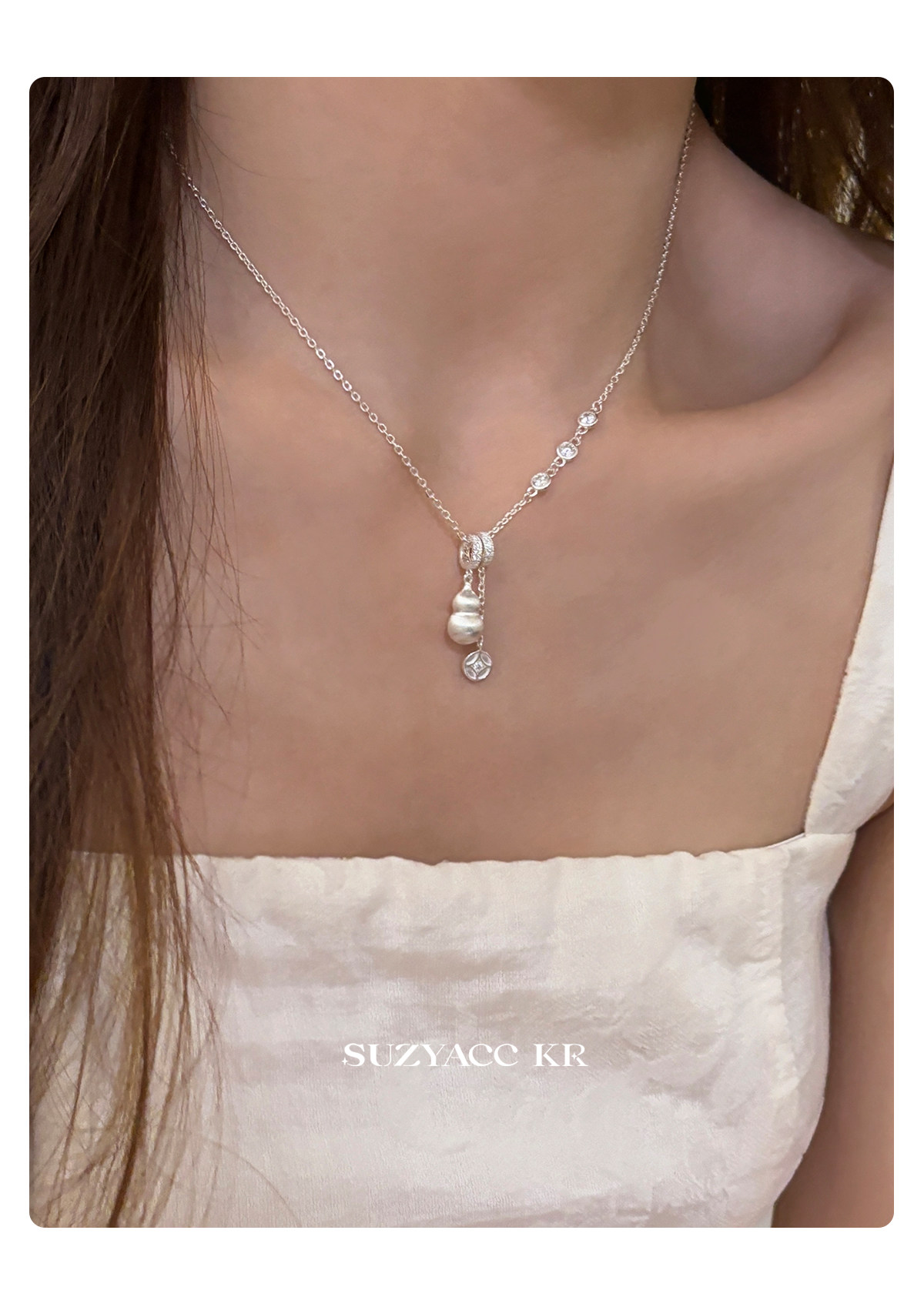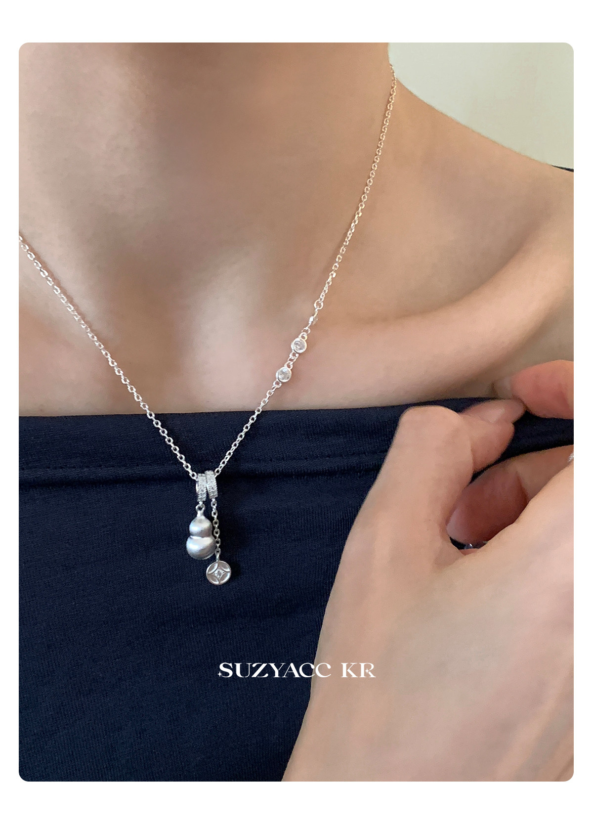 Suzyacc Kr Brushed Gourd Pendant Necklace, Chinese Style Niche Design Sweater Chain, Zodiac Year Layered Neck Chain