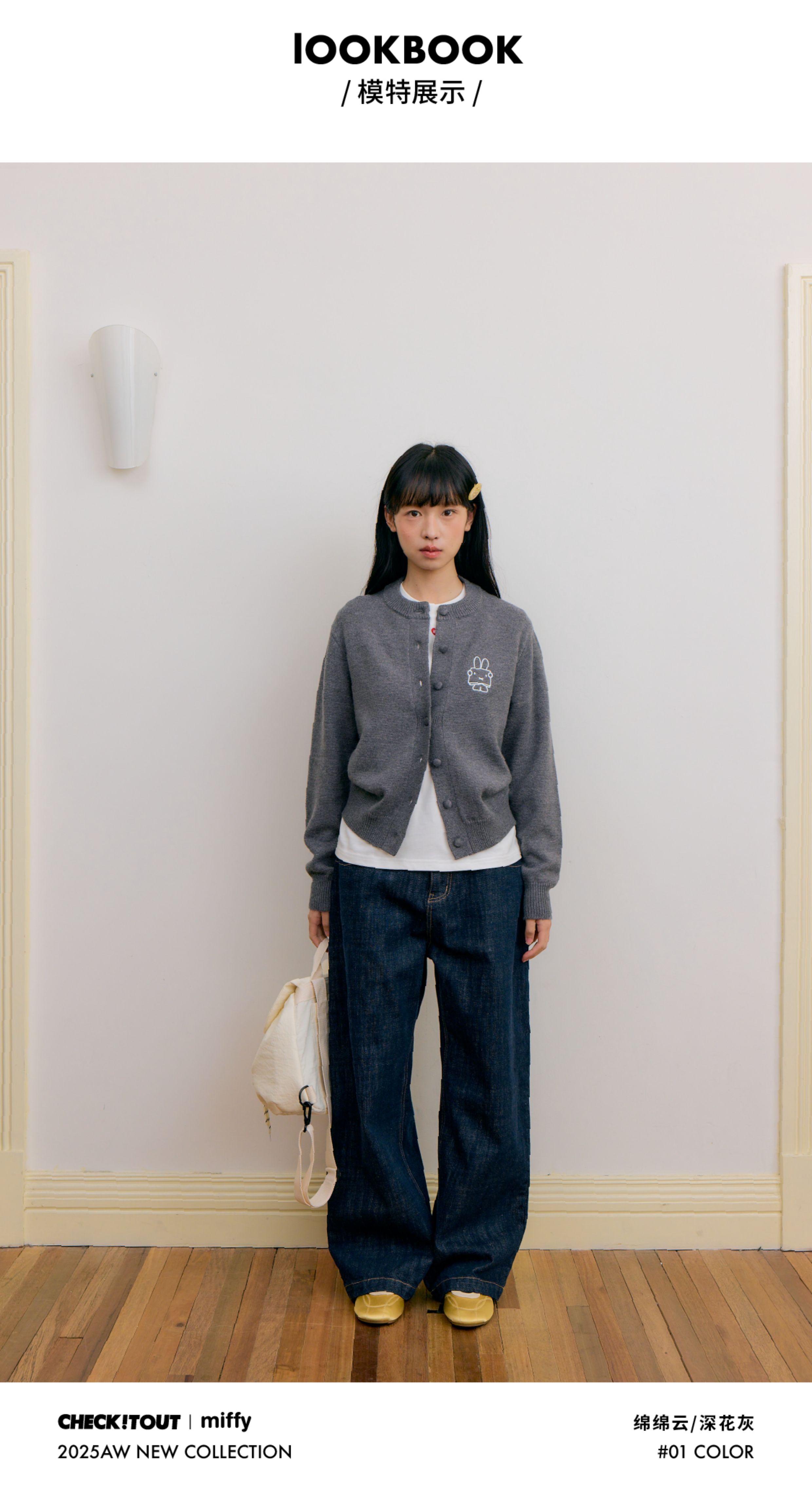 Checkitout Miffy Co-Branded Authentic Cloud Cardigan Sweater Couple Outfit Long-Sleeve Top Autumn and Winter 2025