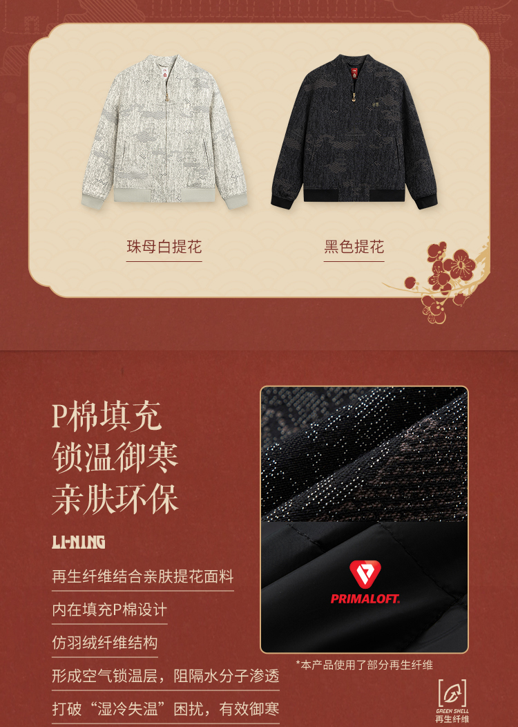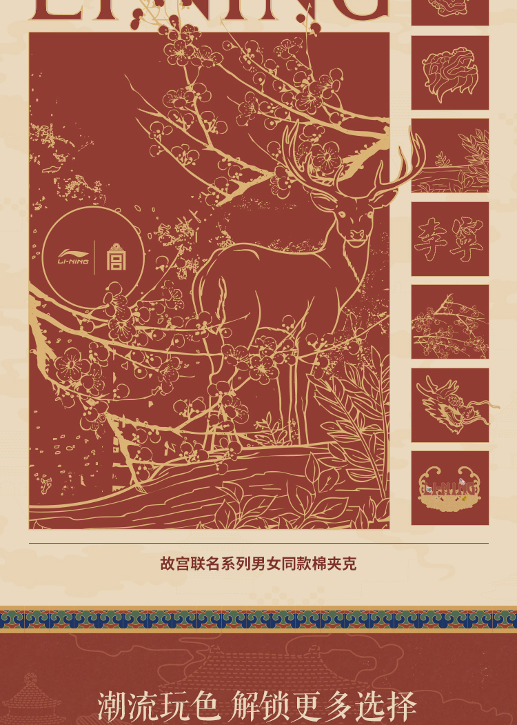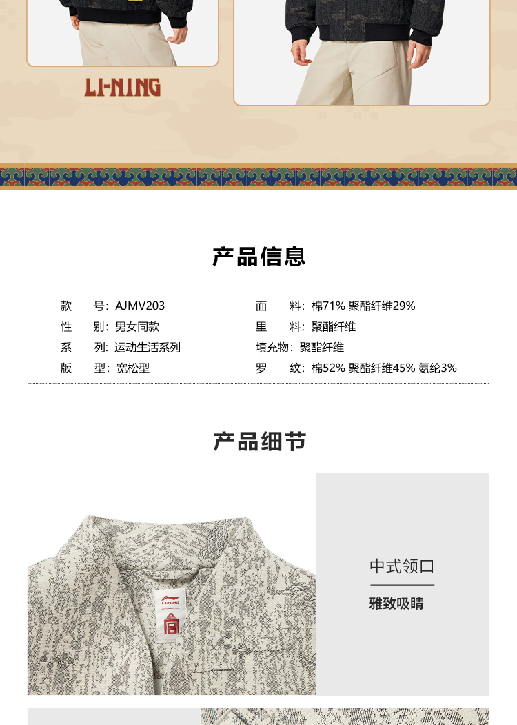 Xiao Zhan's Same Style Li-Ning Chinese Culture Series Forbidden City Collaboration Cotton Jacket Unisex 25 Styles Winter Sportswear