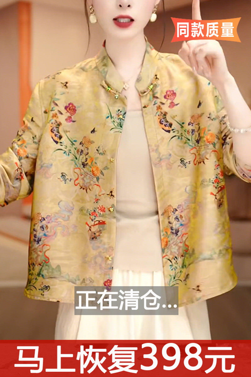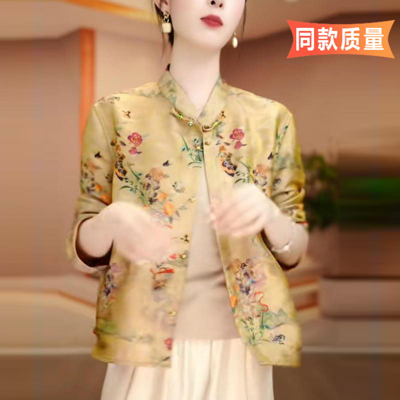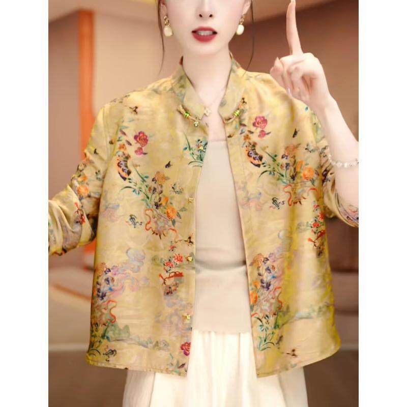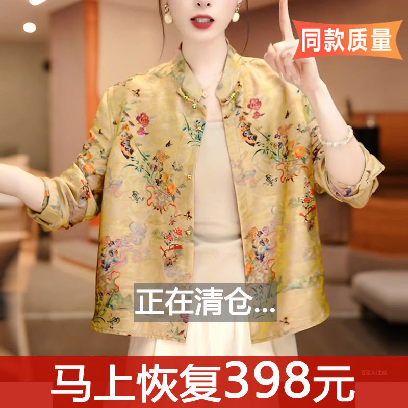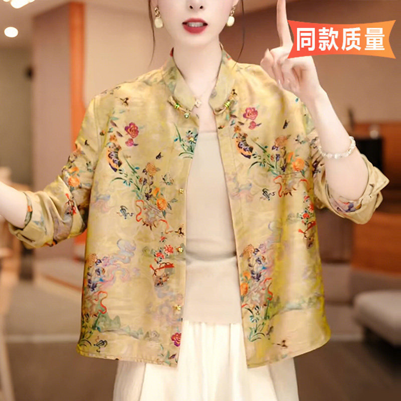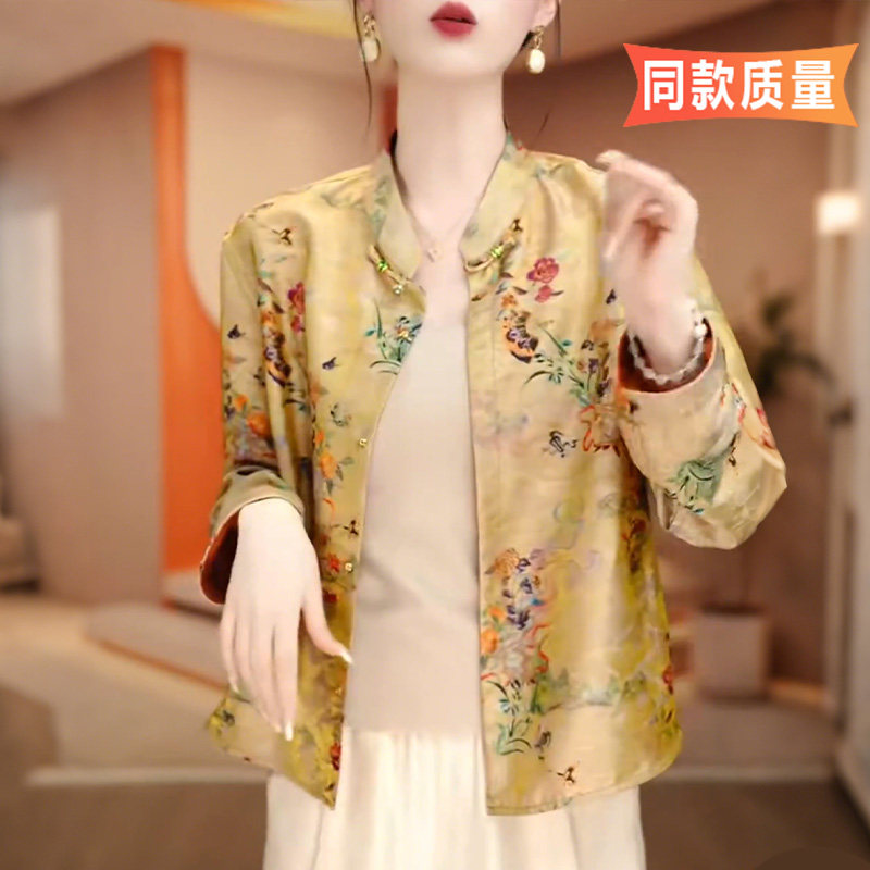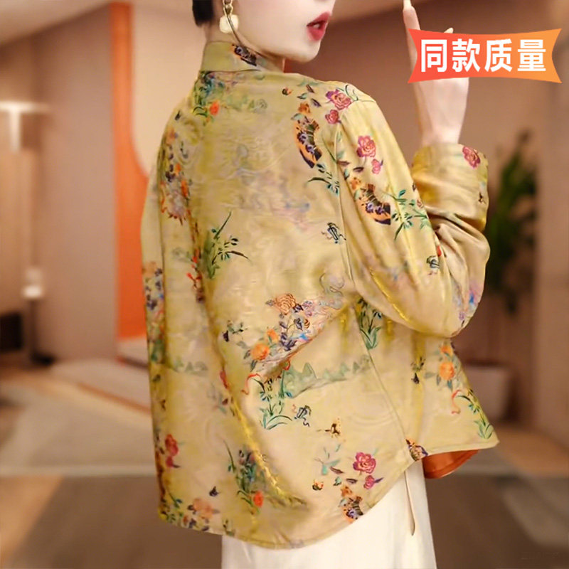 New Chinese Style Silk Jacquard Shirt Jacket Women's Long-Sleeved Spring and Autumn New Mulberry Silk Top Winter National Style Shirt