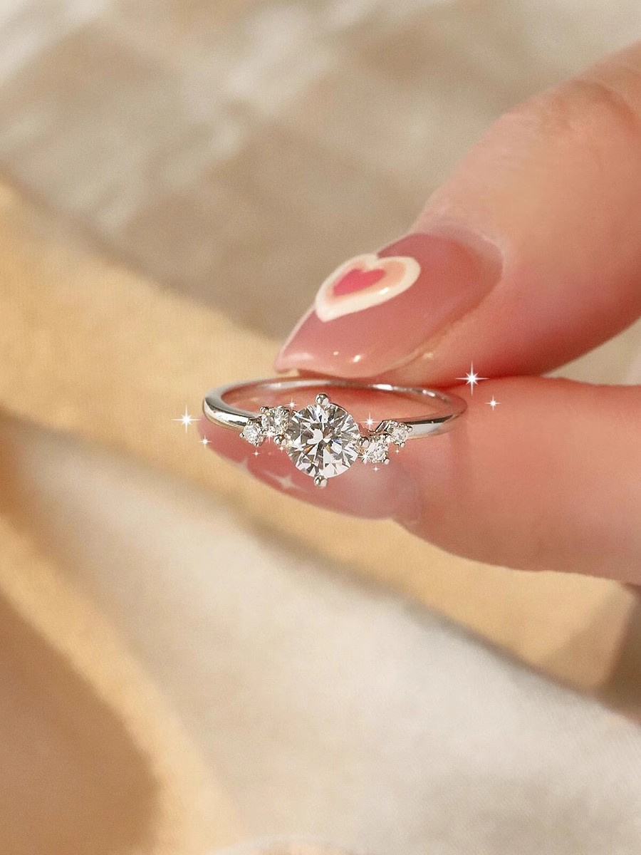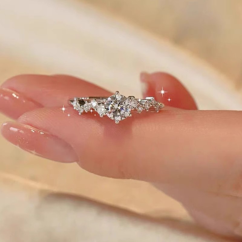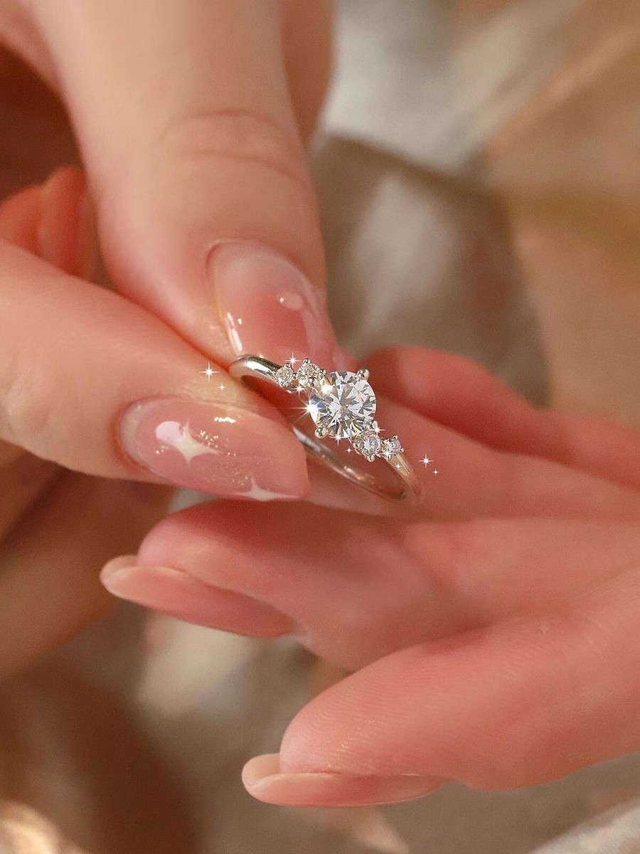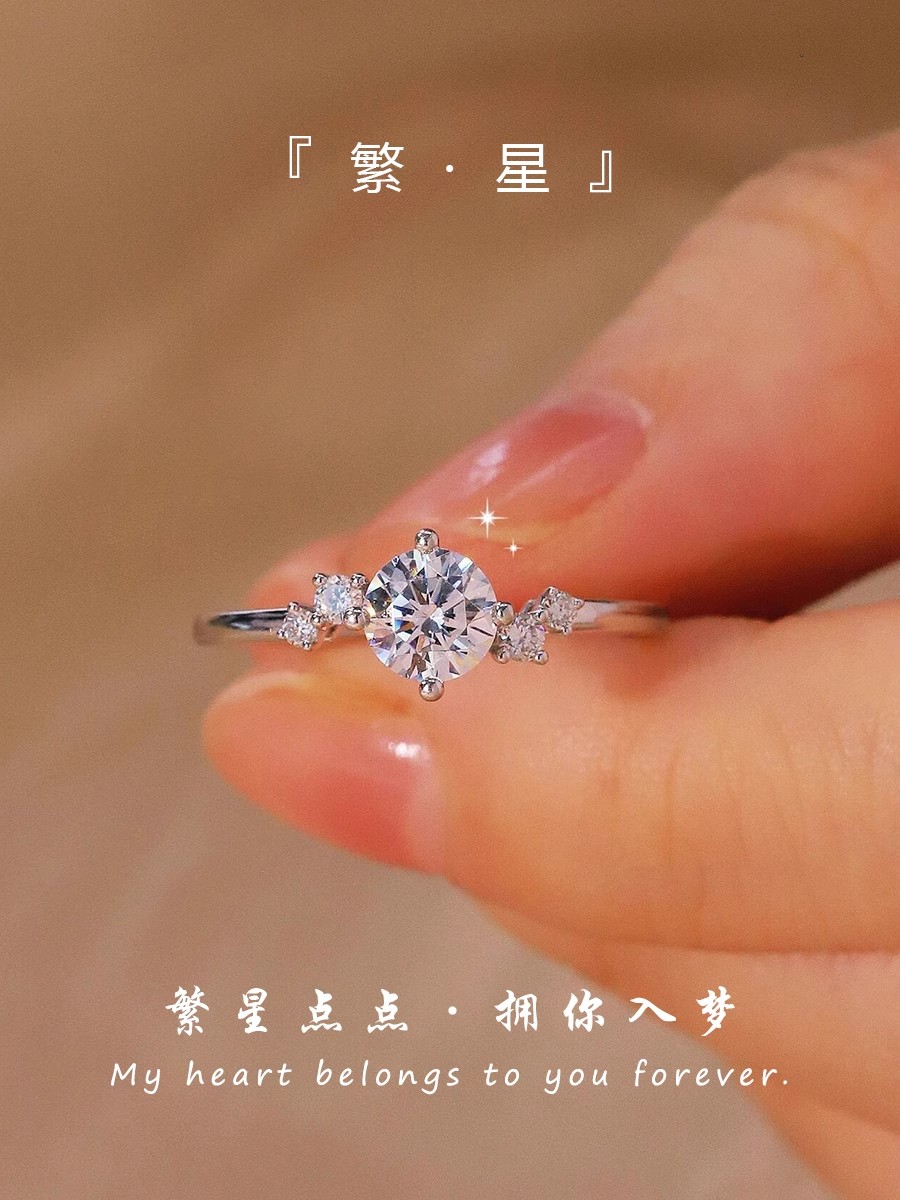 Genuine Sterling Silver Moissanite Diamond Ring for Women, Couple Rings, 1 Carat Starry Pair, Simulated Diamond Proposal Wedding Gift