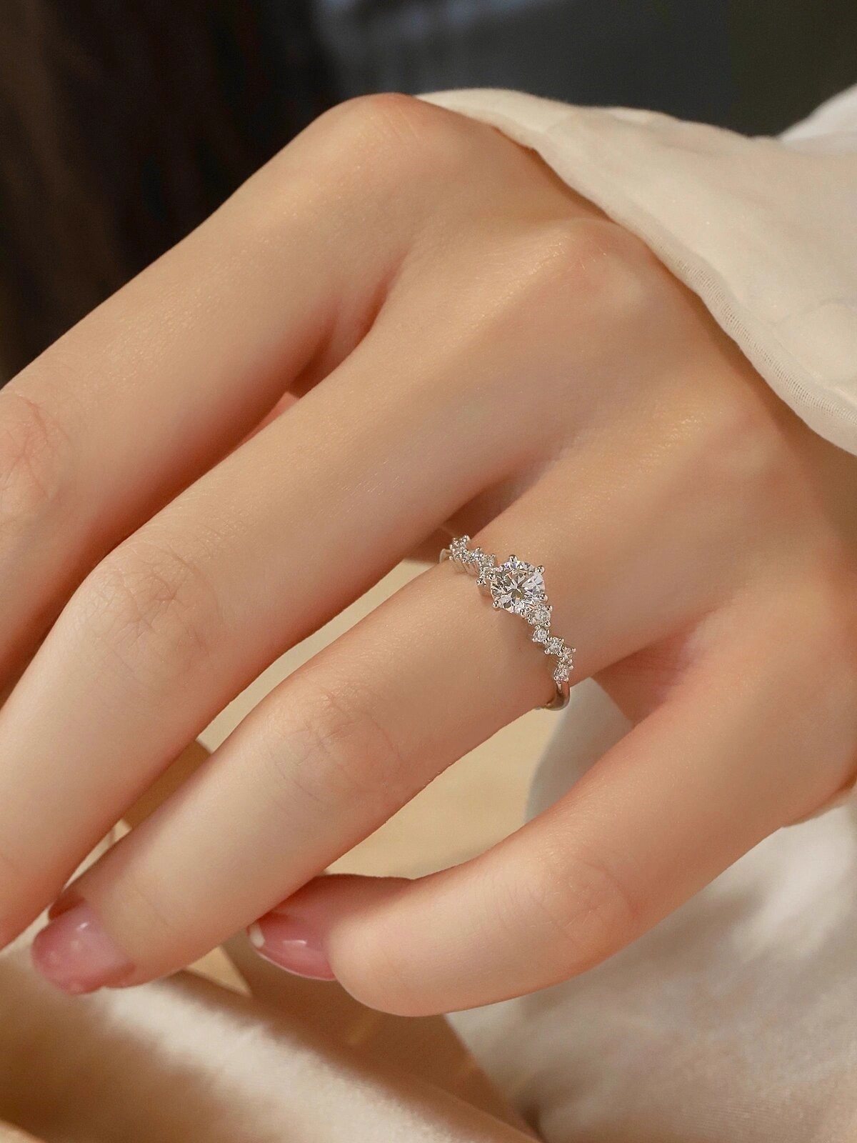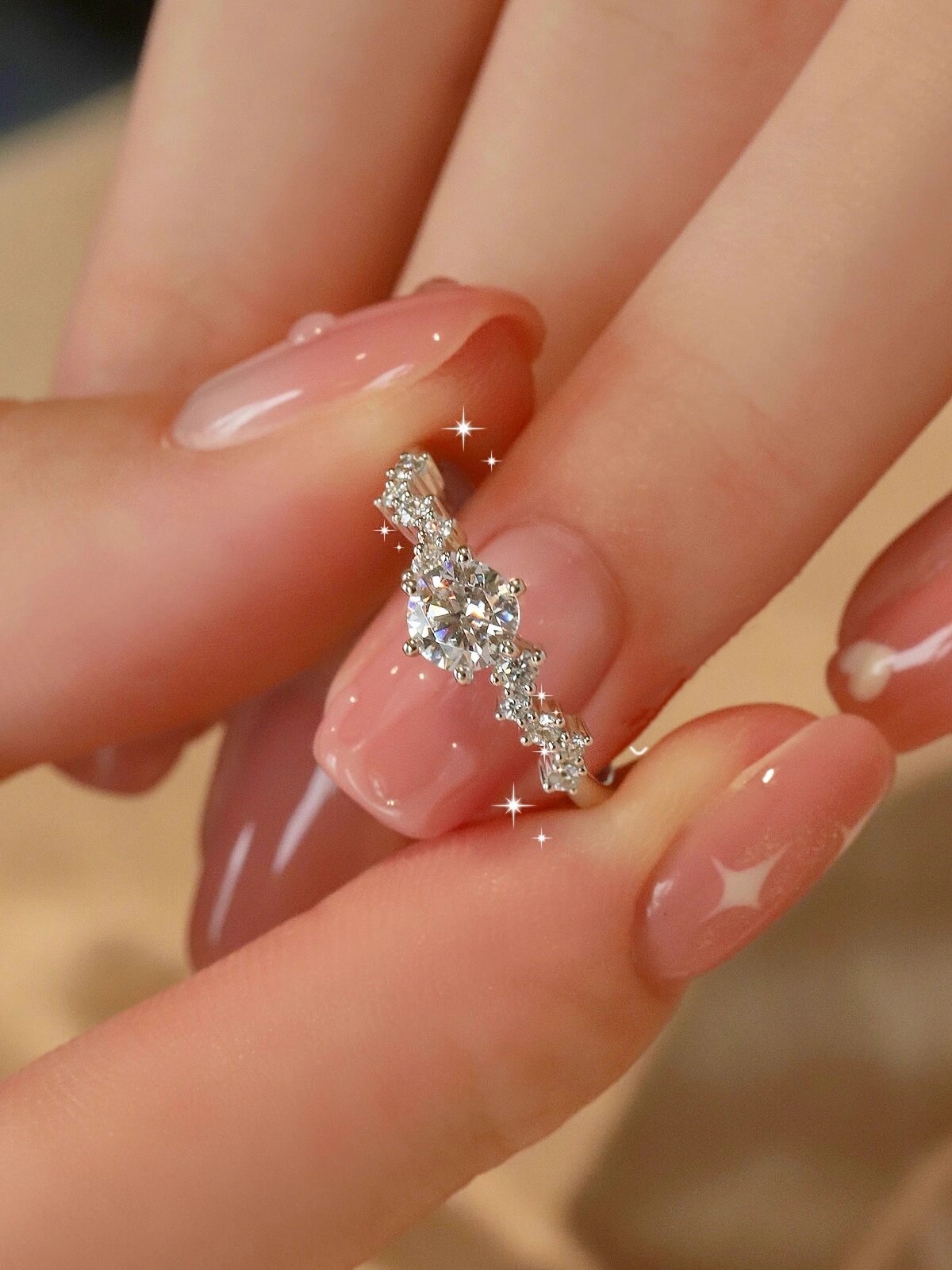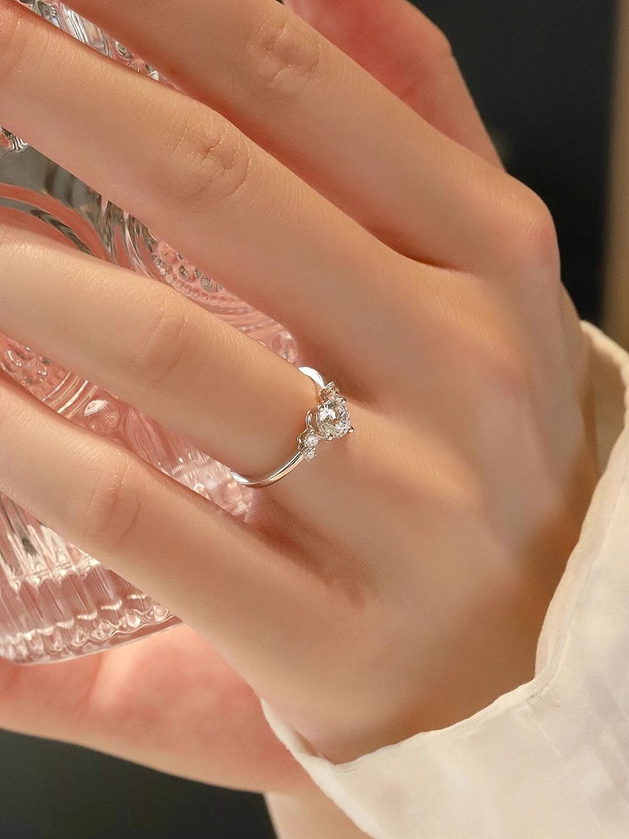 Genuine Sterling Silver Moissanite Diamond Ring for Women, Couple Rings, 1 Carat Starry Pair, Simulated Diamond Proposal Wedding Gift