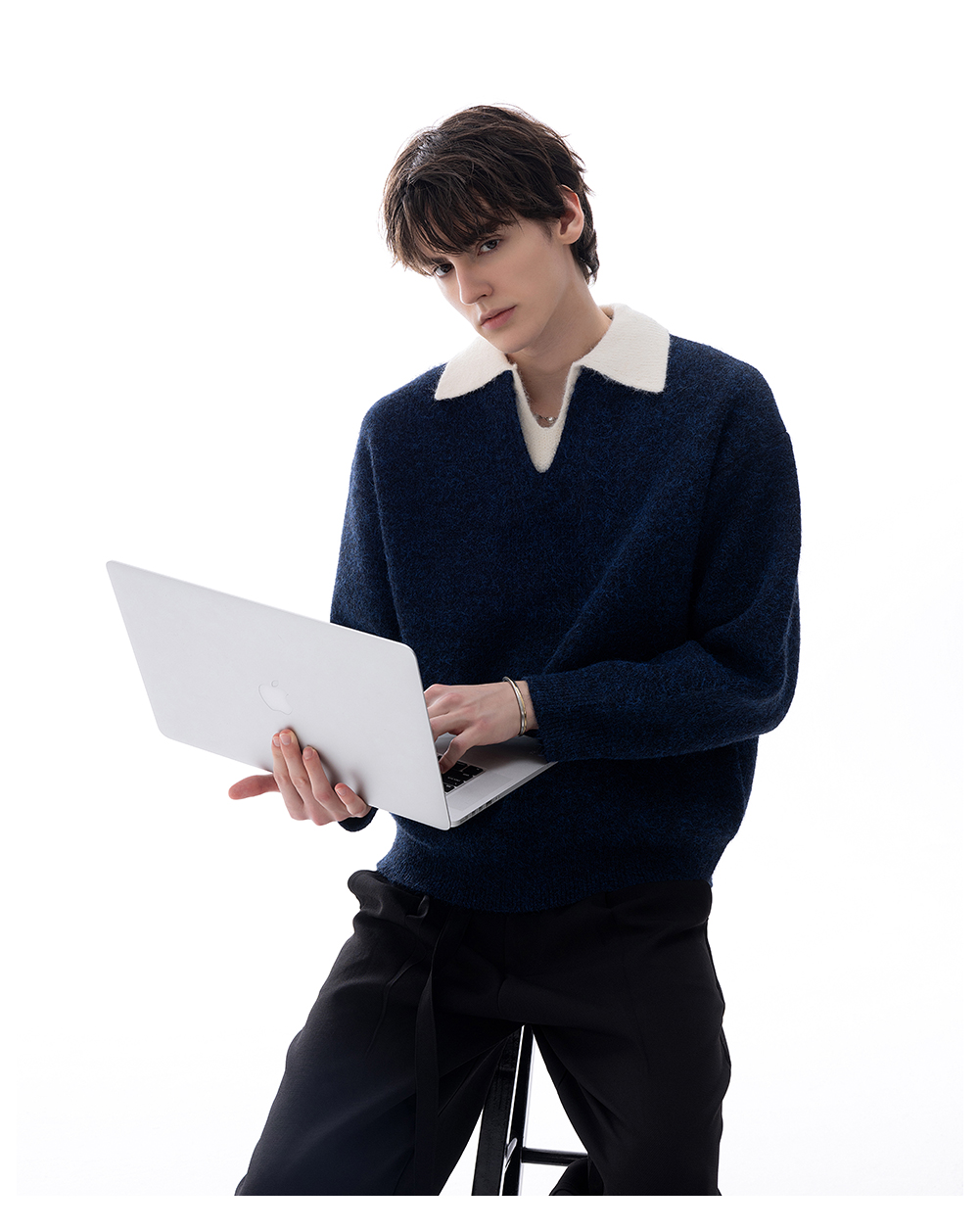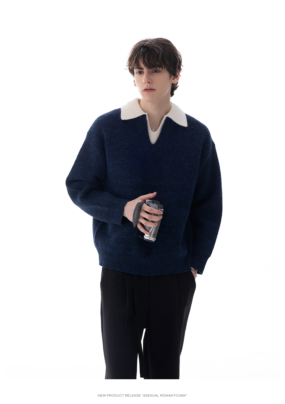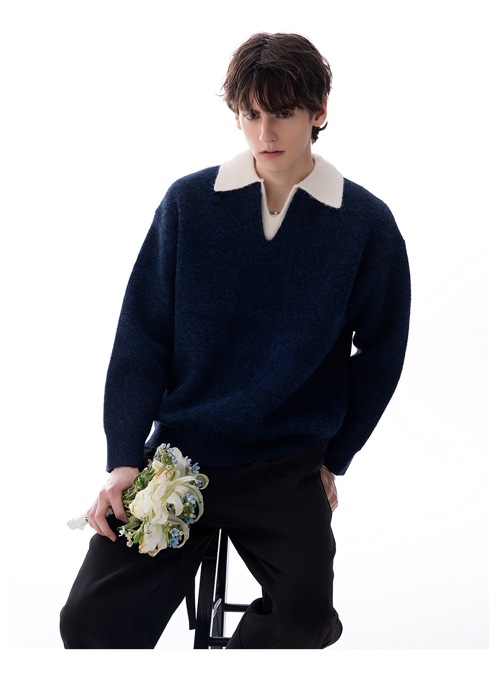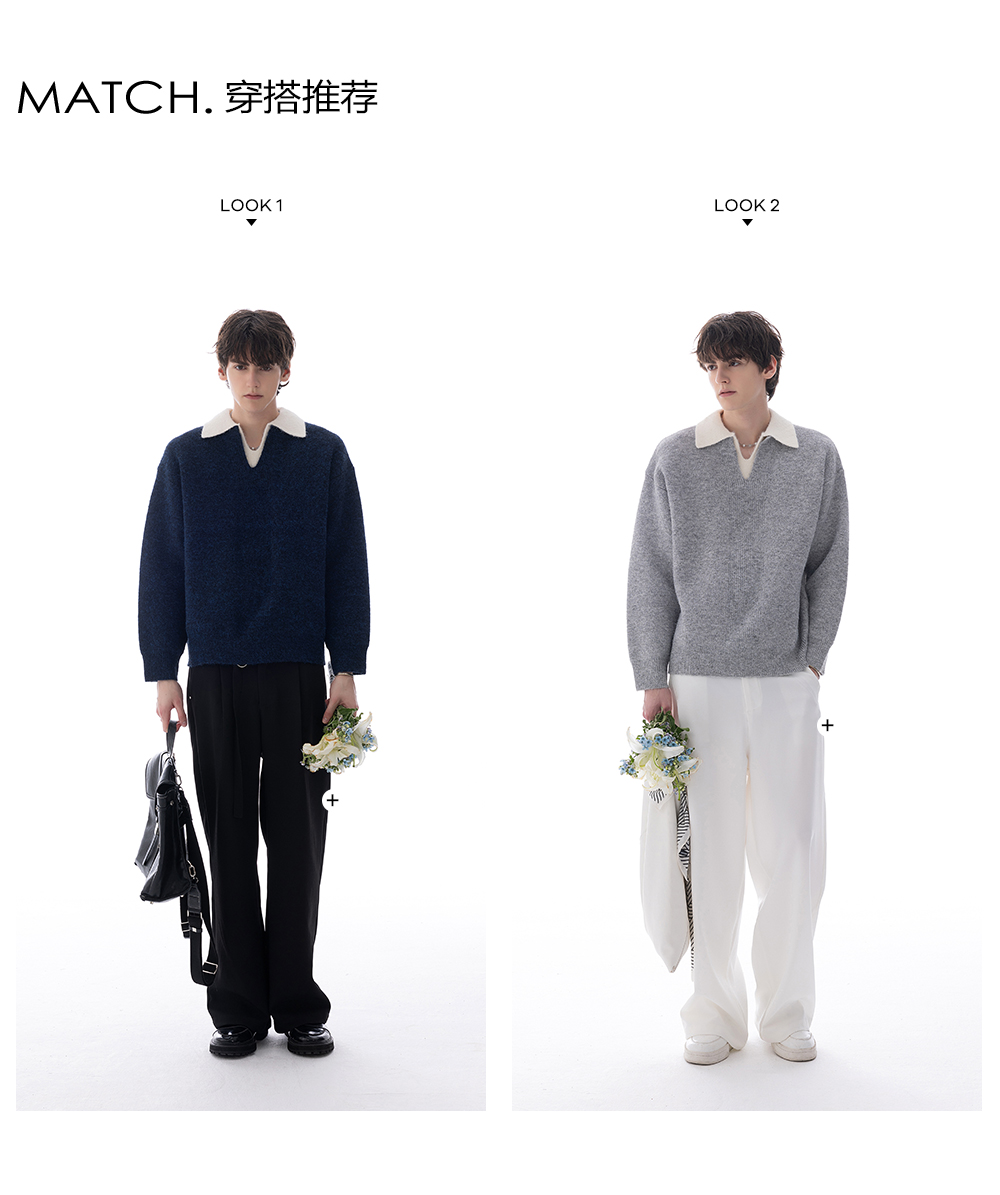 CHICERRO Sicilian Men's British Style Wool Lapel Fake Two-Piece Heavy weight Sweater Men's High Sense Fashion Wear