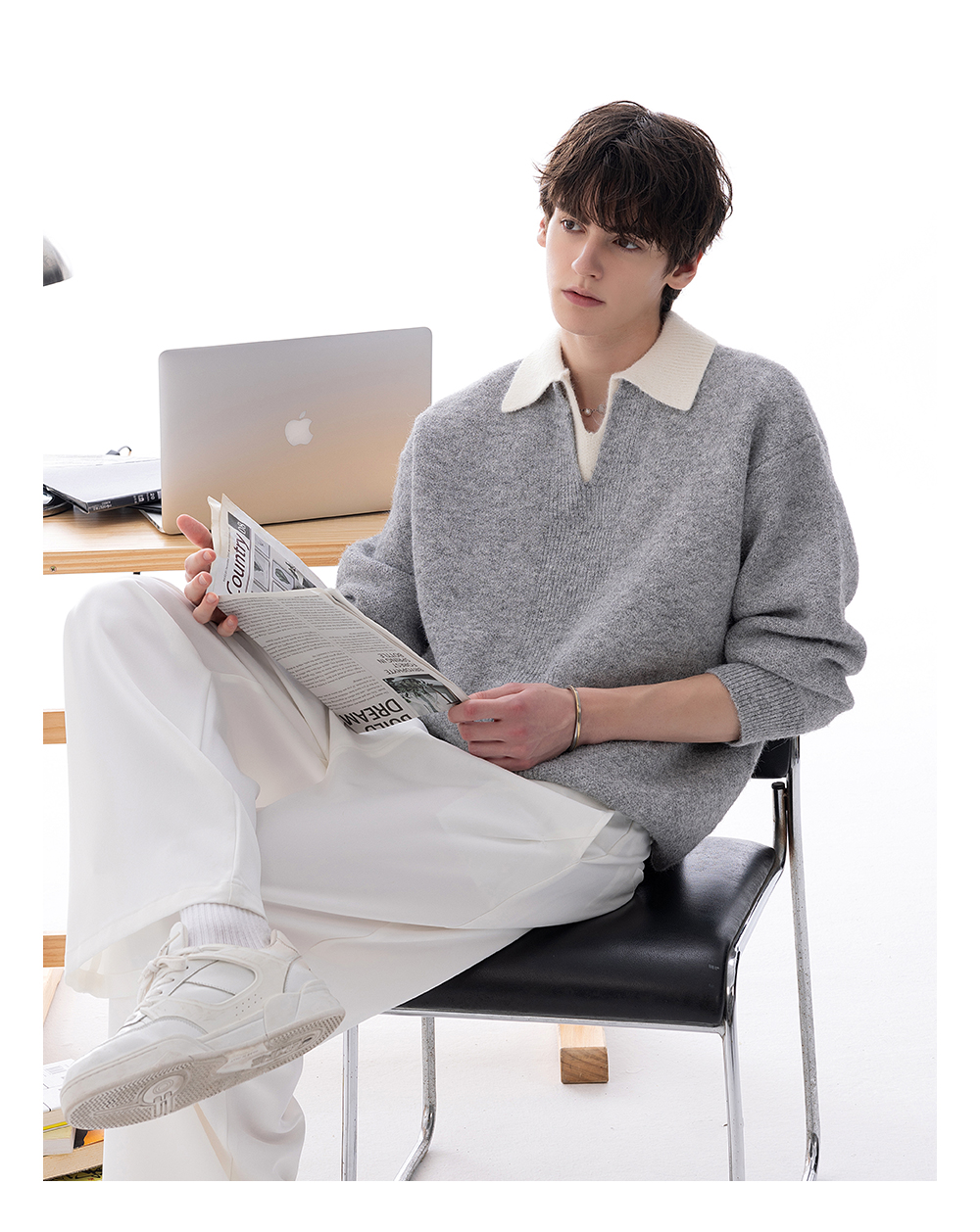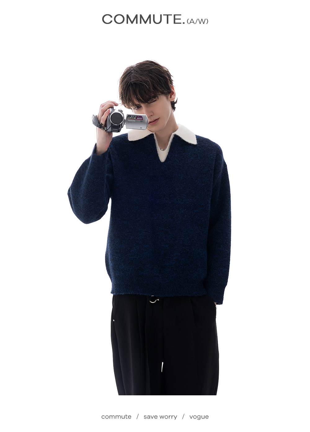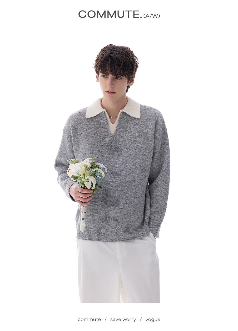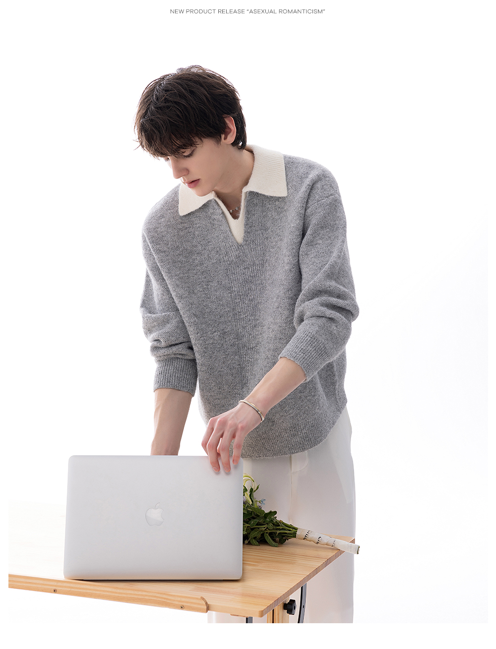 CHICERRO Sicilian Men's British Style Wool Lapel Fake Two-Piece Heavy weight Sweater Men's High Sense Fashion Wear