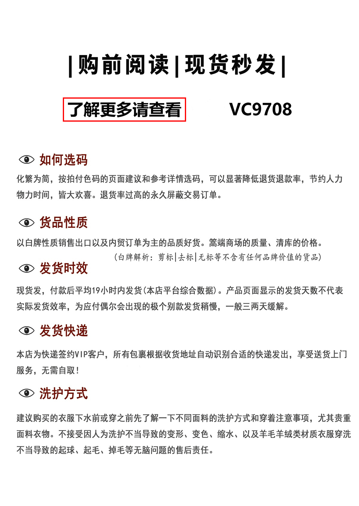 I36码:腰围62(松紧腰) 前裆28 臀围108 大腿围66 脚口围58 裤长101.
