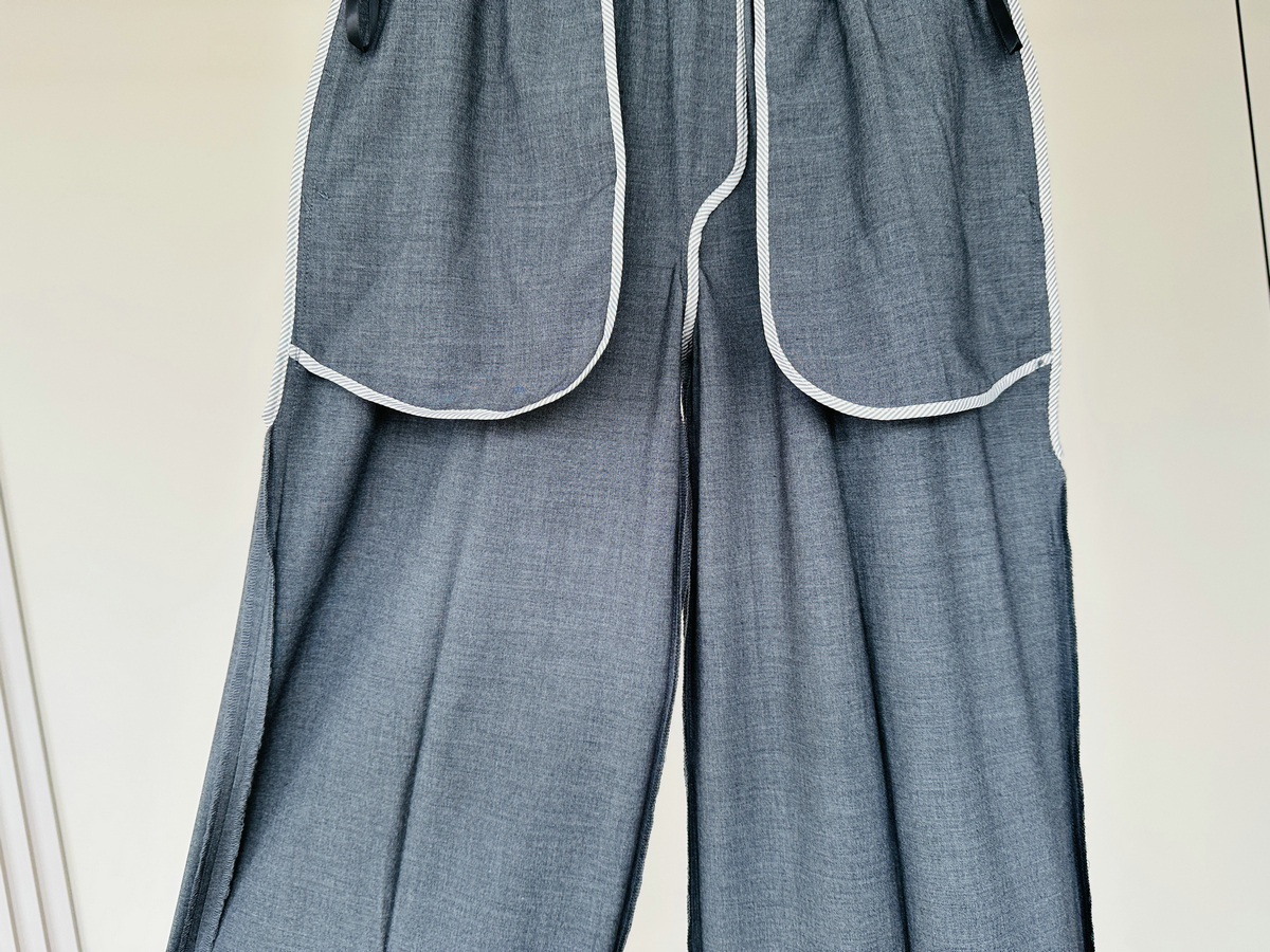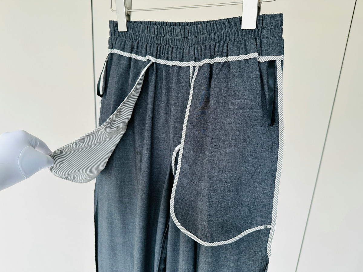I42码:腰围74(松紧腰) 前裆31 臀围120 大腿围72 脚口围61 裤长104.