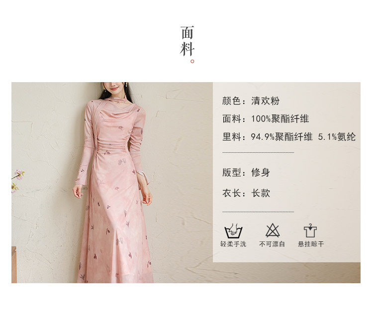 Chu Chanyi Dress for Women 2026 Spring New Elegant Printed Scoop Neck New Chinese Style National Style Slim Pleated Long Dress