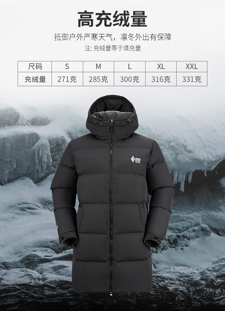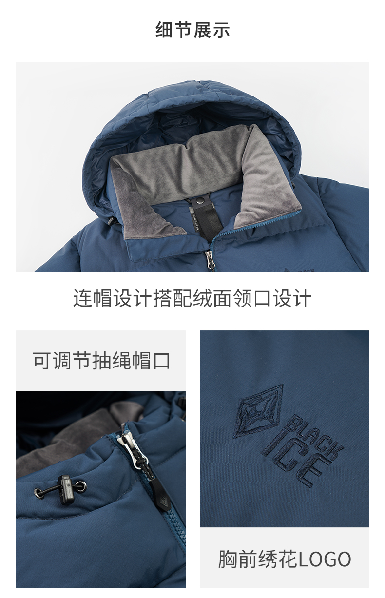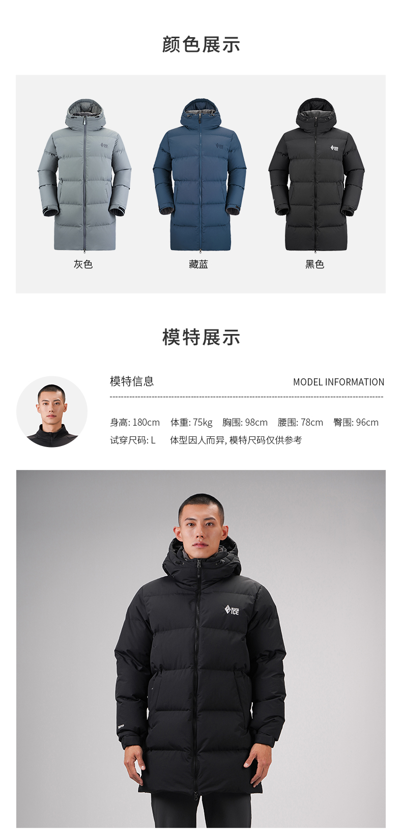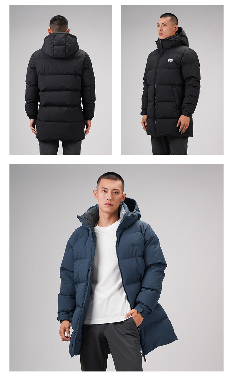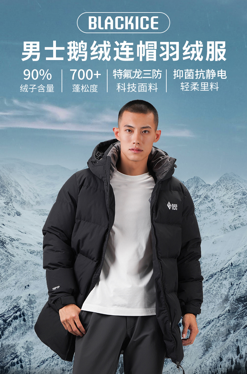 Black Ice 700 Puff down Jacket Men's Mid-Length Thick Goose down Jacket Winter Cold-Proof Hooded Coat 8516