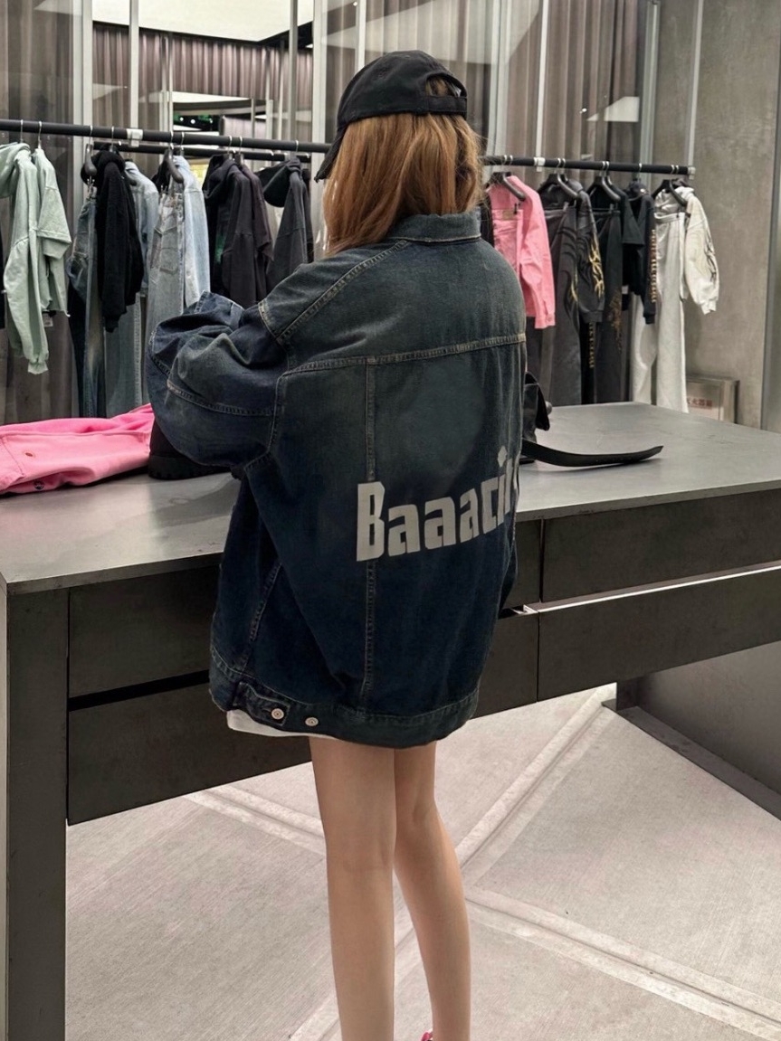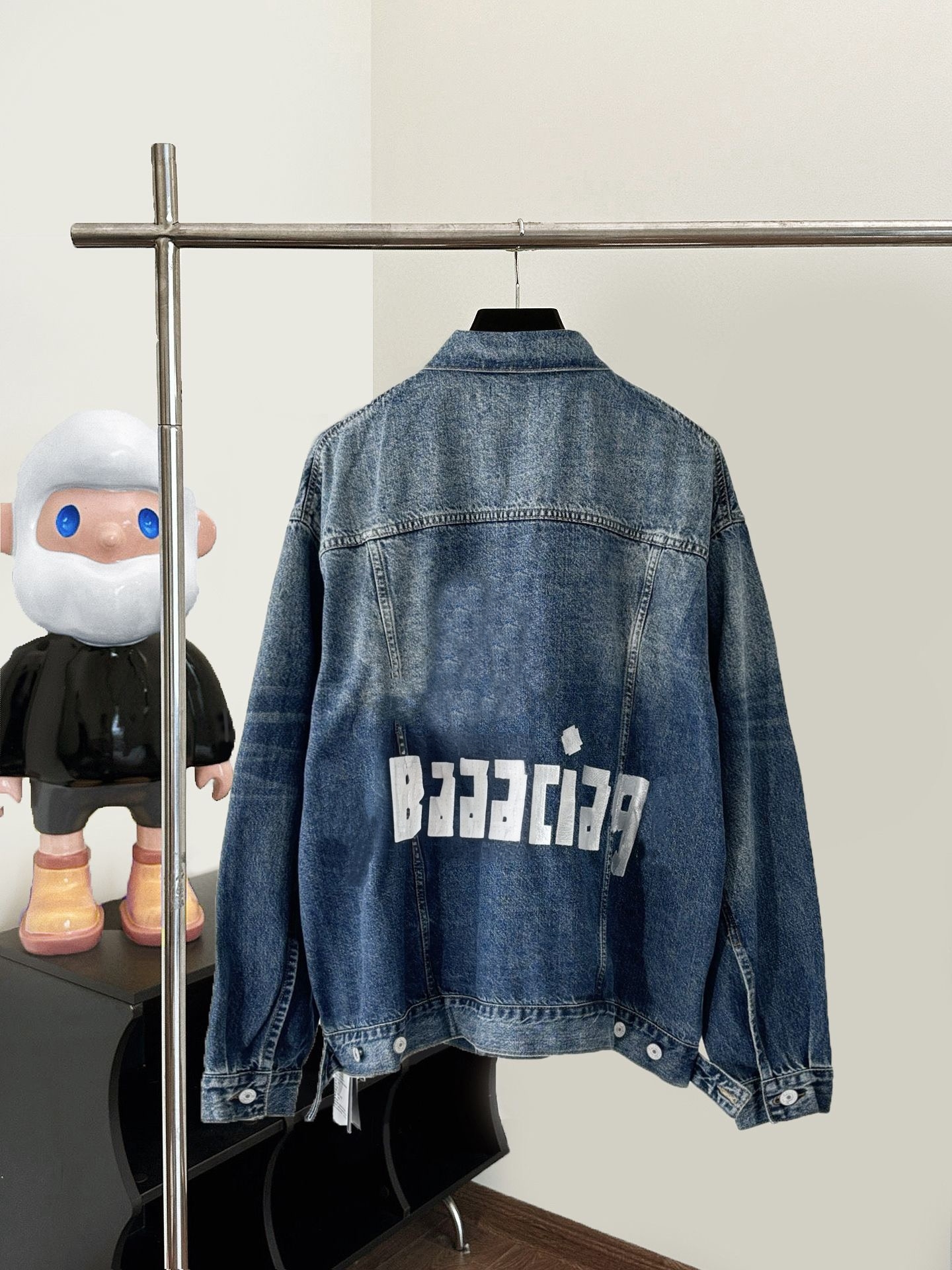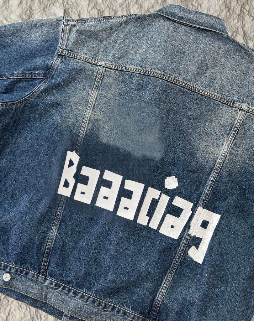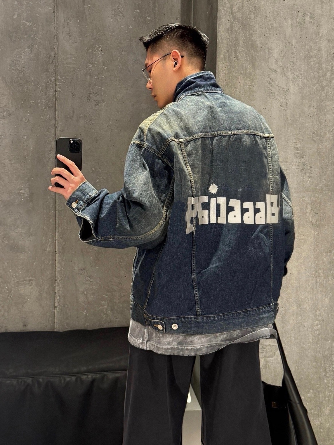 Difference between market goods) B home masking paper hot silver tape letters washed jacket Trendy men and women denim Outwear