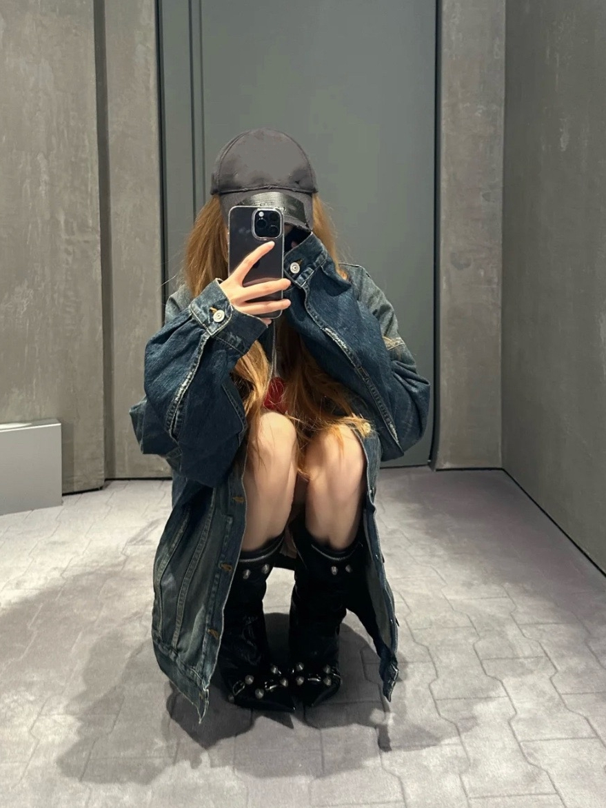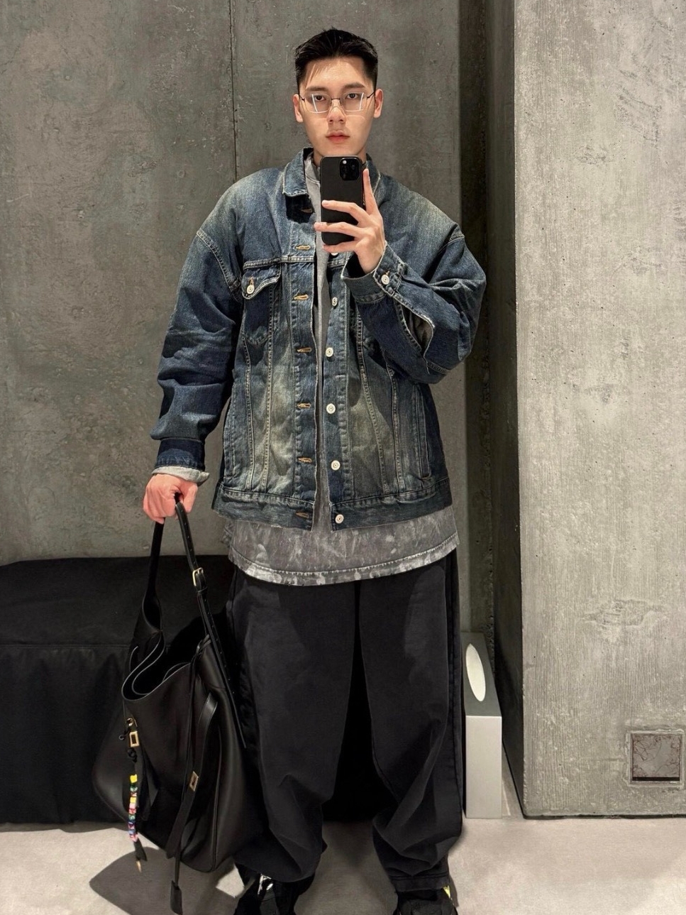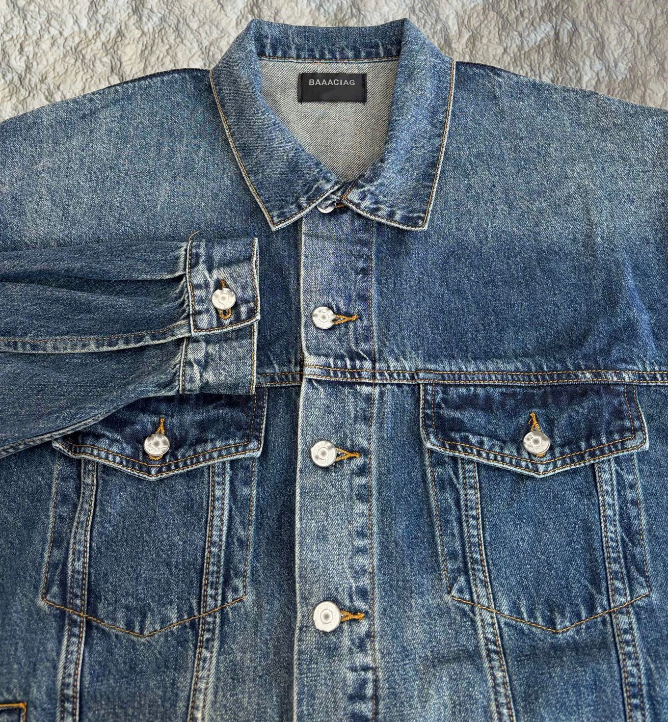 Difference between market goods) B home masking paper hot silver tape letters washed jacket Trendy men and women denim Outwear