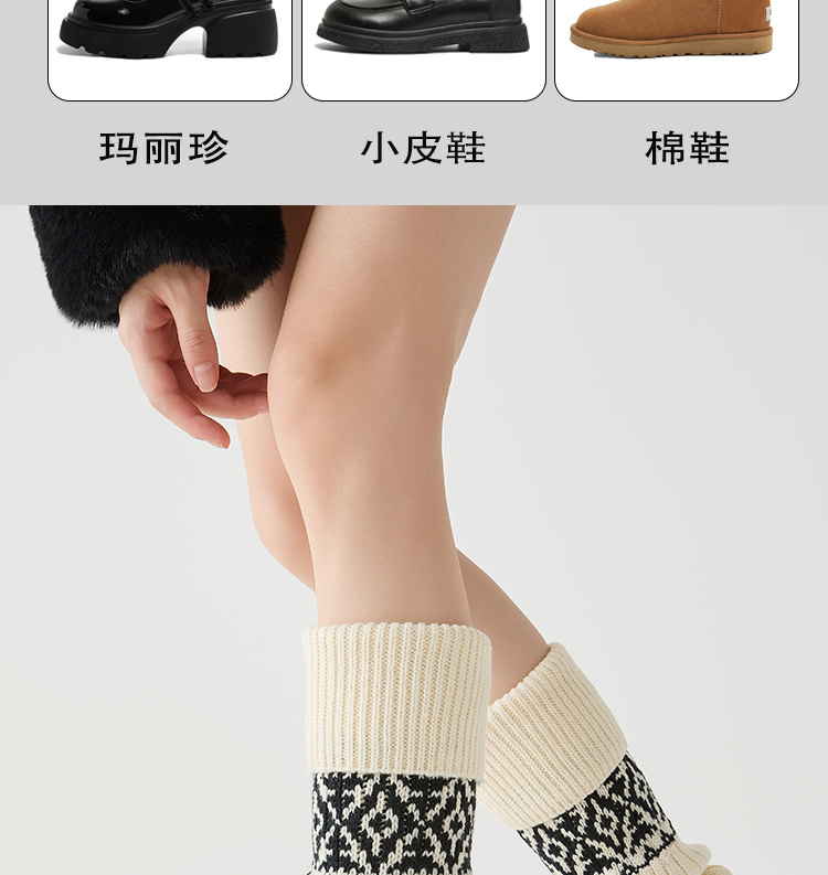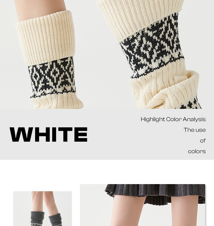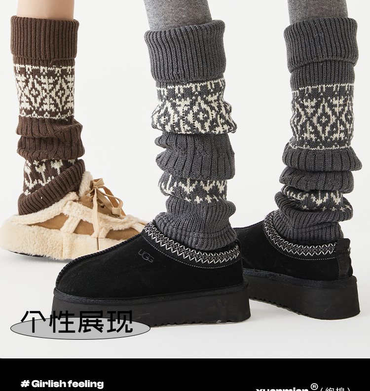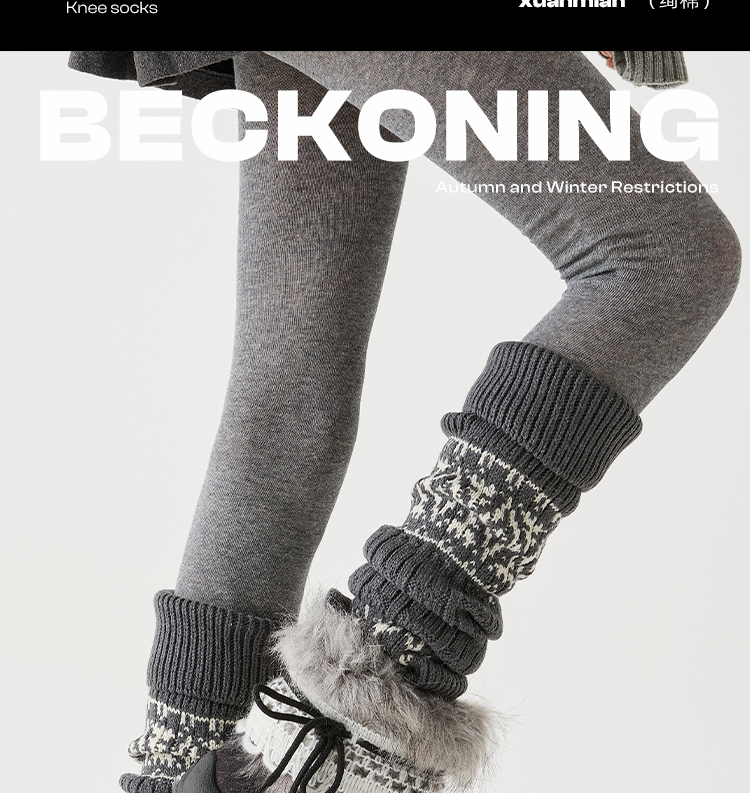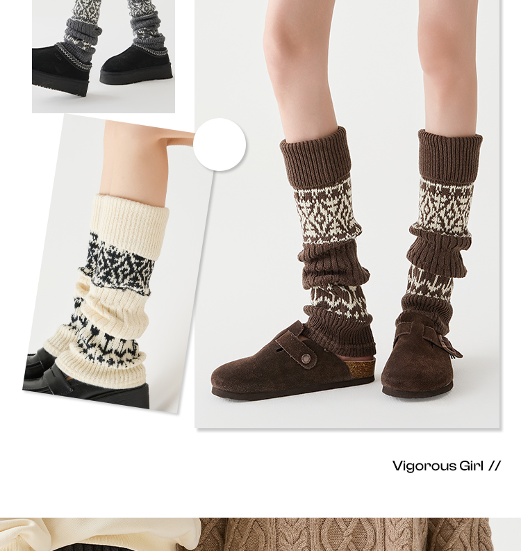 Retro Fair Isle Slouch Socks for Autumn and Winter, Warm and Suitable for Pairing with Snow Boots, Leggings, Wool, Thickened, Gray Calf Sleeves