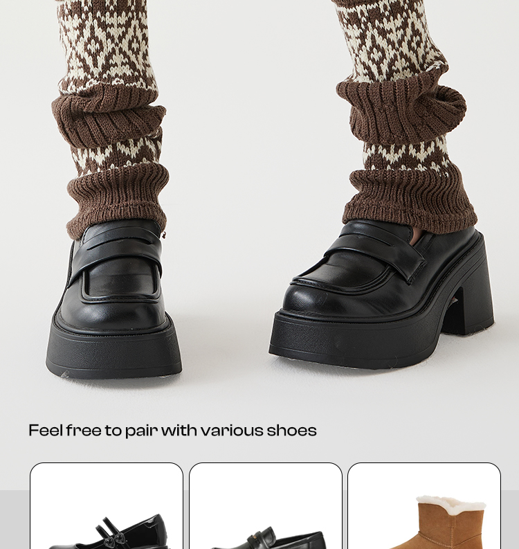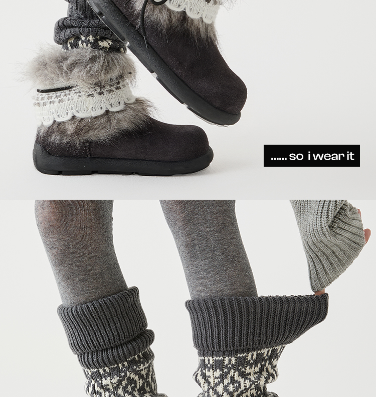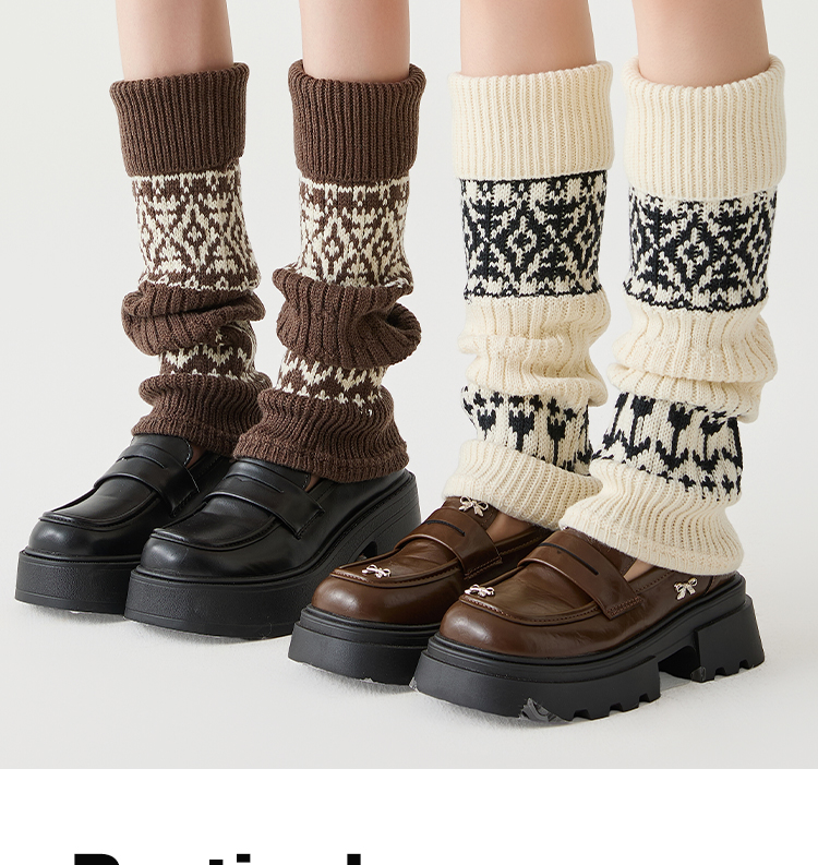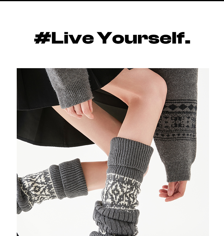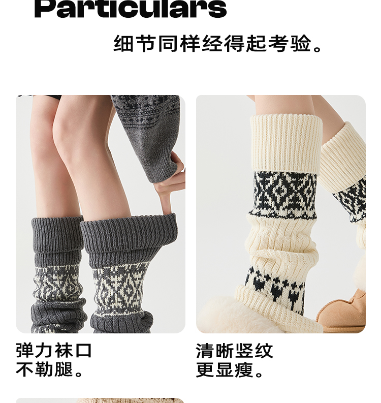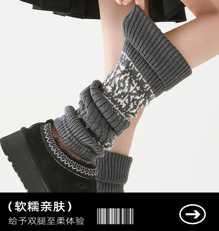 Retro Fair Isle Slouch Socks for Autumn and Winter, Warm and Suitable for Pairing with Snow Boots, Leggings, Wool, Thickened, Gray Calf Sleeves