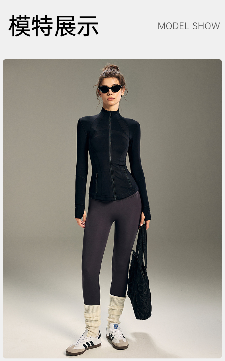 Mitaogirl Kendall Fitness Jacket Women's Slim Fit Stand Collar Yoga Wear Autumn and Winter Style Jacket Fleece-Lined Sports Top
