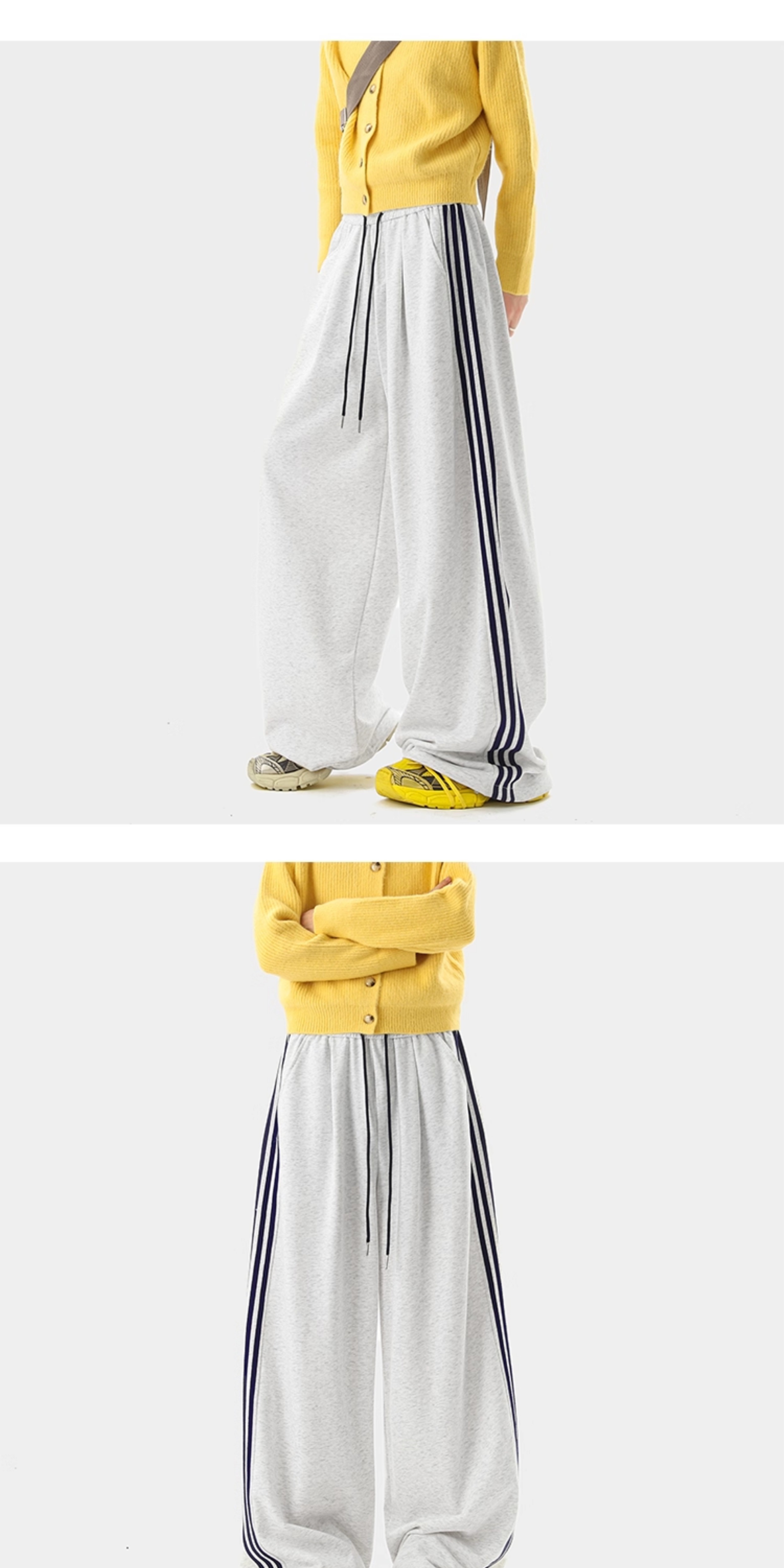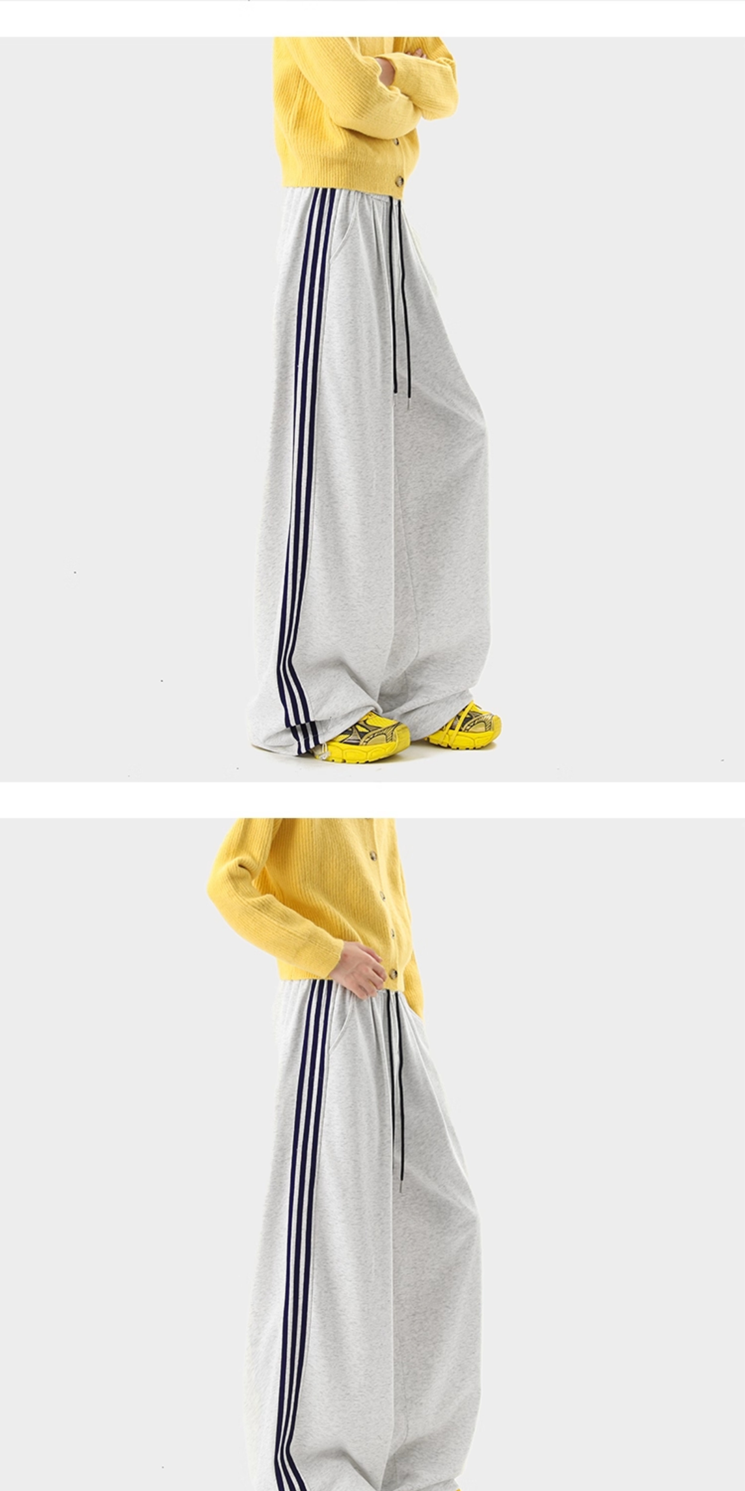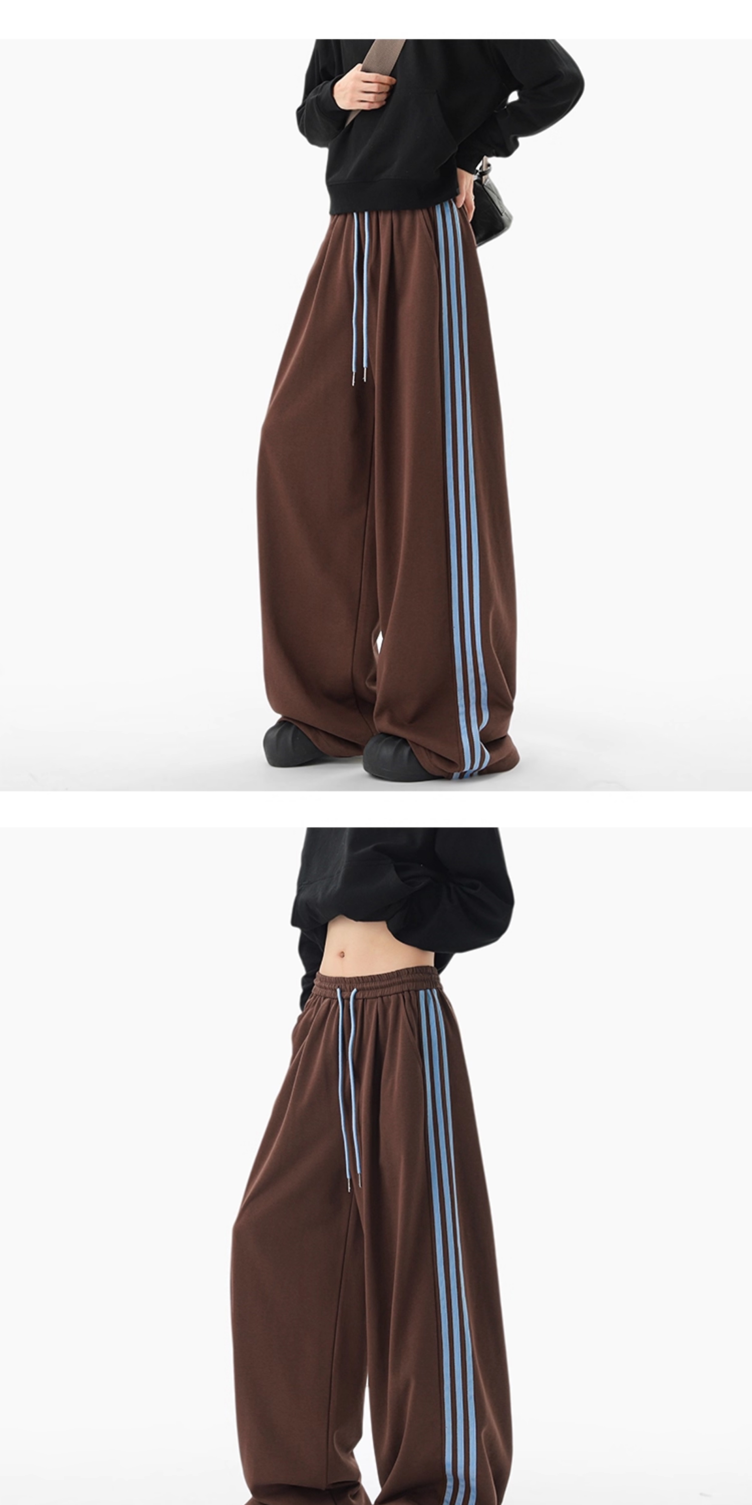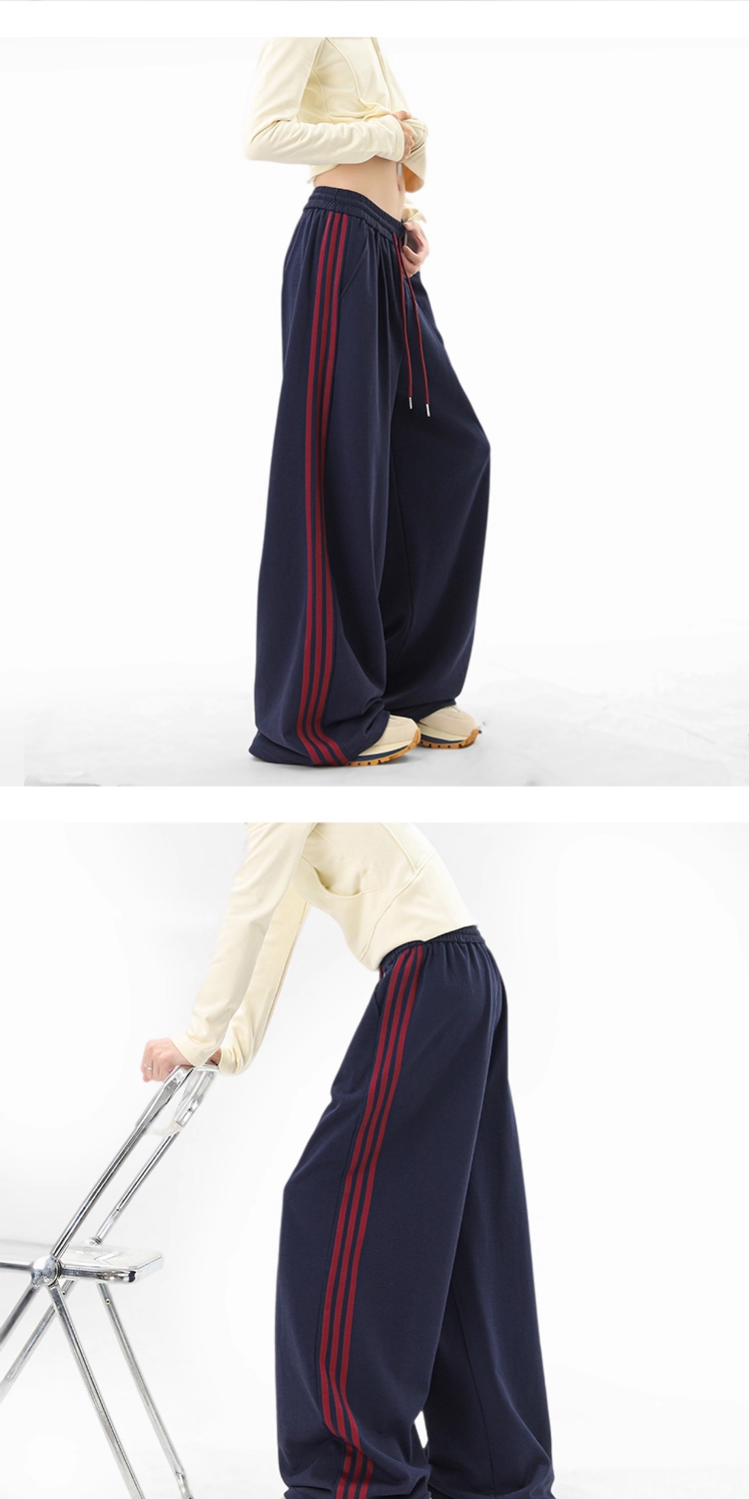 American Retro Color-Block Striped Sweatpants for Women and Men, Versatile Casual Sports Pants for Autumn, Loose Drape Wide-Leg Floor-Length Pants