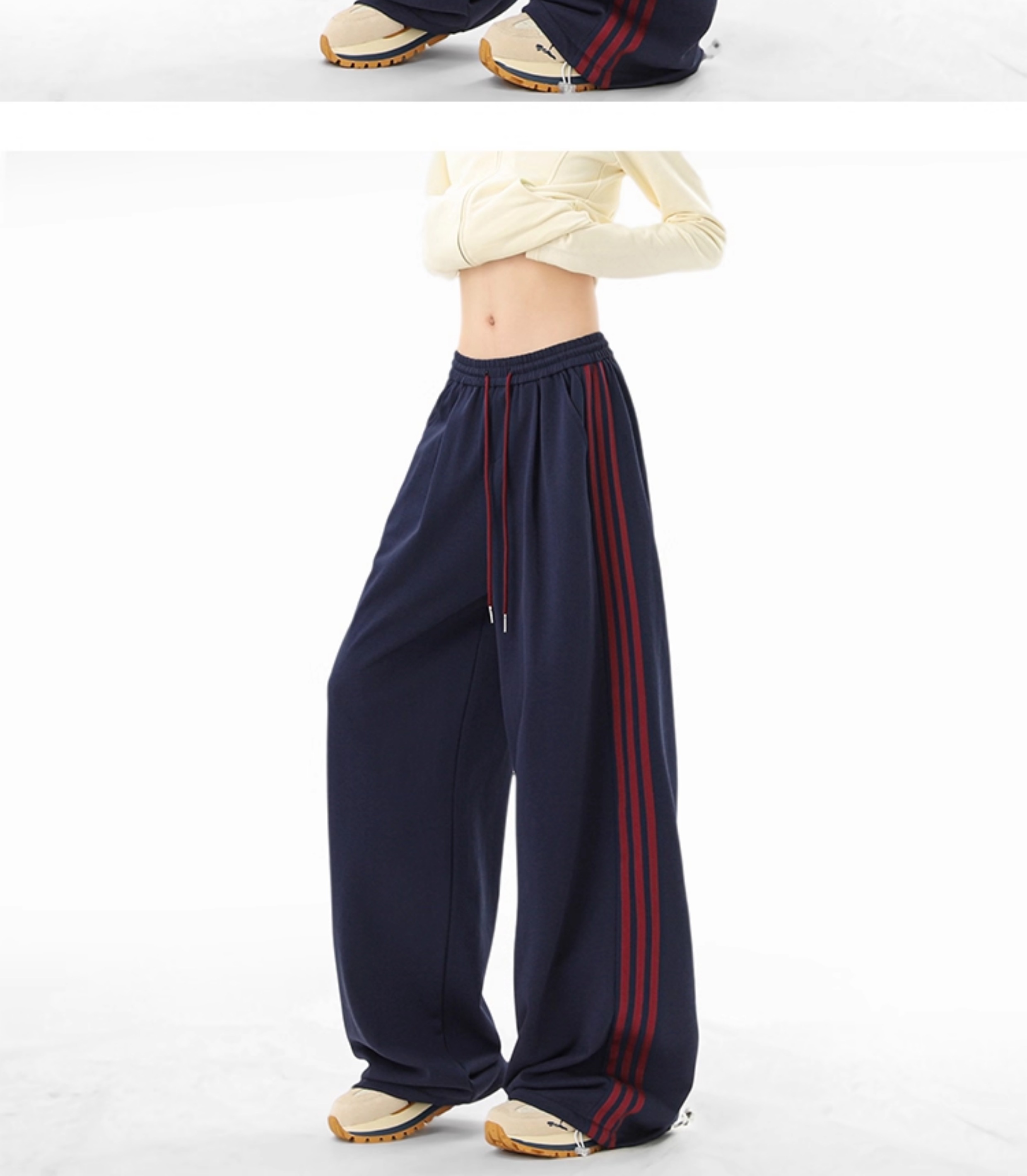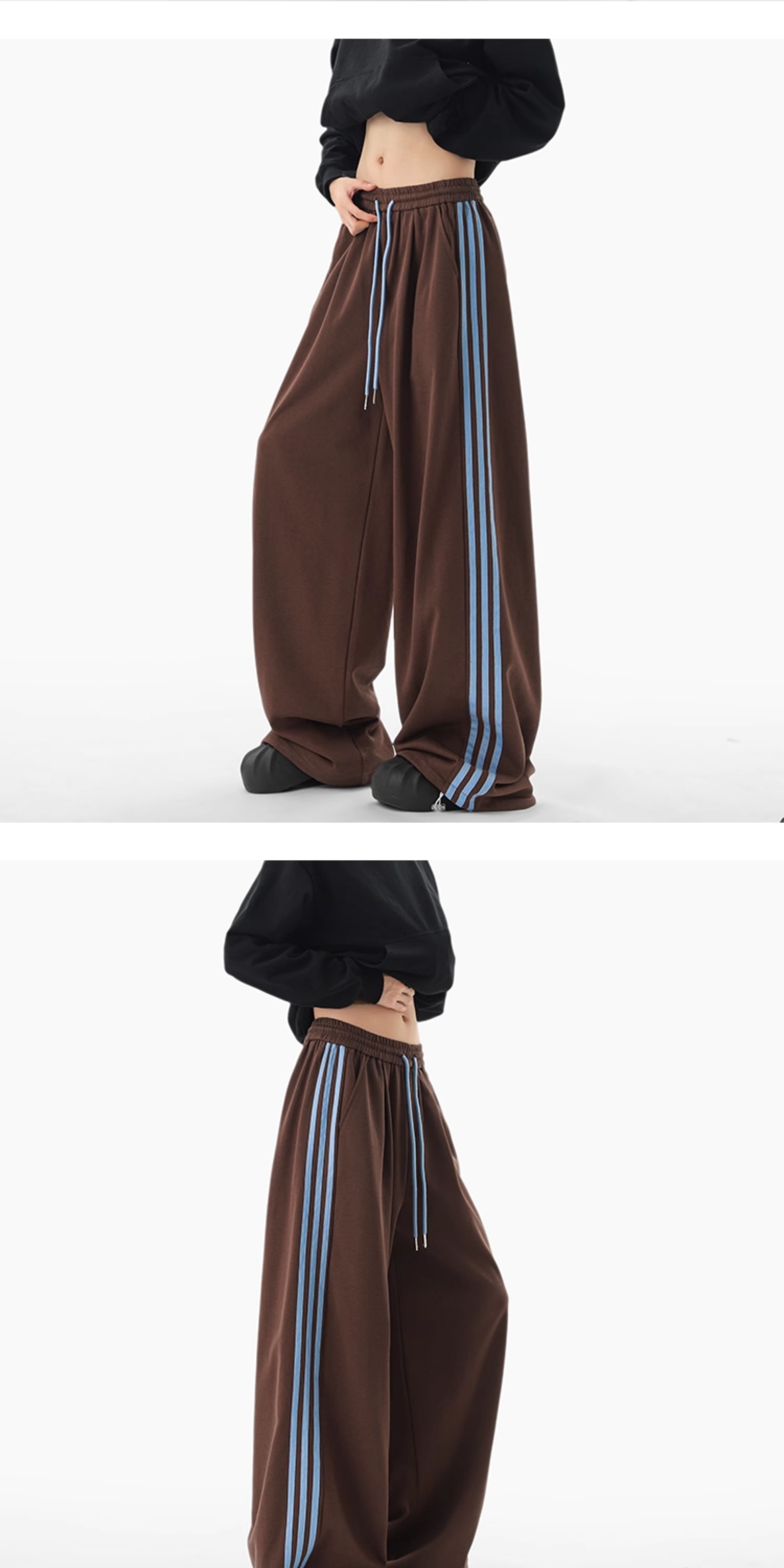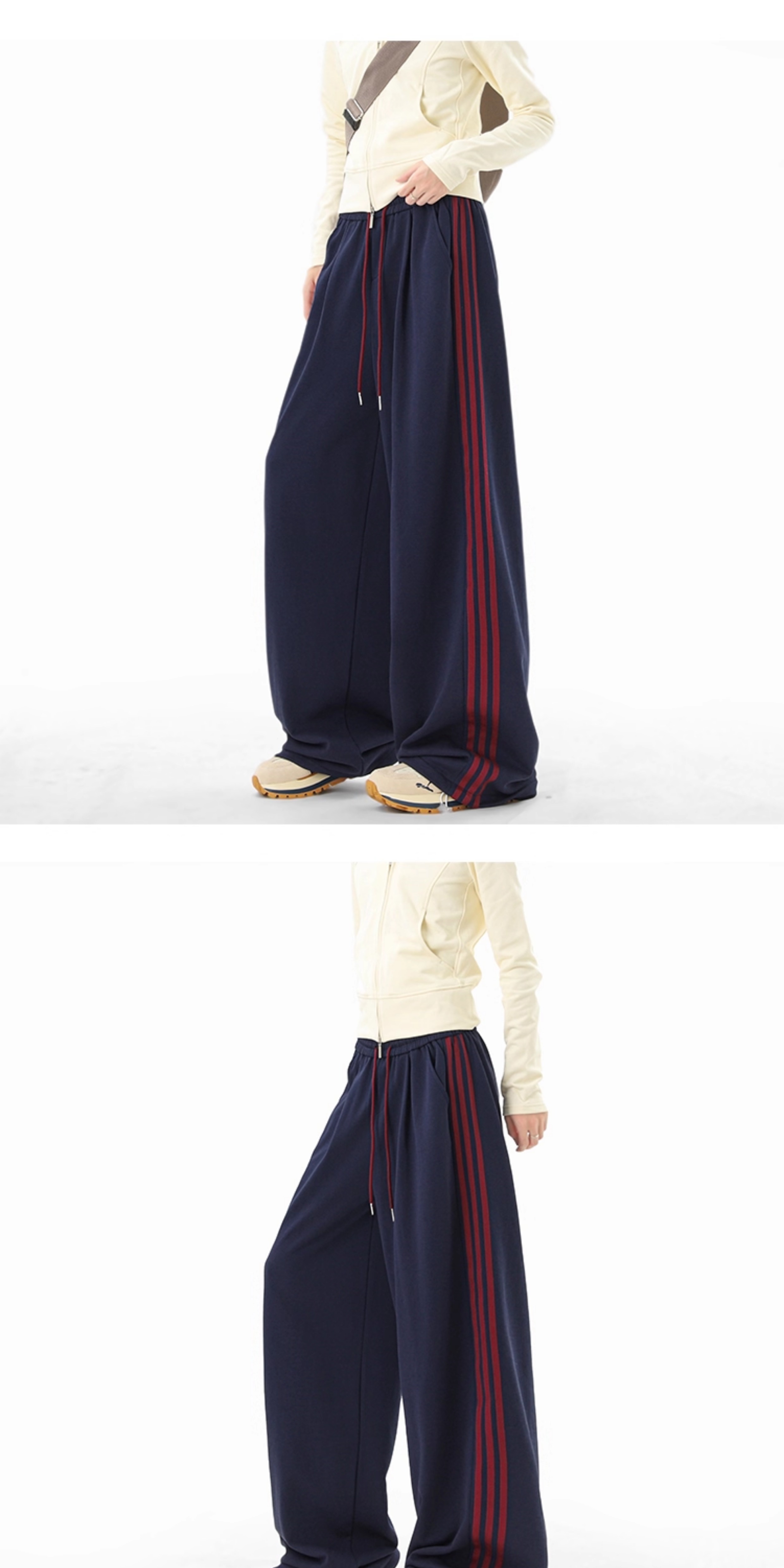 American Retro Color-Block Striped Sweatpants for Women and Men, Versatile Casual Sports Pants for Autumn, Loose Drape Wide-Leg Floor-Length Pants