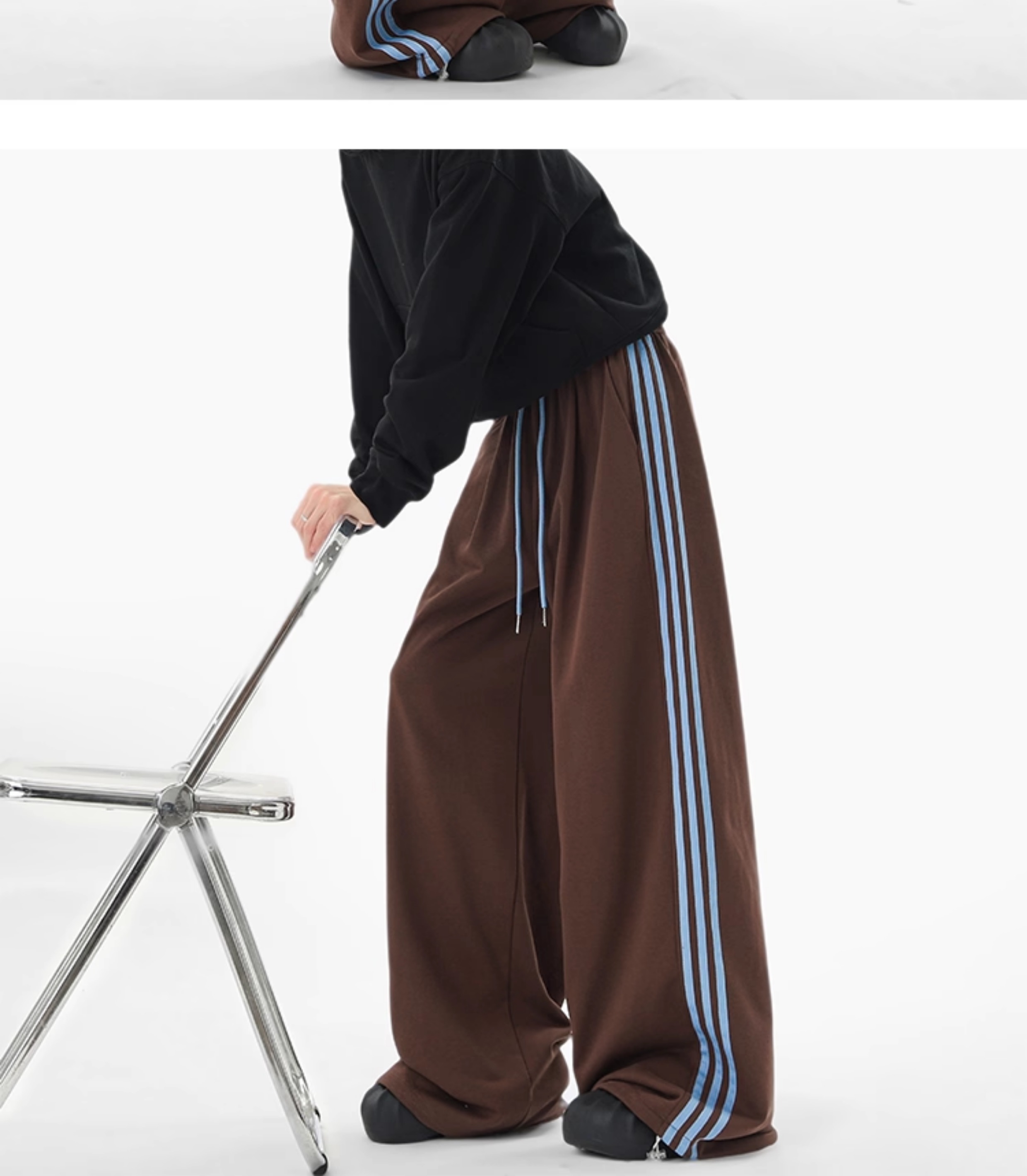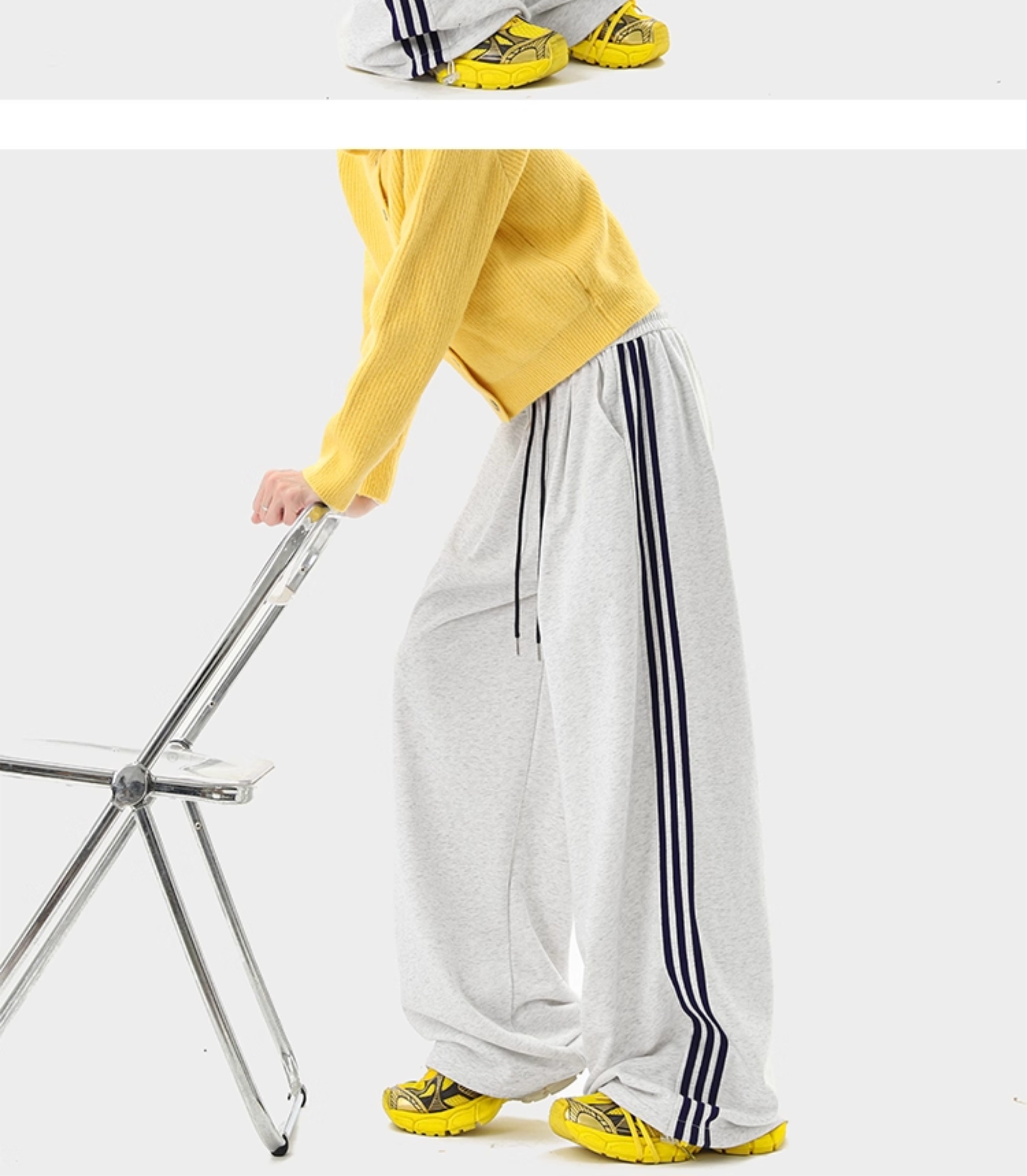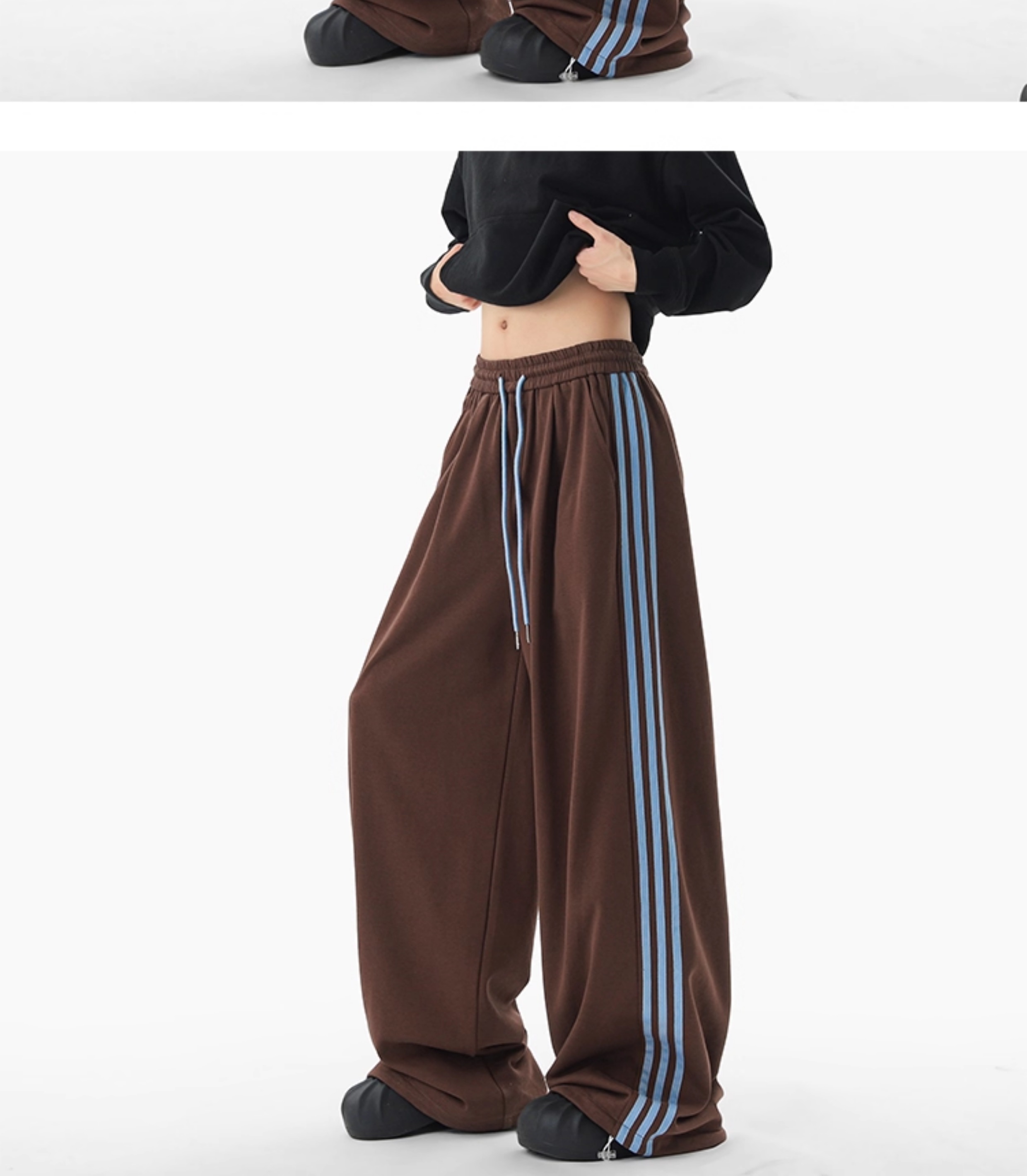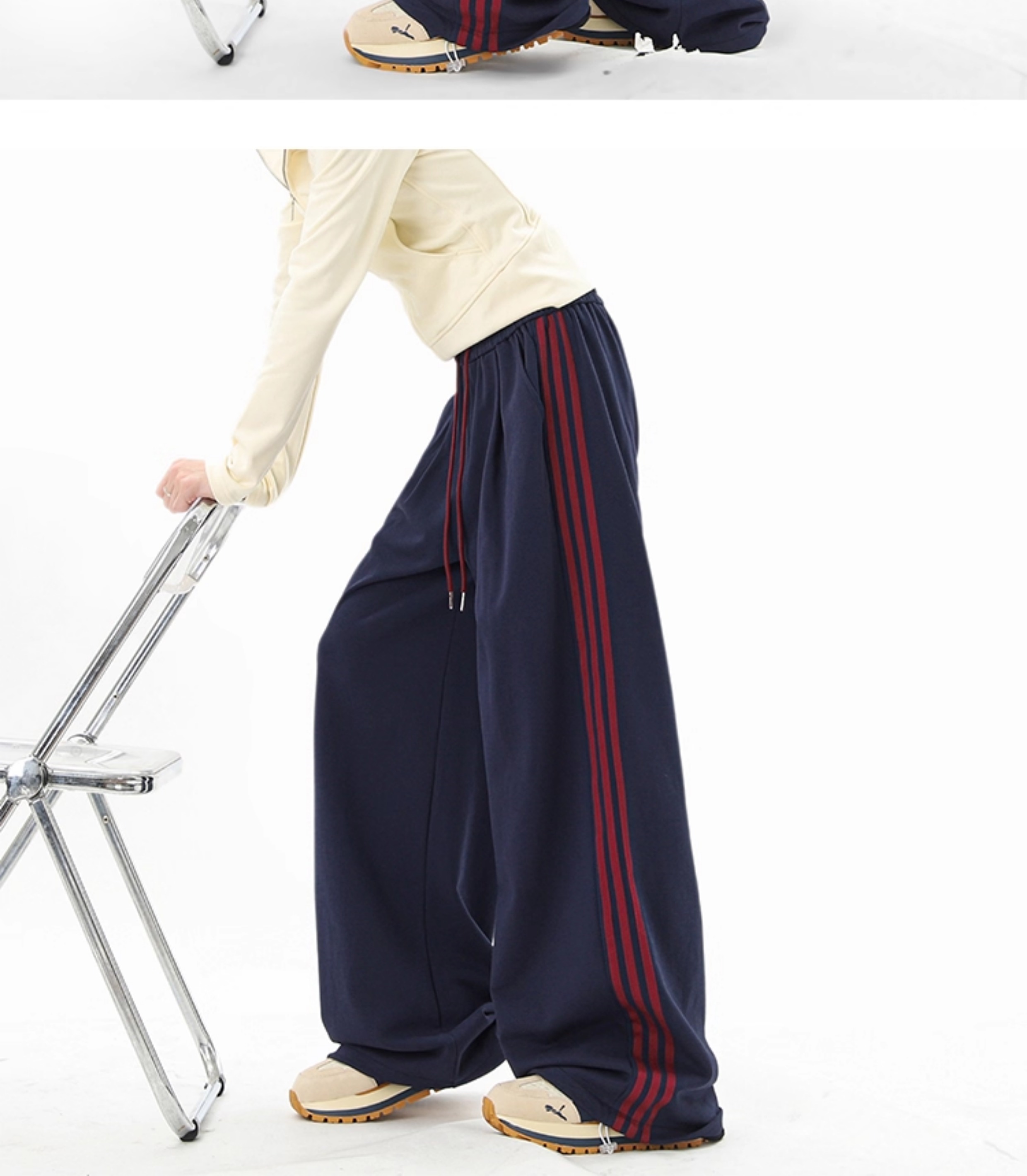 American Retro Color-Block Striped Sweatpants for Women and Men, Versatile Casual Sports Pants for Autumn, Loose Drape Wide-Leg Floor-Length Pants