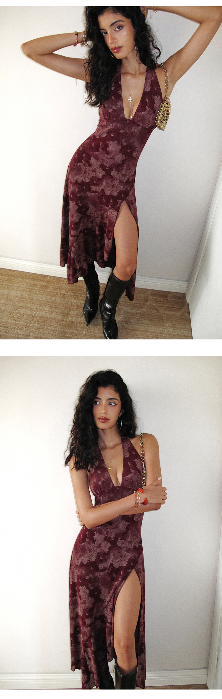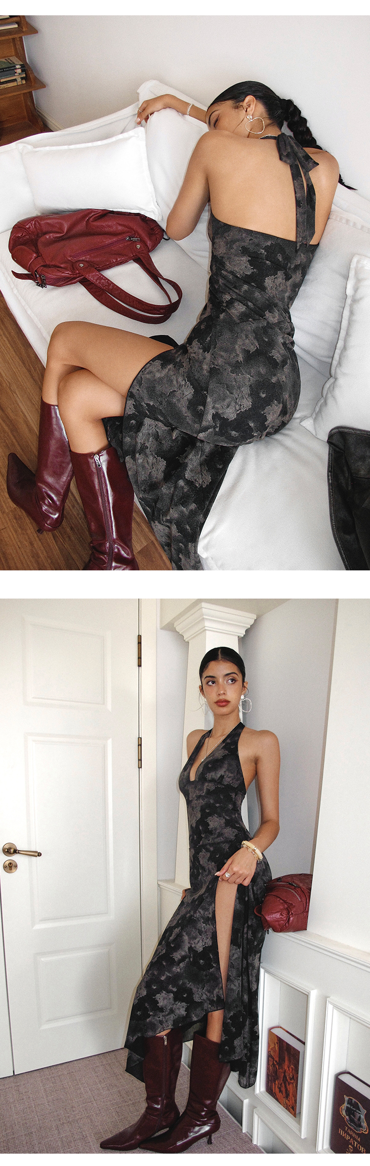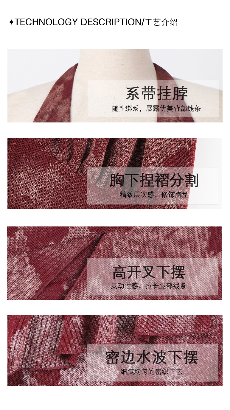 Itsnikar Textured V Neck Halterneck Dress for Women in Autumn, Sexy Backless Hip Skirt, Pleated Strap Long Skirt