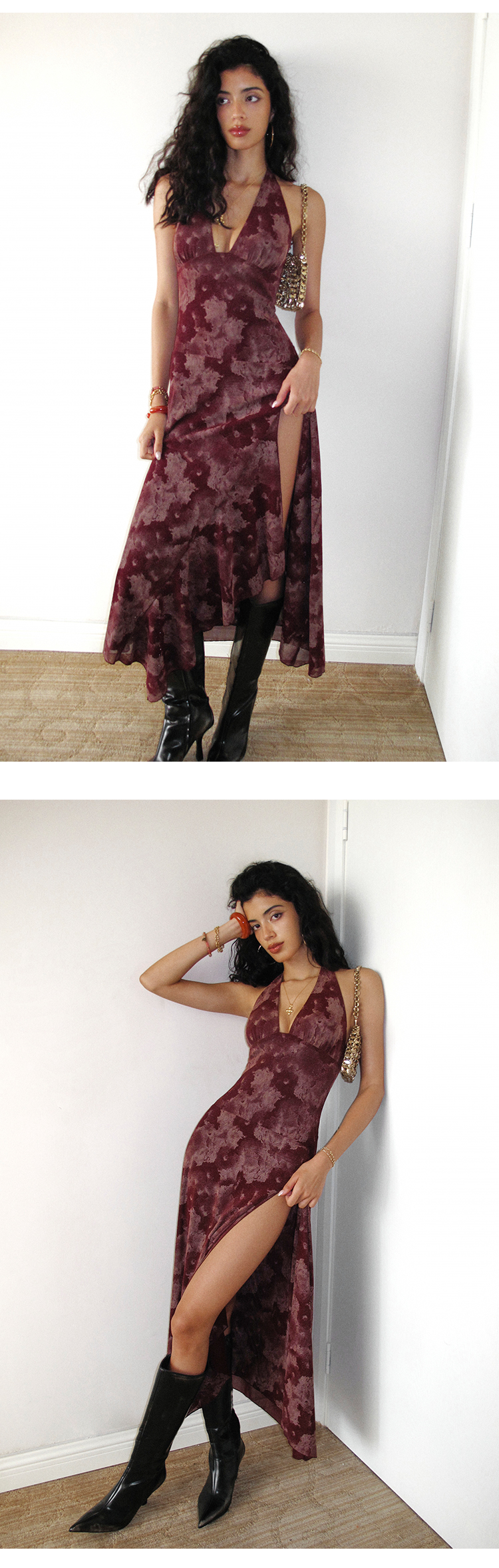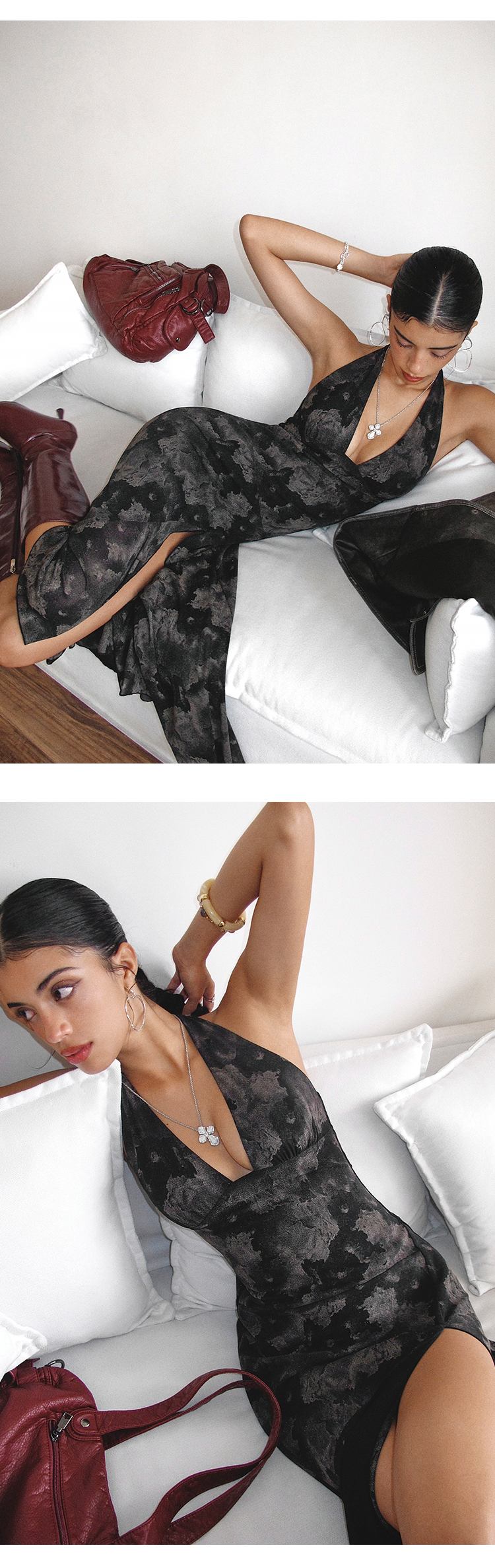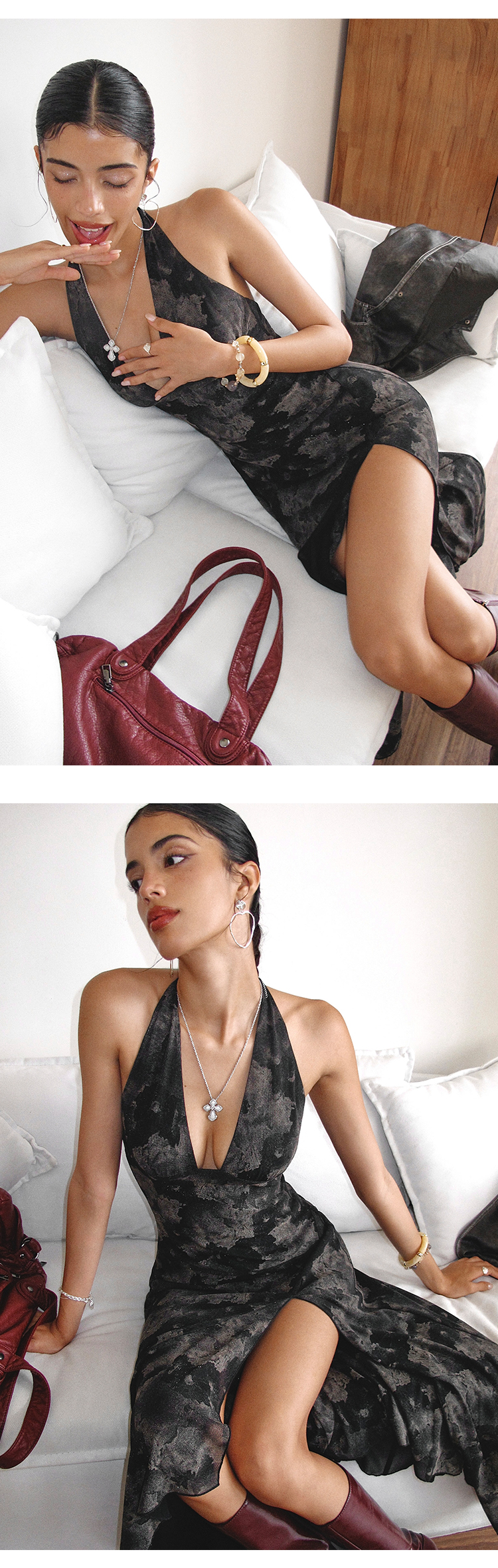 Itsnikar Textured V Neck Halterneck Dress for Women in Autumn, Sexy Backless Hip Skirt, Pleated Strap Long Skirt