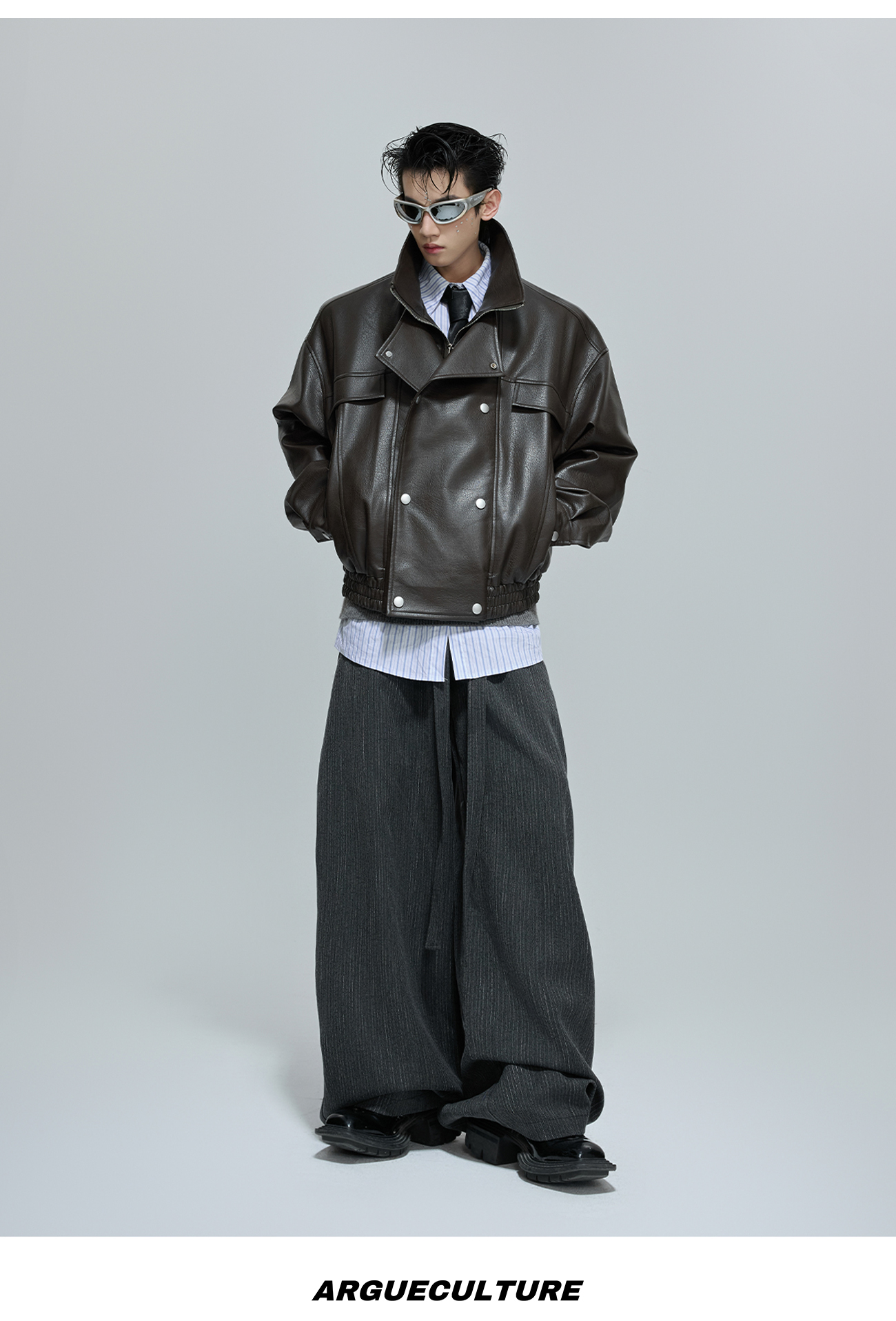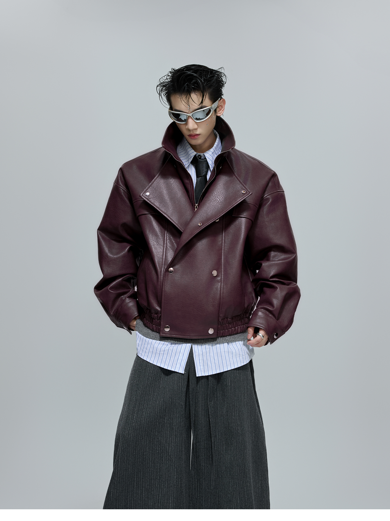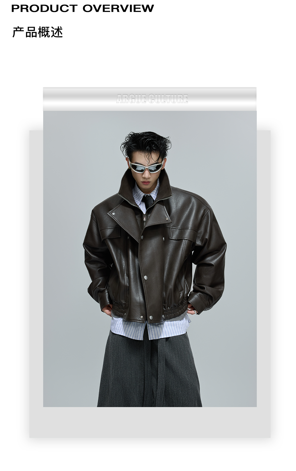 Argue Culture Niche Deconstructed Faux Two-Piece Design Short Leather Jacket with Multiple Wearing Styles and Button-Up Closure