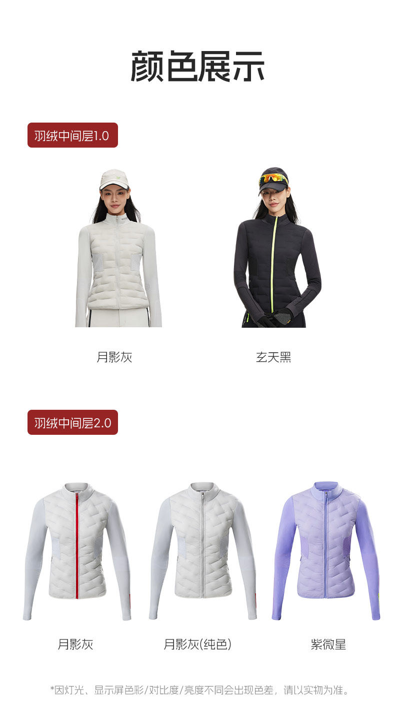 Playtop Goose down Warm Skiing and Golf Inner Layer Women's Slim Fit Hiking Lightweight Ribbed down Jacket Midlayer