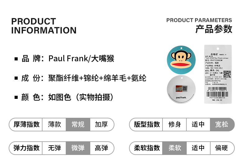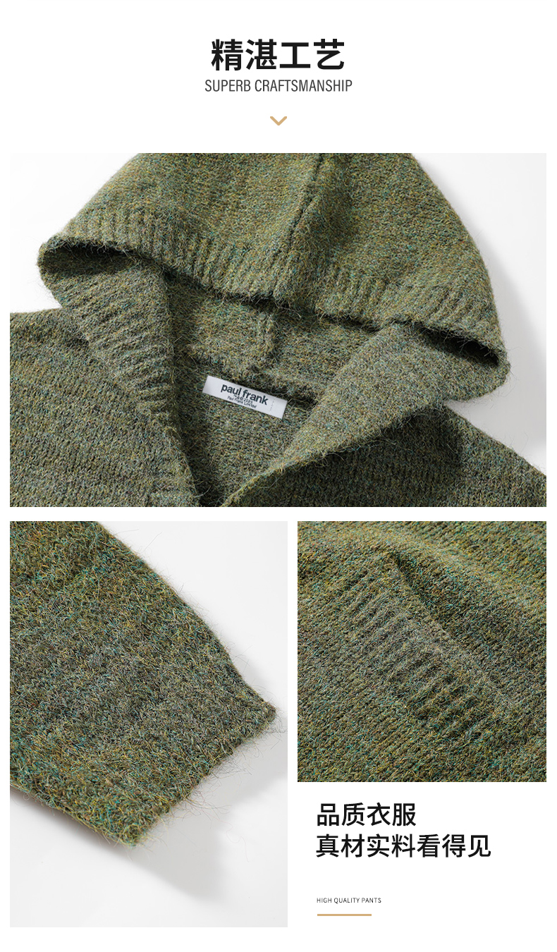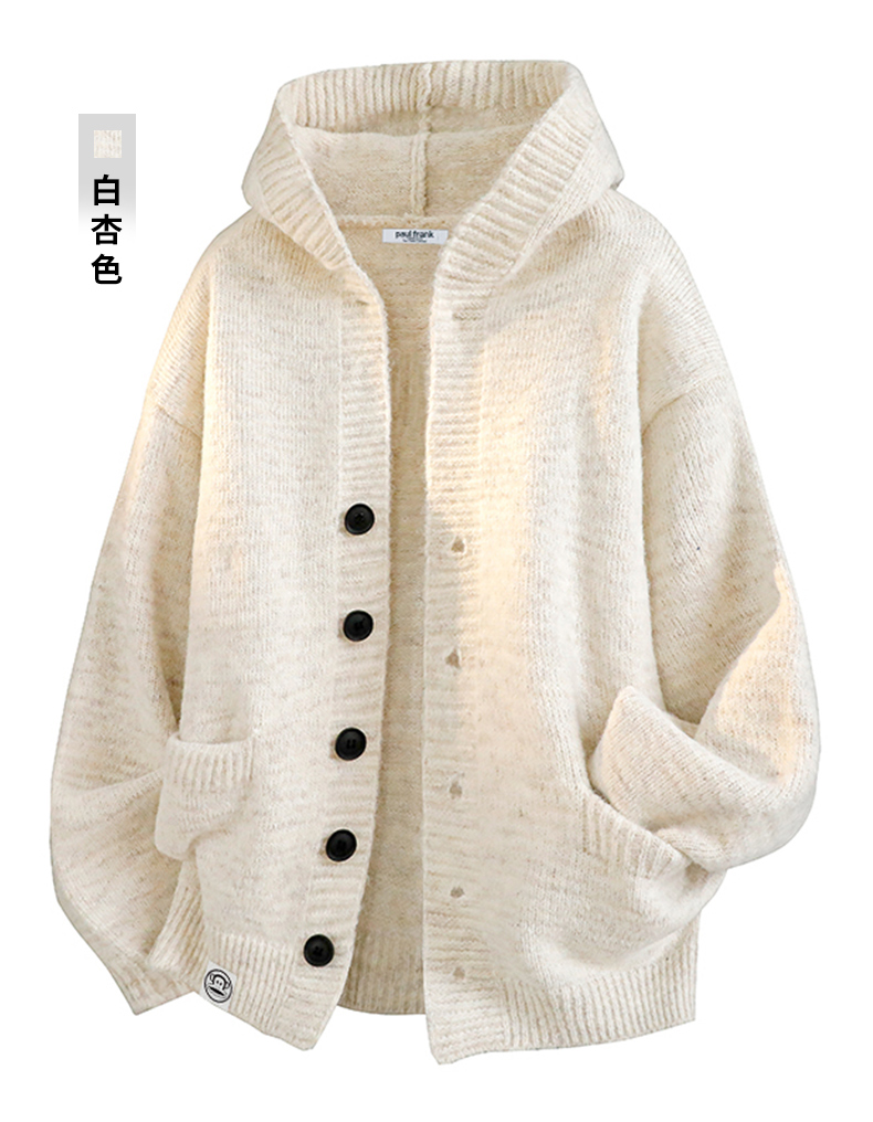 PaulFrank/big mouth monkey hooded Knitting Cardigan male autumn Loose lazy style Couple Retro Heattech Sweater