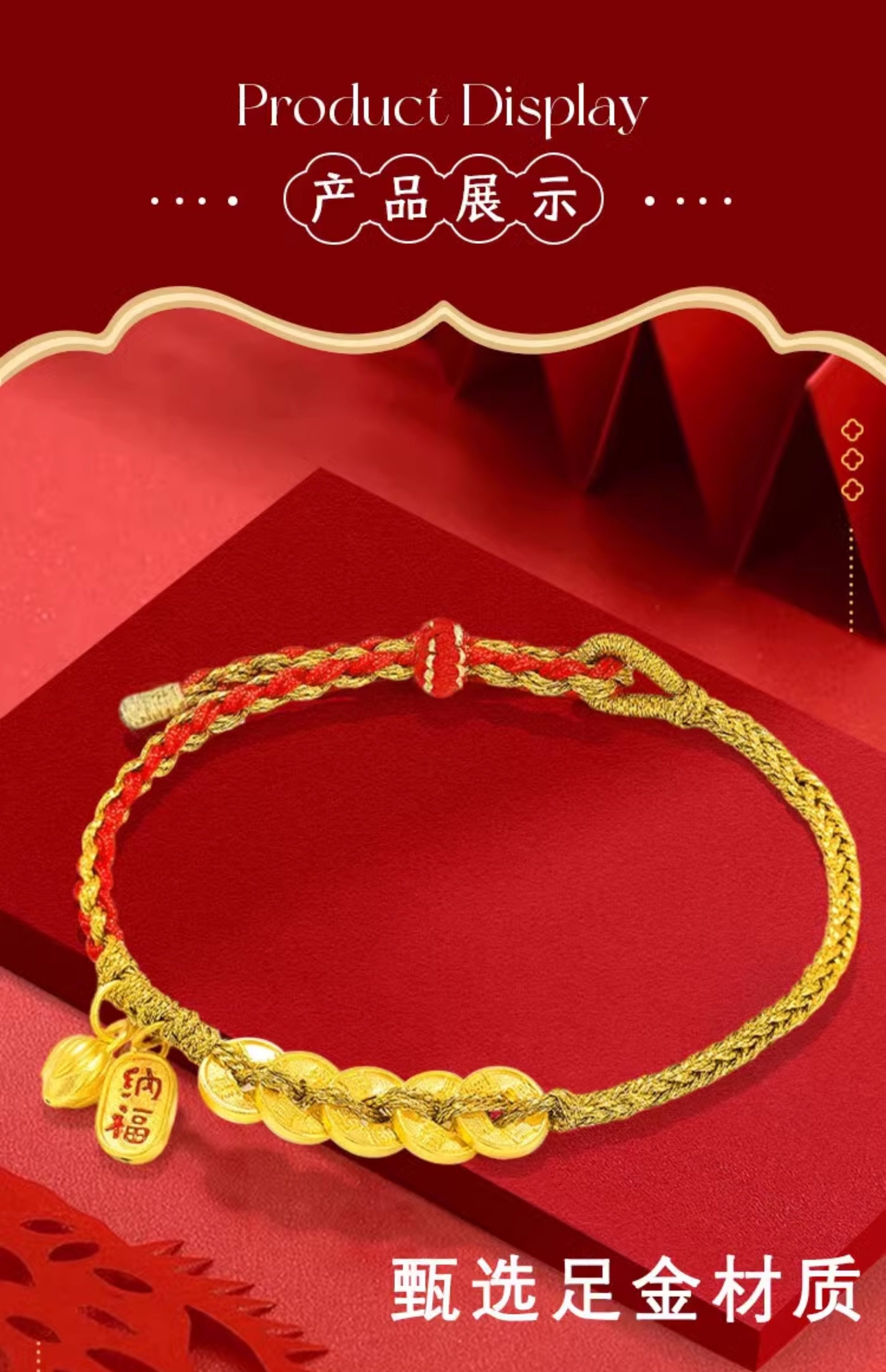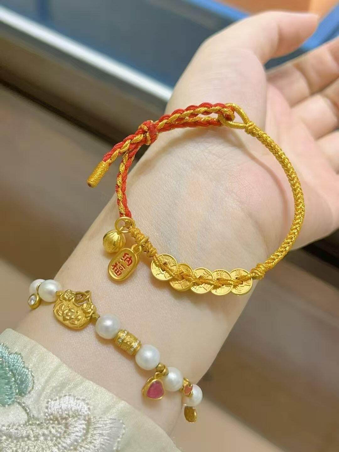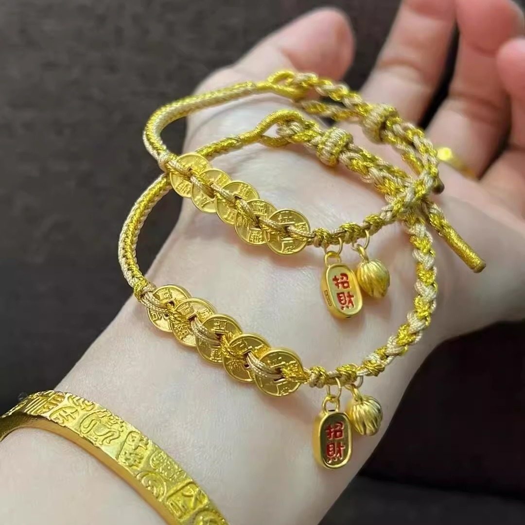 Chinese Jewelry Pure Gold 999 Five Emperors Coin Bracelet Pure Gold Lotus Bracelet Gift for Best Friend or Girlfriend's Birthday