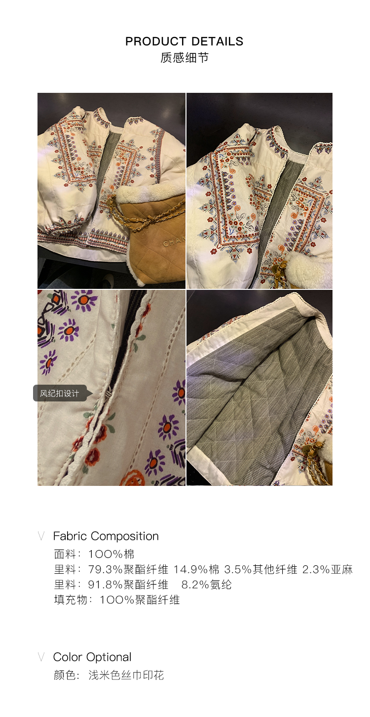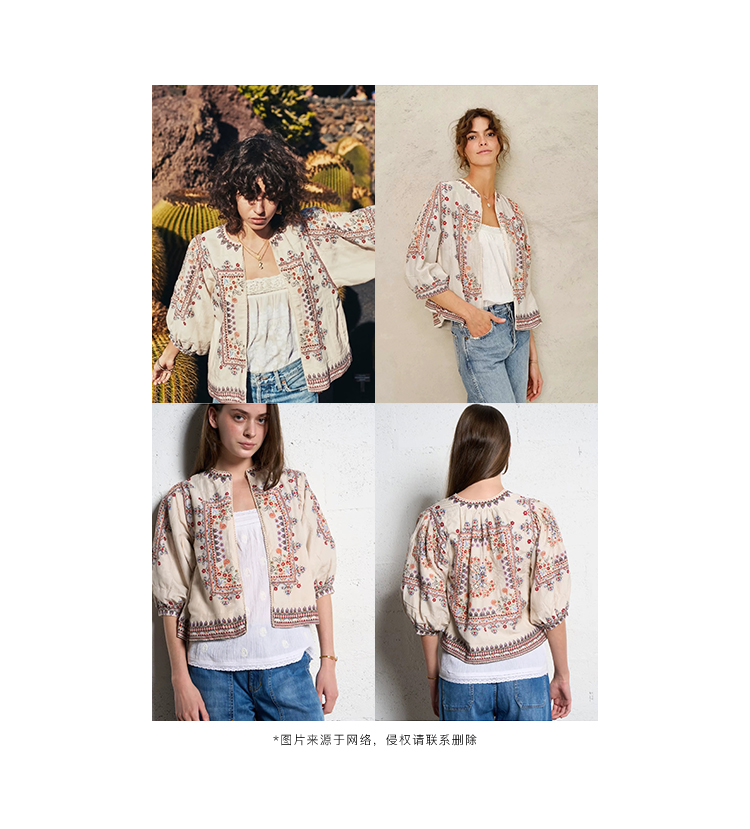 Thevever Zhang Dayi 100% Cotton Heavy Embroidery Puff Sleeve Soft Vintage Ethnic Style Embroidered Cotton Jacket
