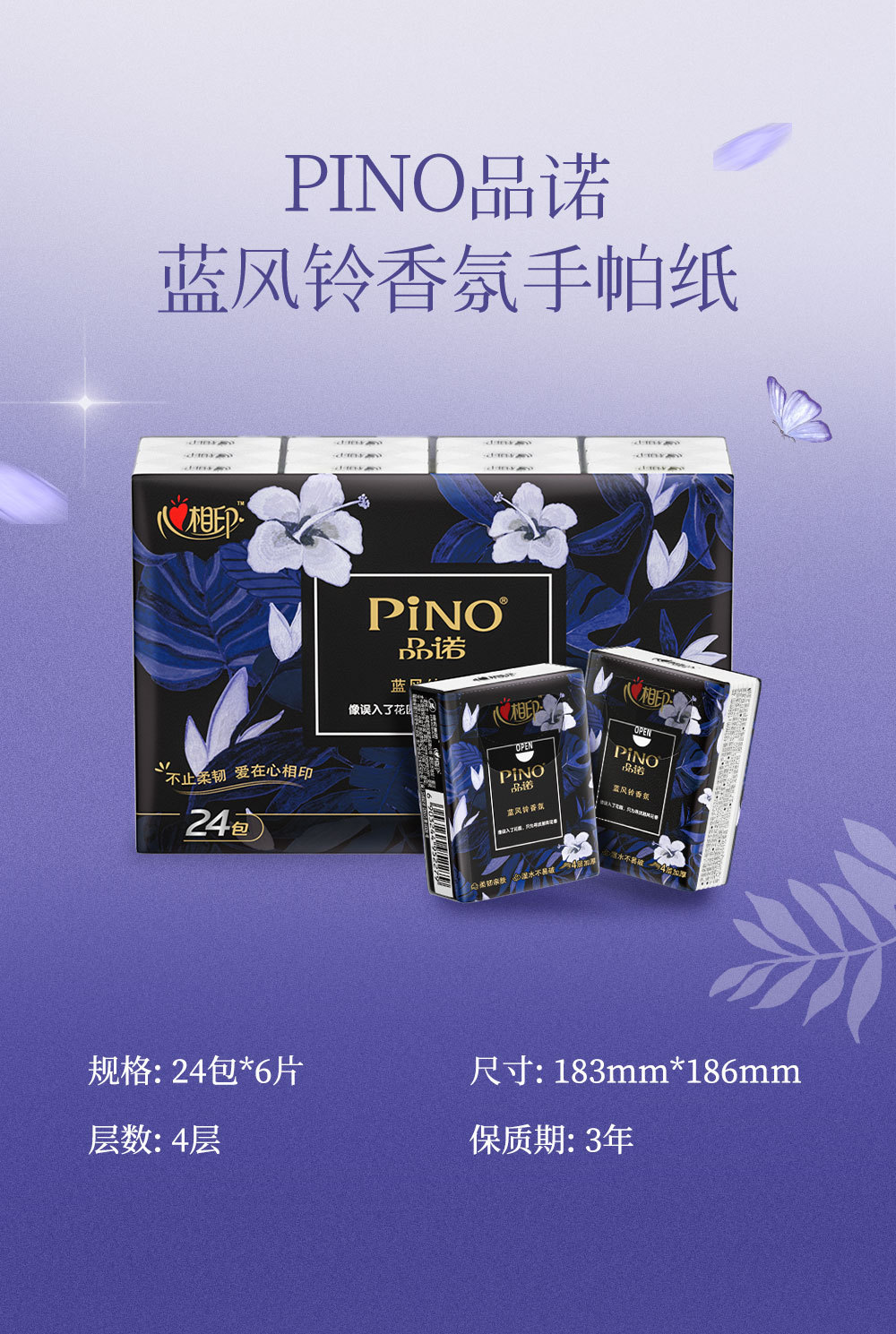 Xinxiangyin Pino Blue Wind Chime Fragrance Series 6 Pieces 24 Packs Four-Layer Thickened Tissue Paper Whole Box