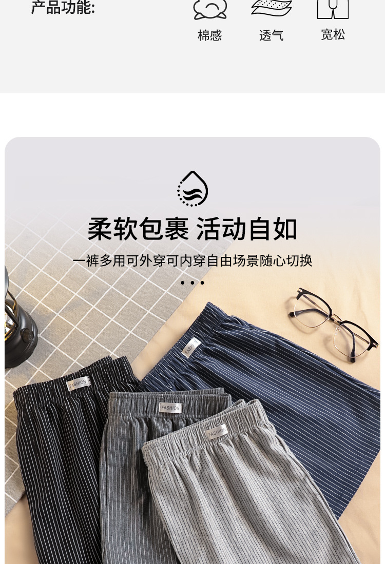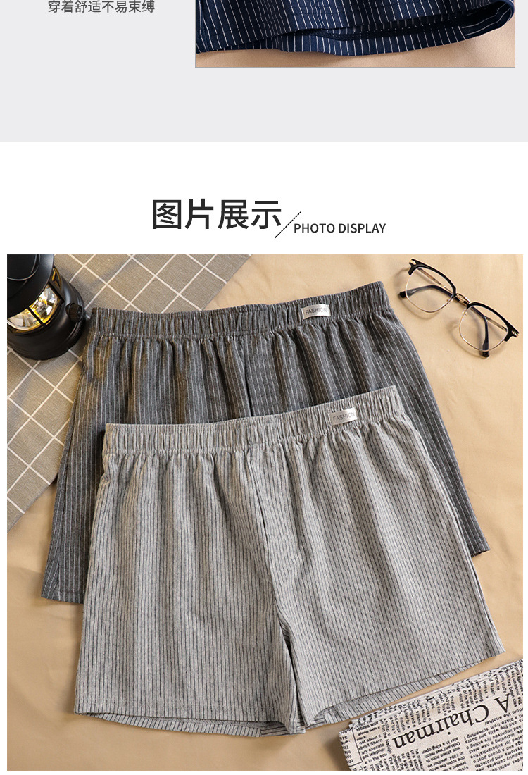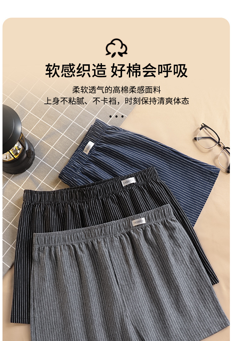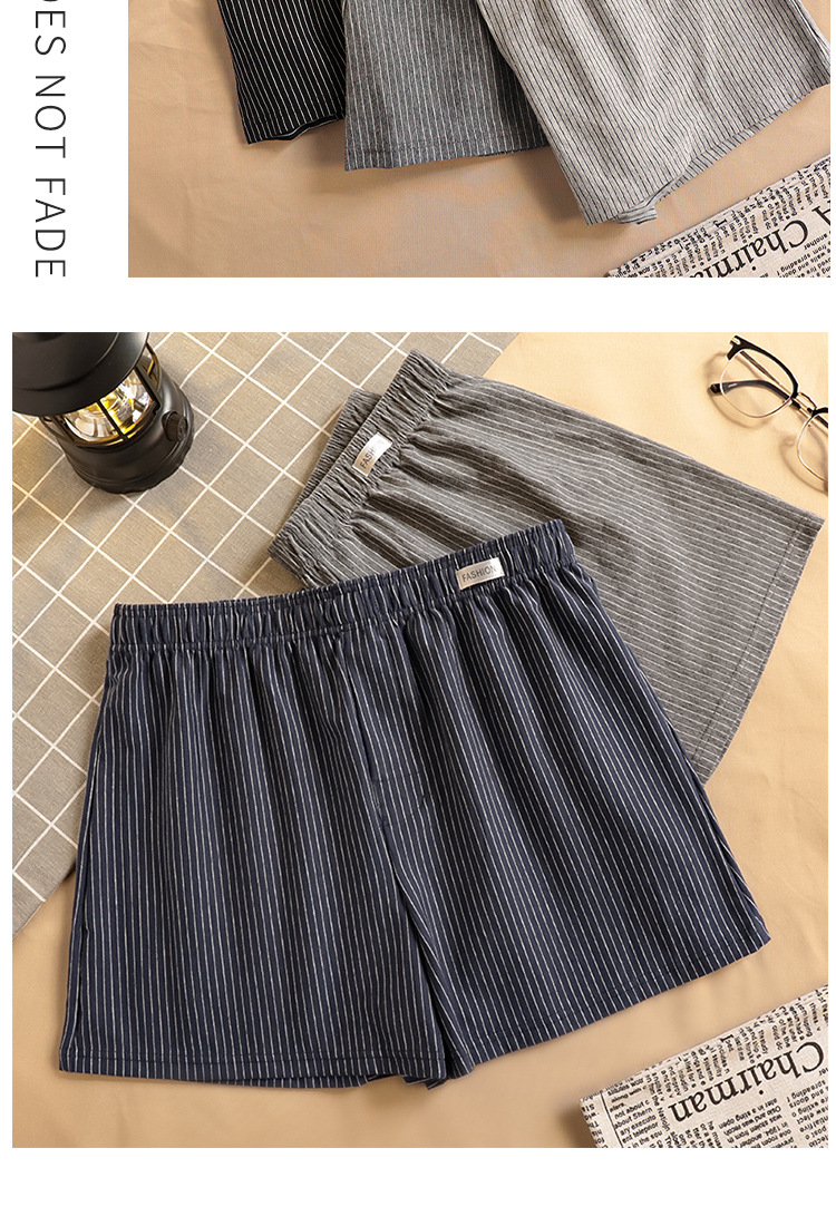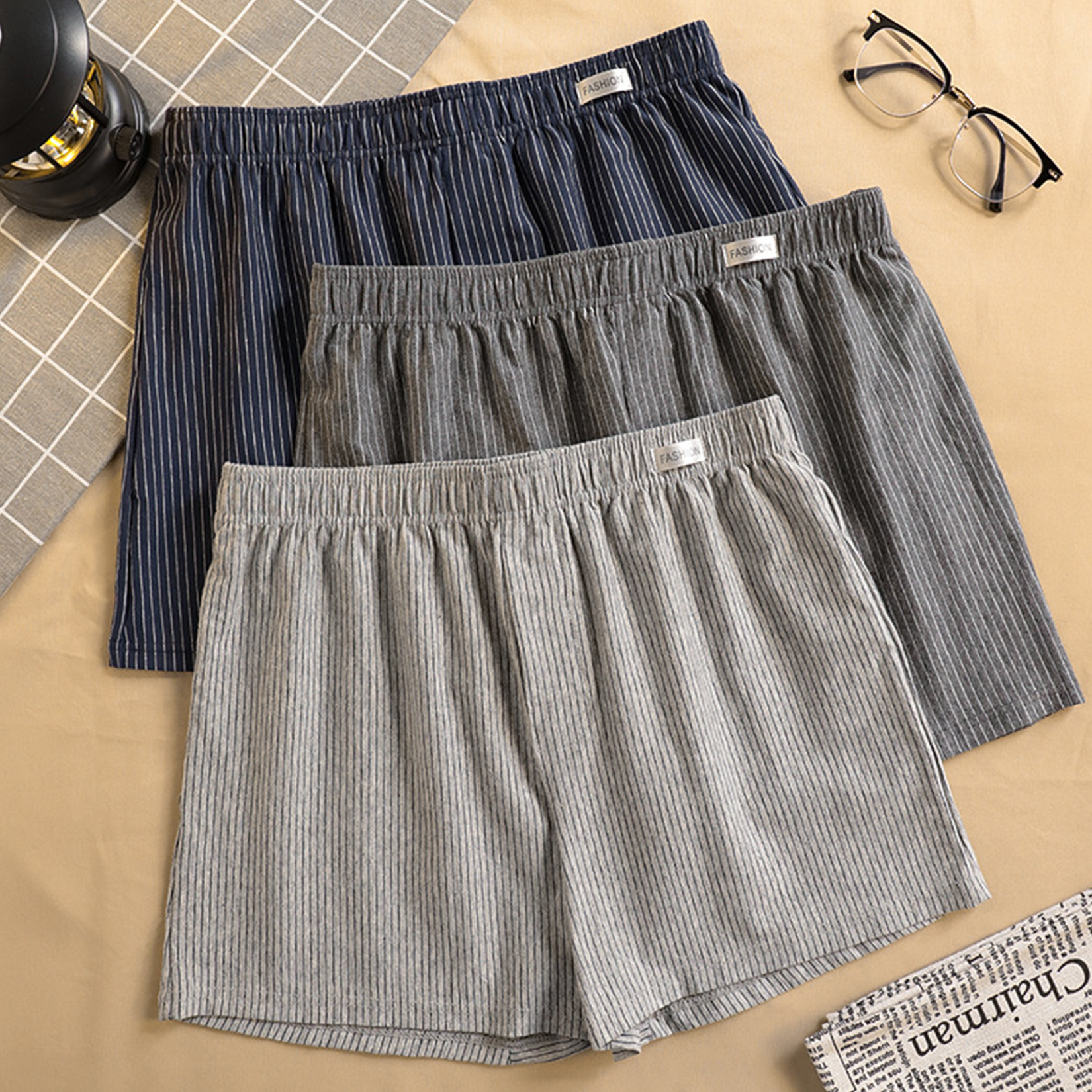 Men's Underwear, Loose-Fitting Boxer Shorts, Breathable Pure Cotton, Home Sleepwear, Men's Large Size Striped Boxer Shorts