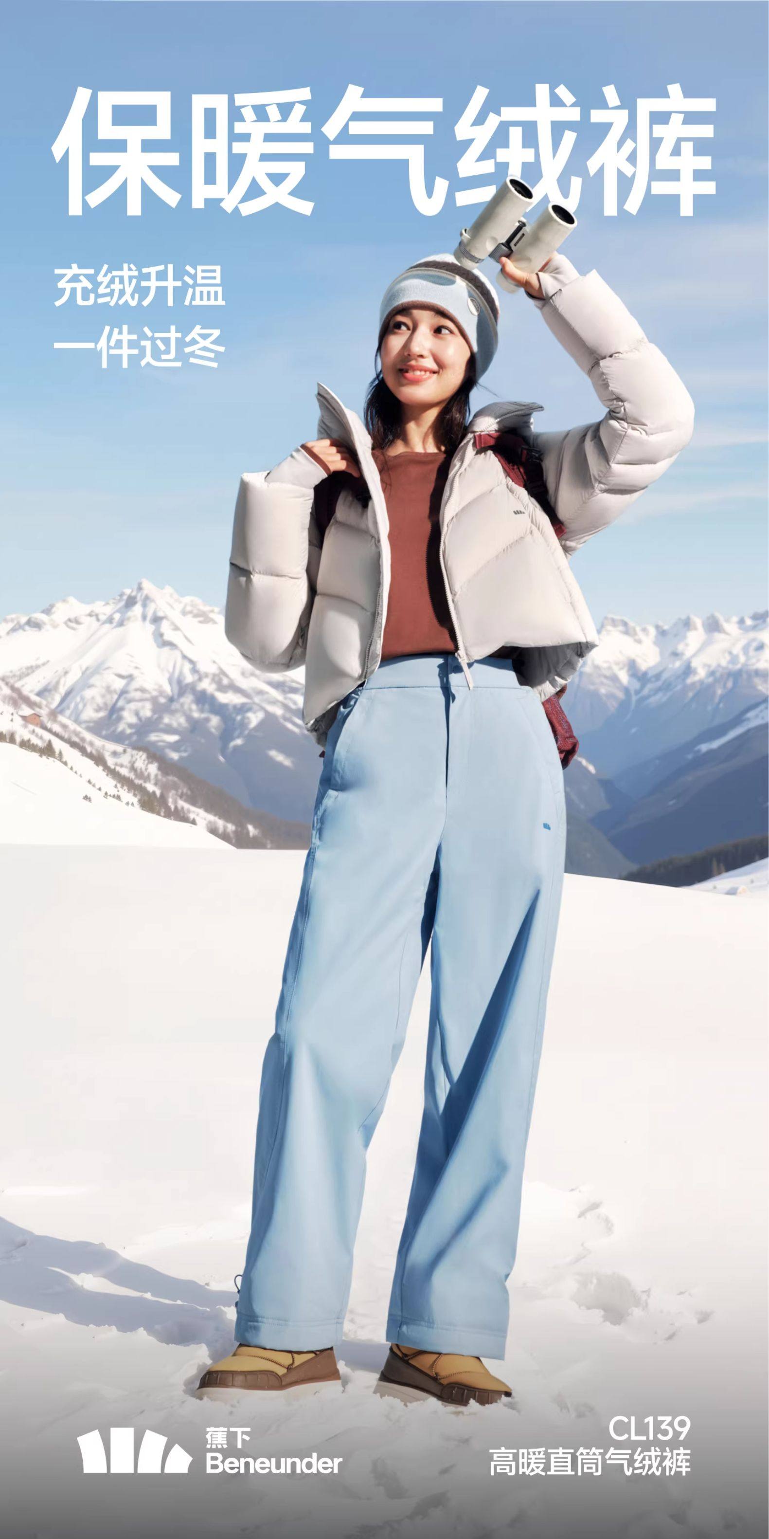 Banana down Fleece Pants for Women, New Winter Style, Windproof Straight-Leg Pants for Outdoor Wear, Cold-Resistant and Warm, Similar to down Cotton Pants