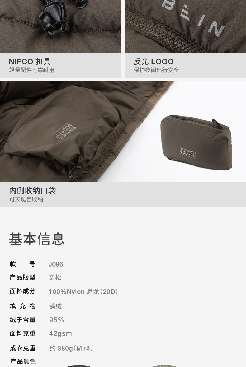 Bein Space Winter New Product 95 White Goose down 800Fp Lightweight Warm Windproof Puffer Jacket down Jacket J096