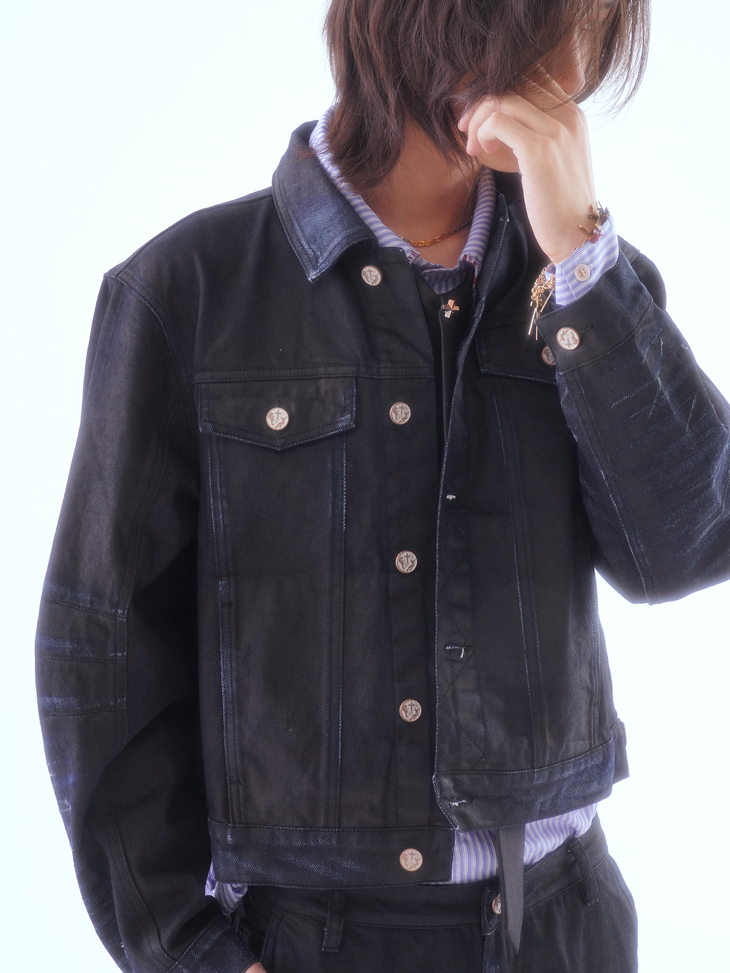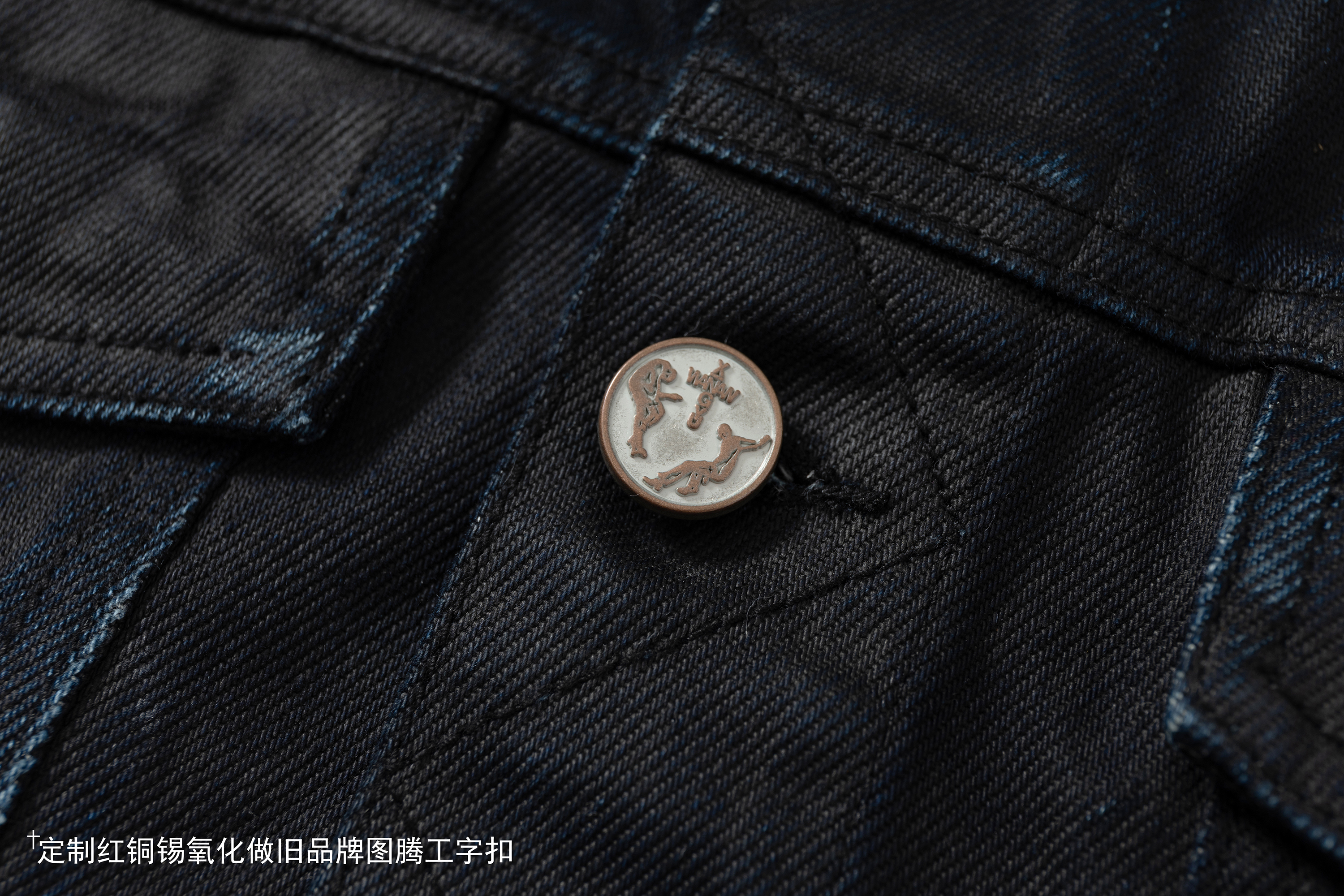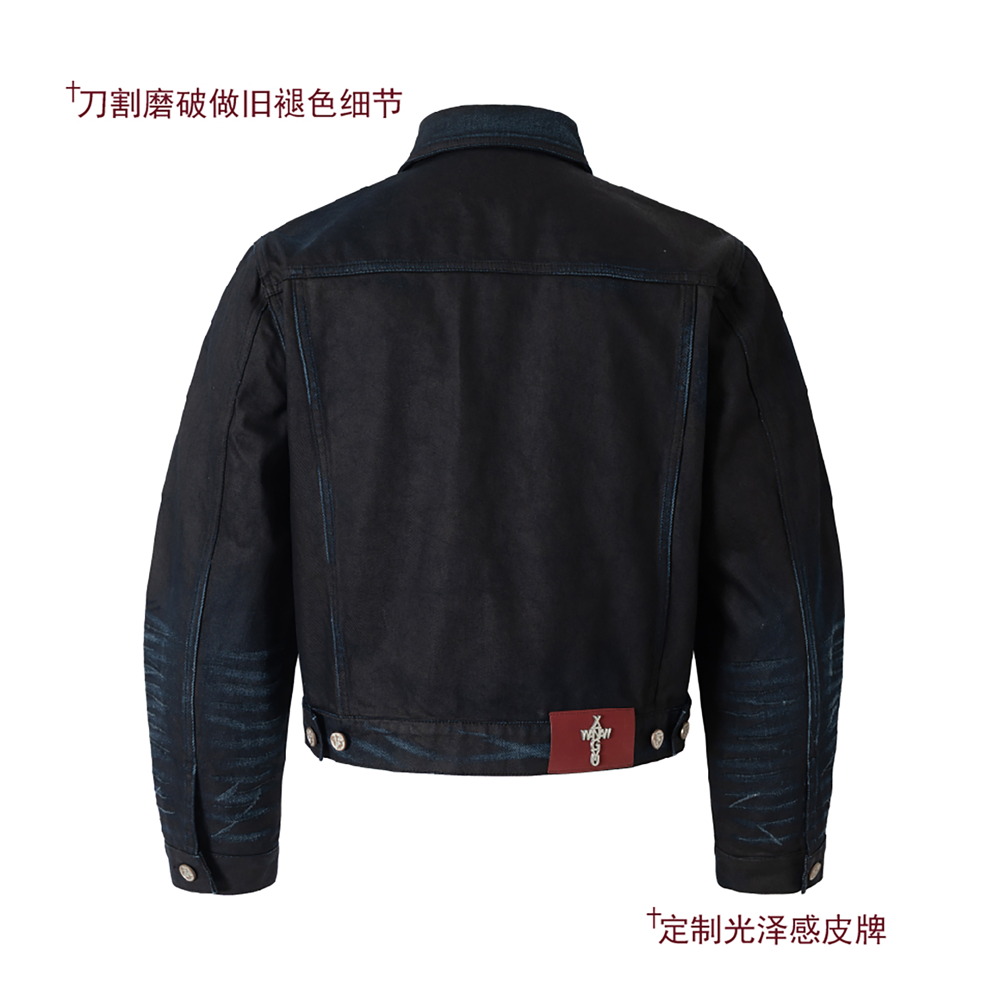 Wangxingyu Coated Knife-Scratched Hand-Brushed Wax Distressed Denim Jacket
