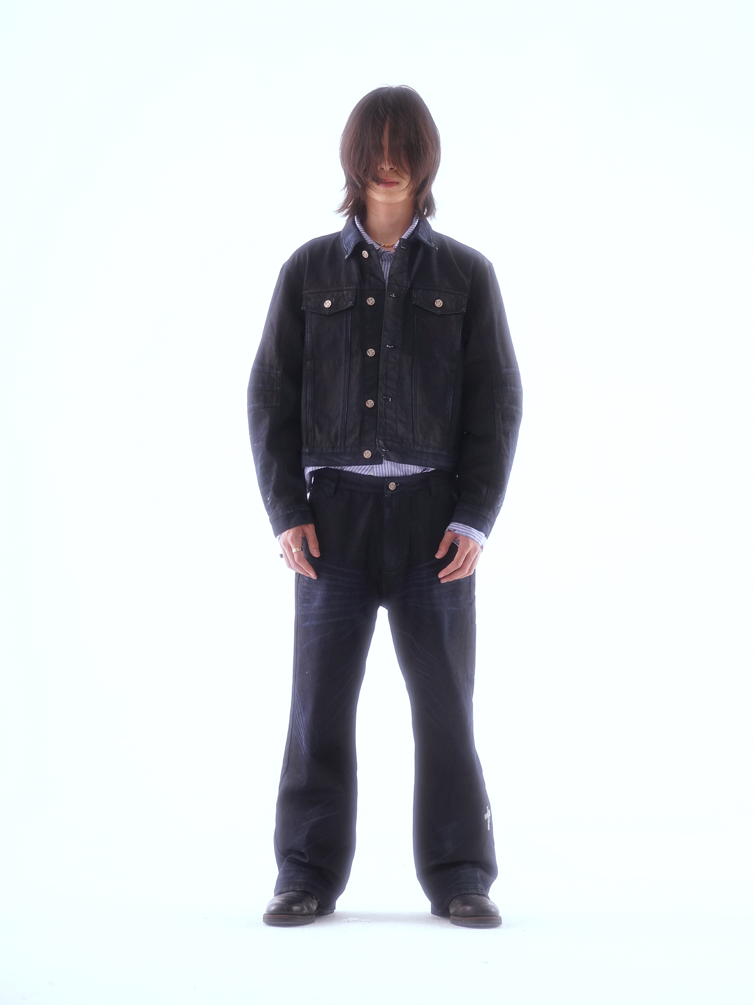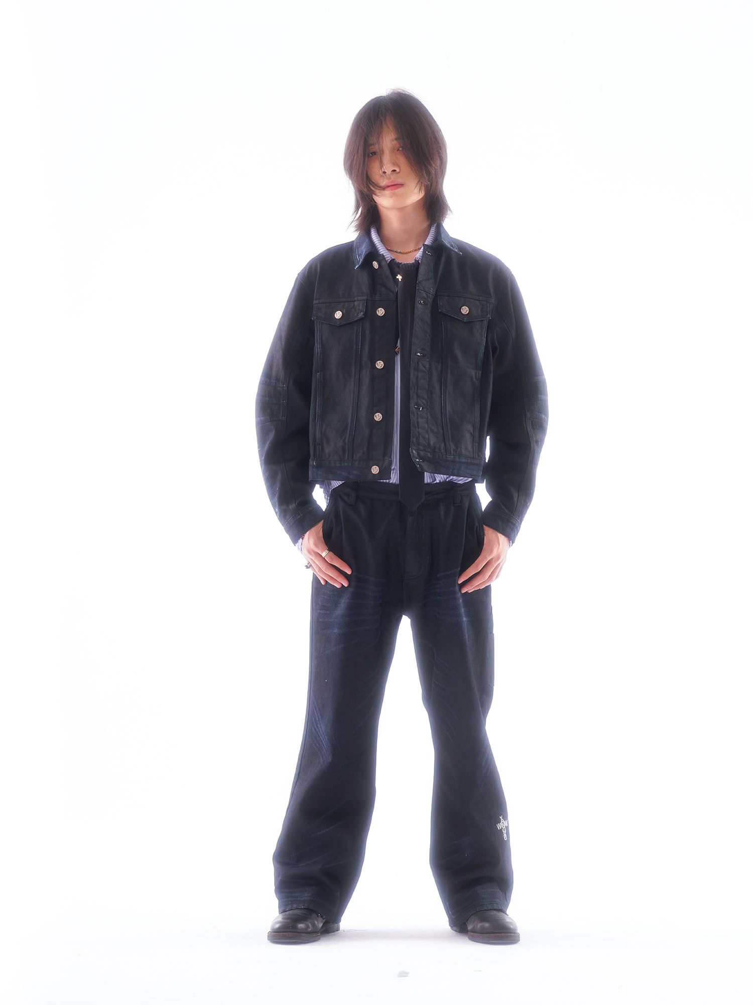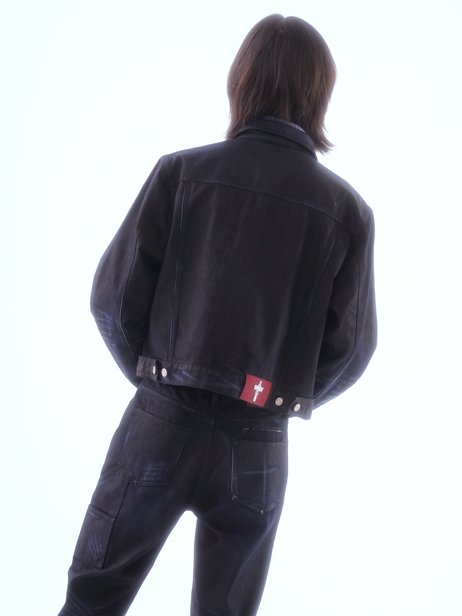 Wangxingyu Coated Knife-Scratched Hand-Brushed Wax Distressed Denim Jacket