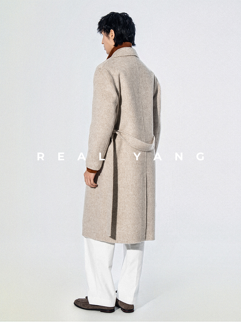 Real Yang2025 Autumn and Winter New Product Beige Double-Sided Woolen Coat Full Wool Long Over-The-Knee Coat for Men