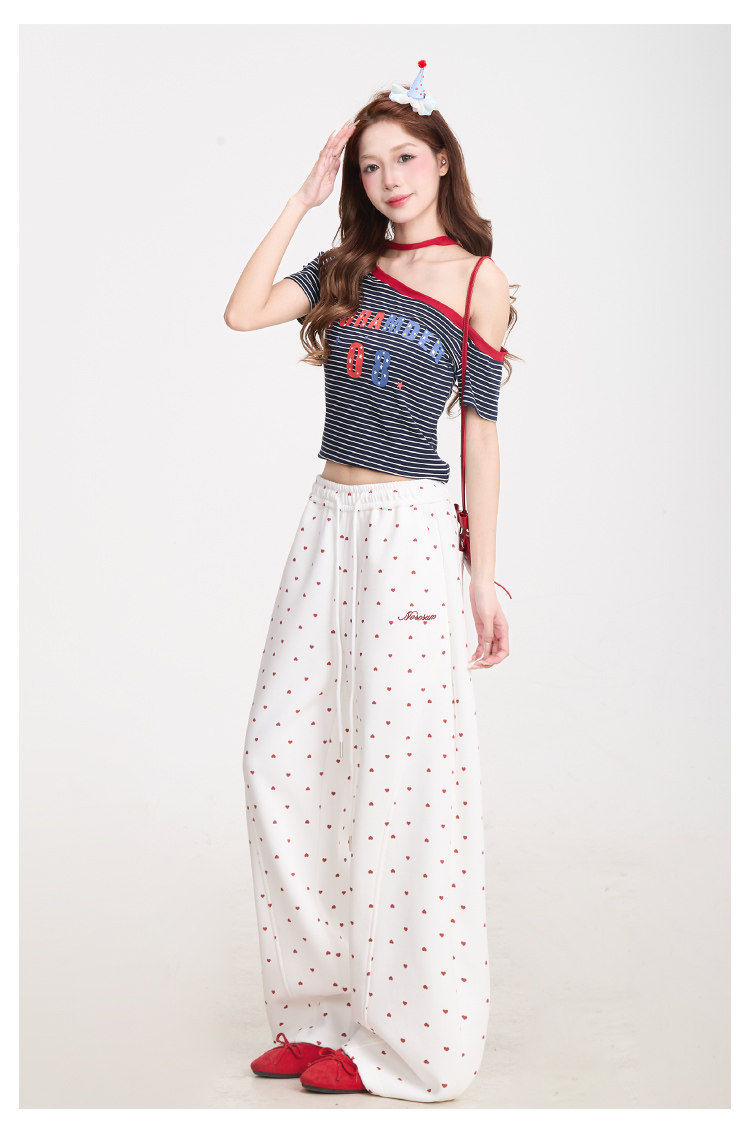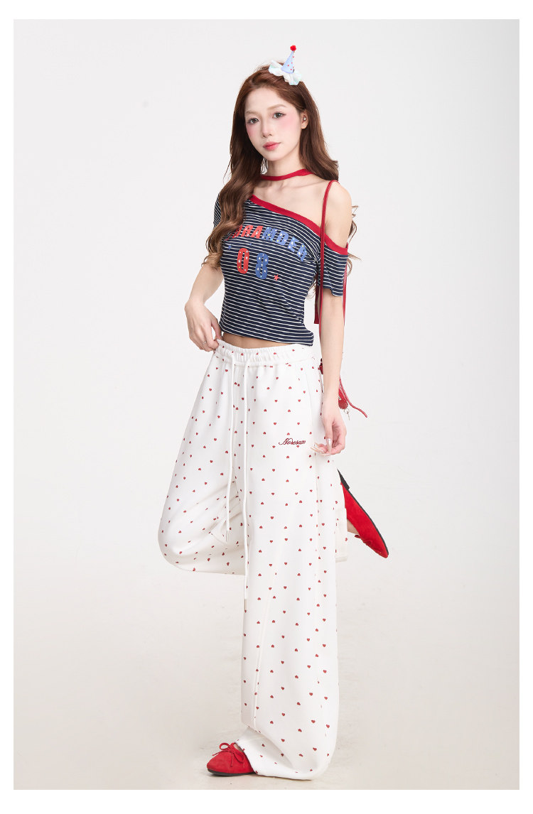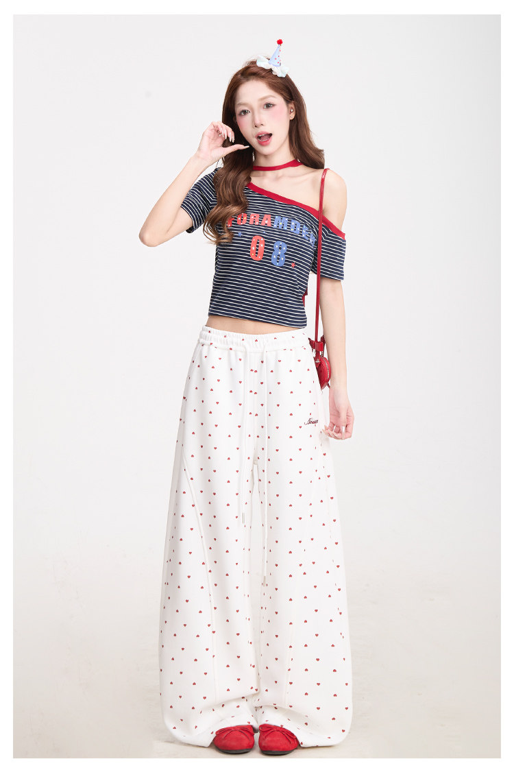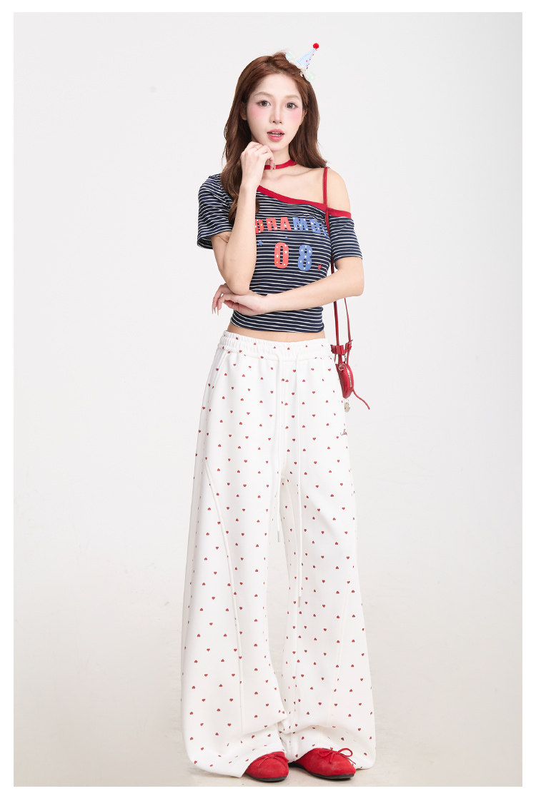 Neresum Sweet All-Over Heart Print Sweatpants for Women, Autumn and Winter Hip-Hop Dance Pants, Drapey Slimming Straight-Leg Sports Pants