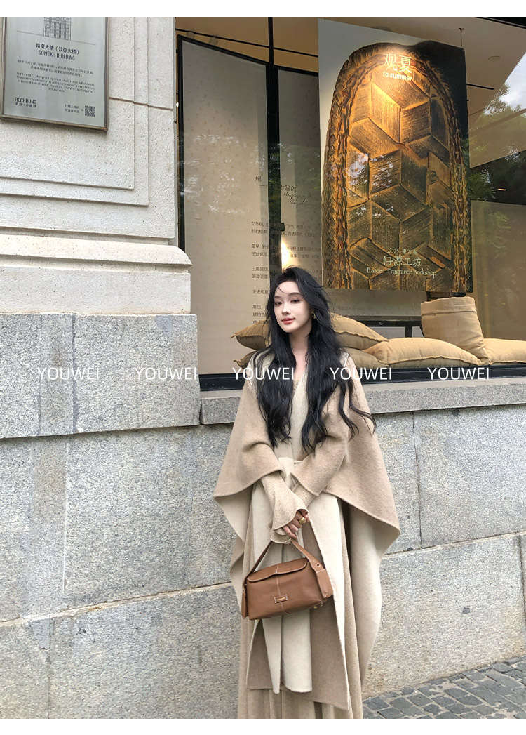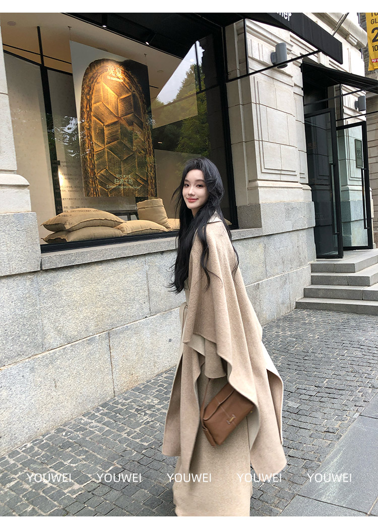 Youwei Reversible Stylish Winter Coat for Women, Double-Sided Woolen Coat, Cape, Shawl Top