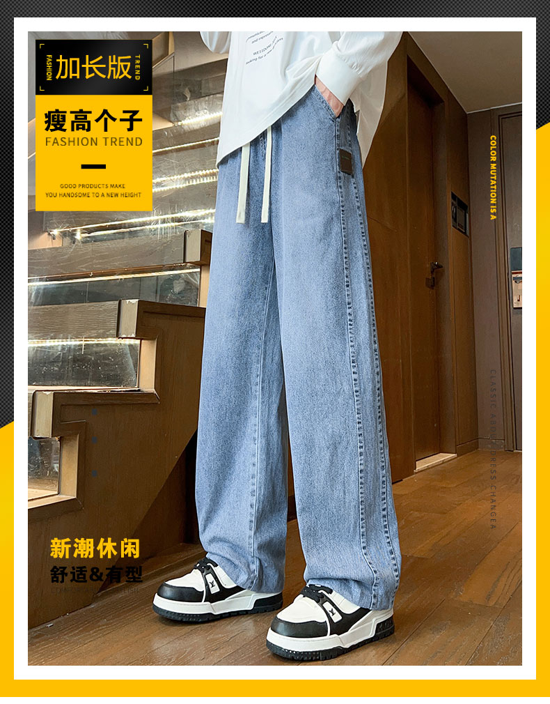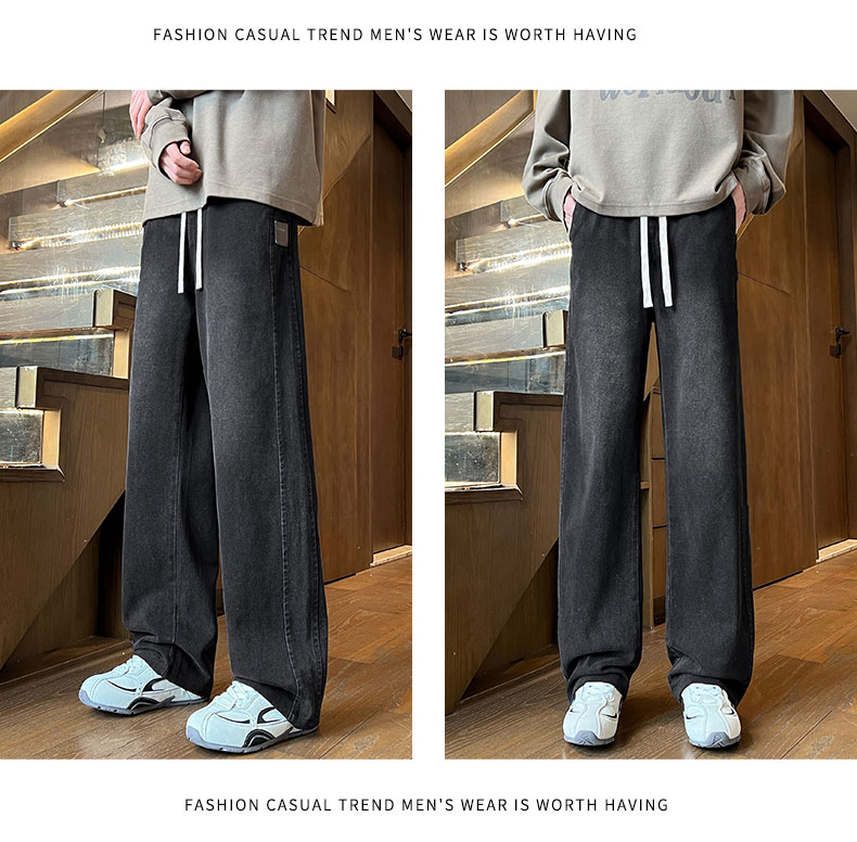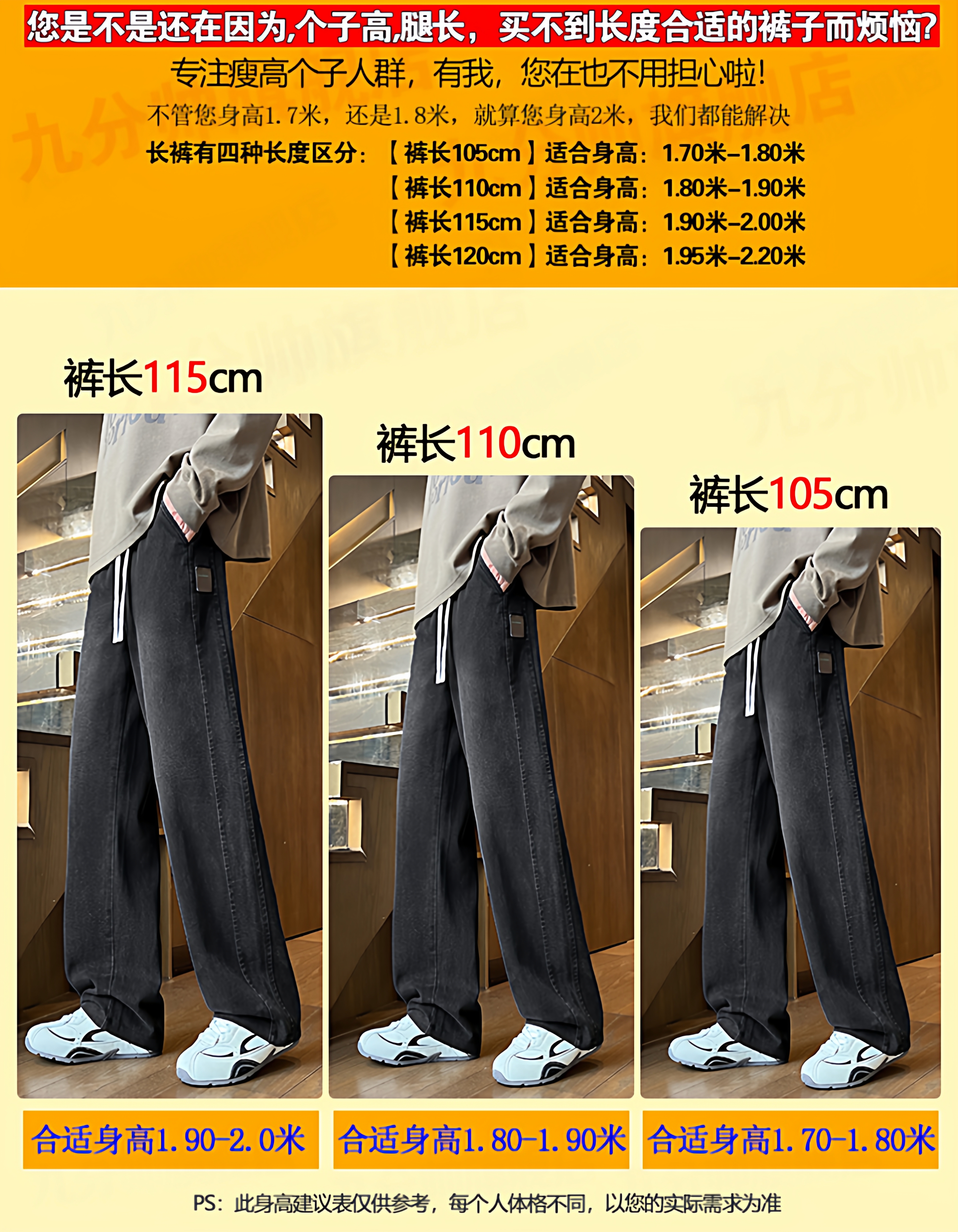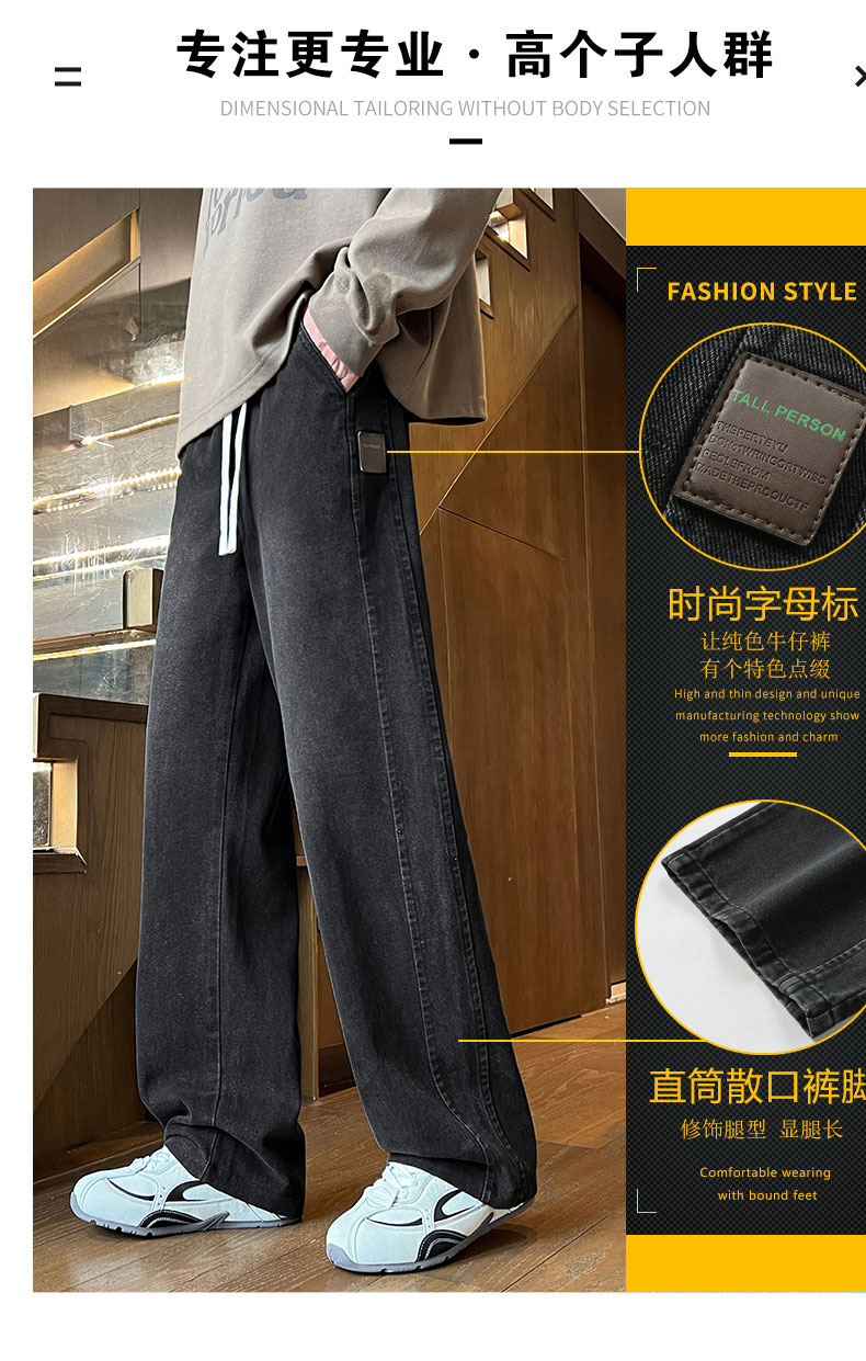 Extended Length Pants for Tall Men, Fleece-Lined Jeans for Boys, Autumn and Winter Slim Tall Teenagers' Casual Straight-Leg Pants