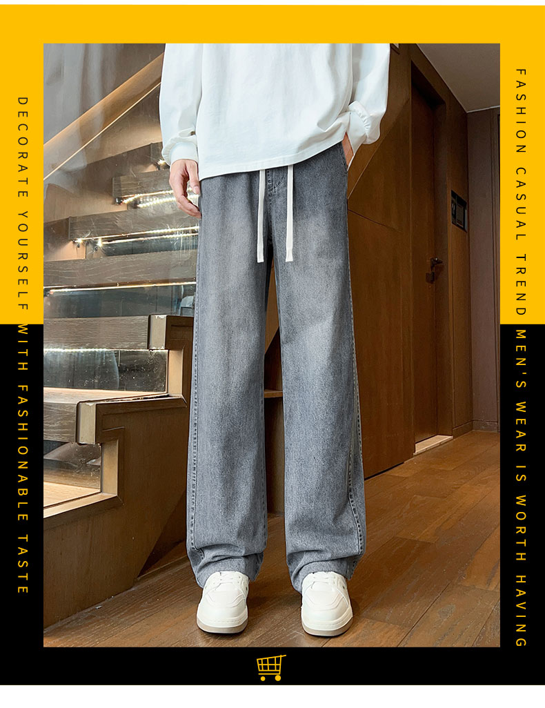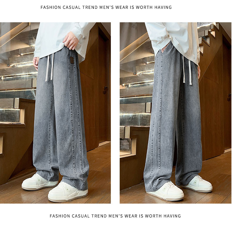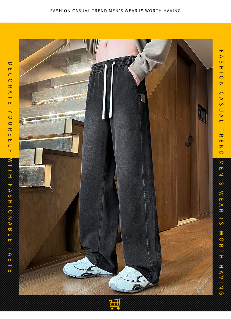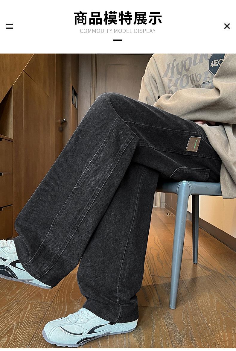 Extended Length Pants for Tall Men, Fleece-Lined Jeans for Boys, Autumn and Winter Slim Tall Teenagers' Casual Straight-Leg Pants