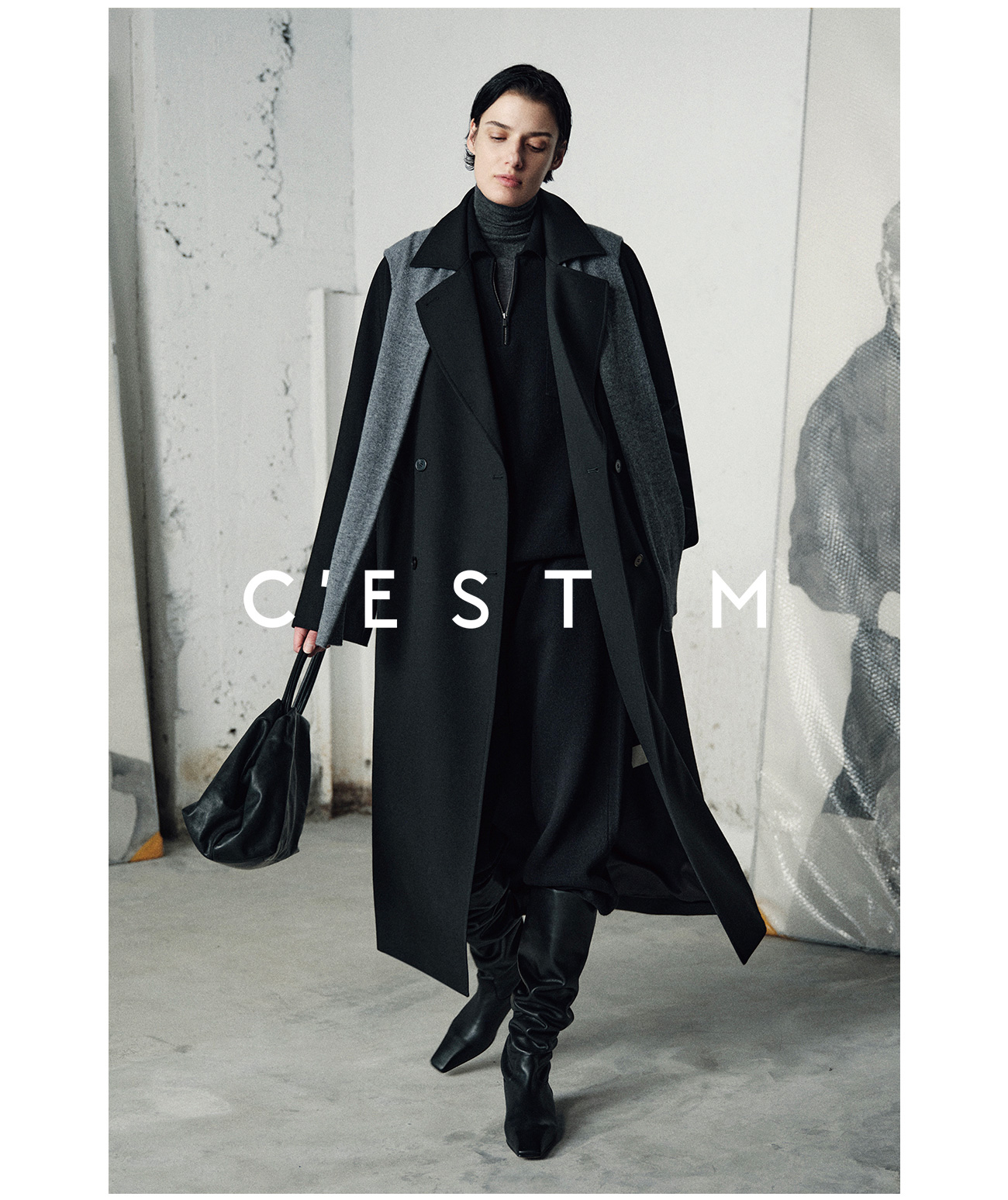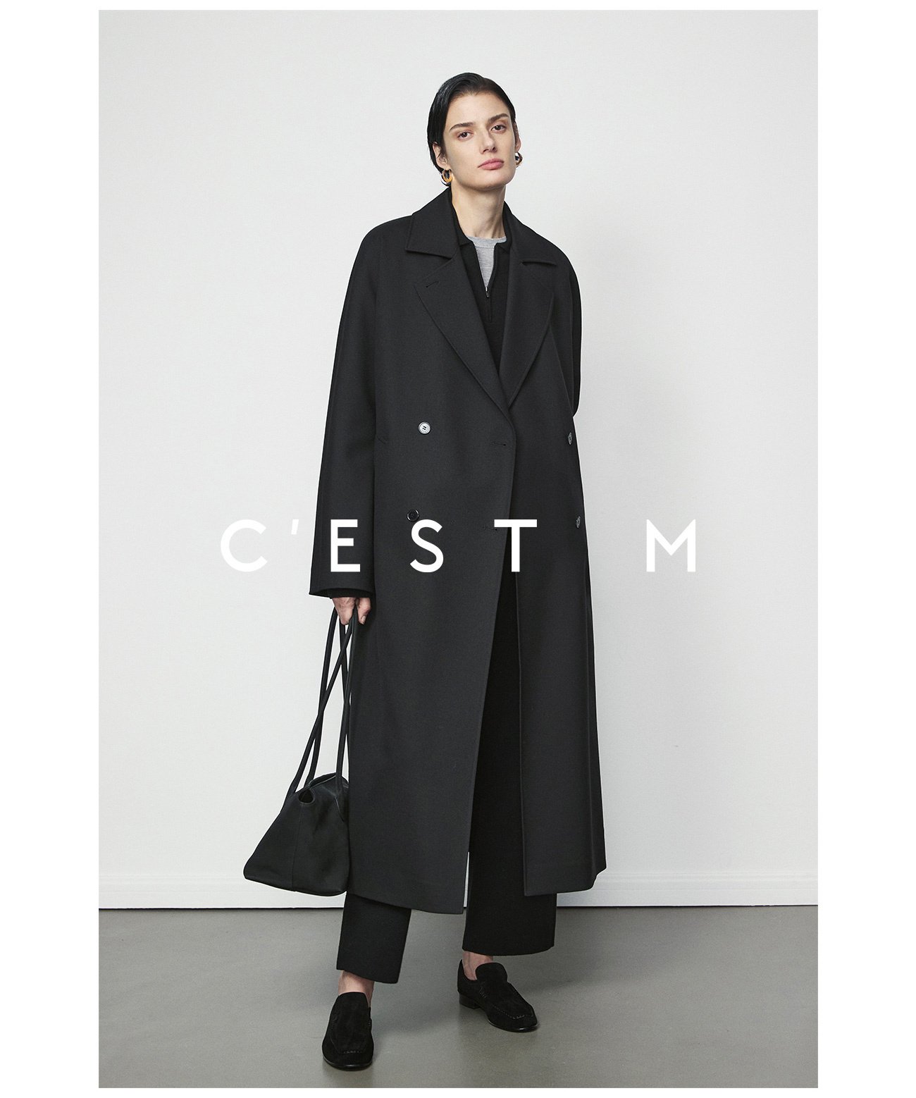 Cest m | Italian Marzotto Virgin Wool Row Quiet Luxury Style Long & Short Double-Breasted Trench Coat