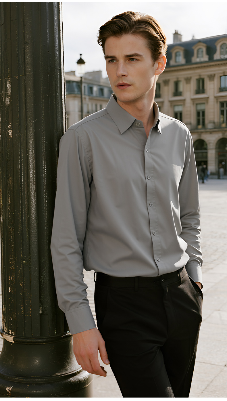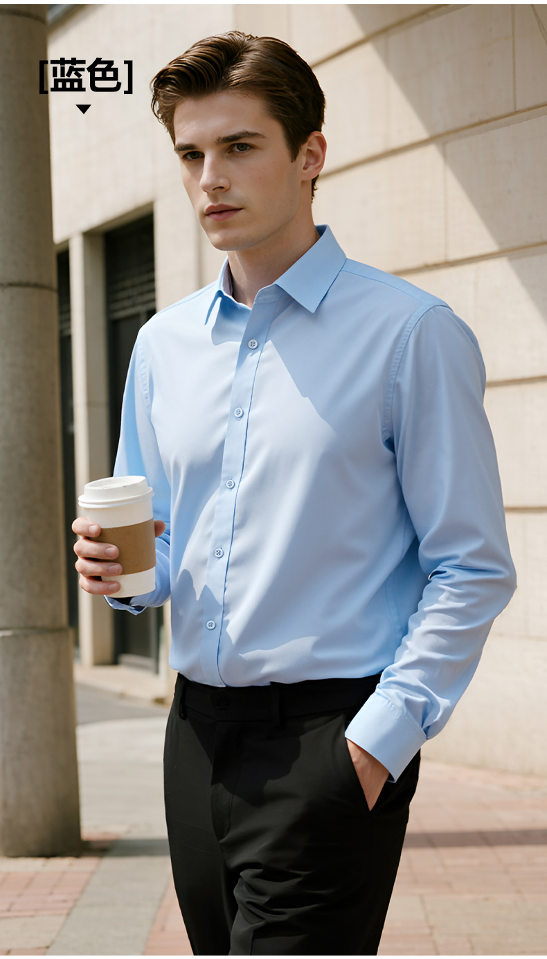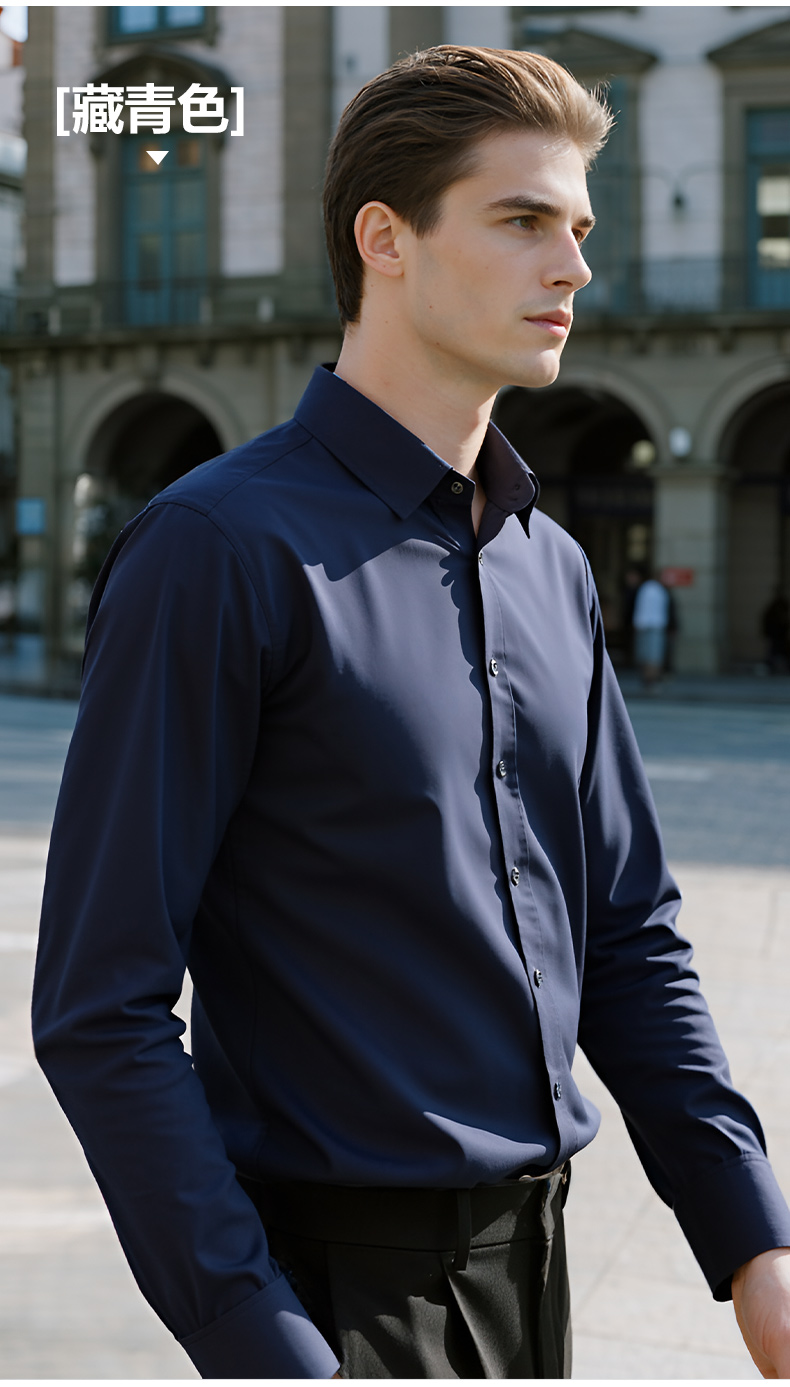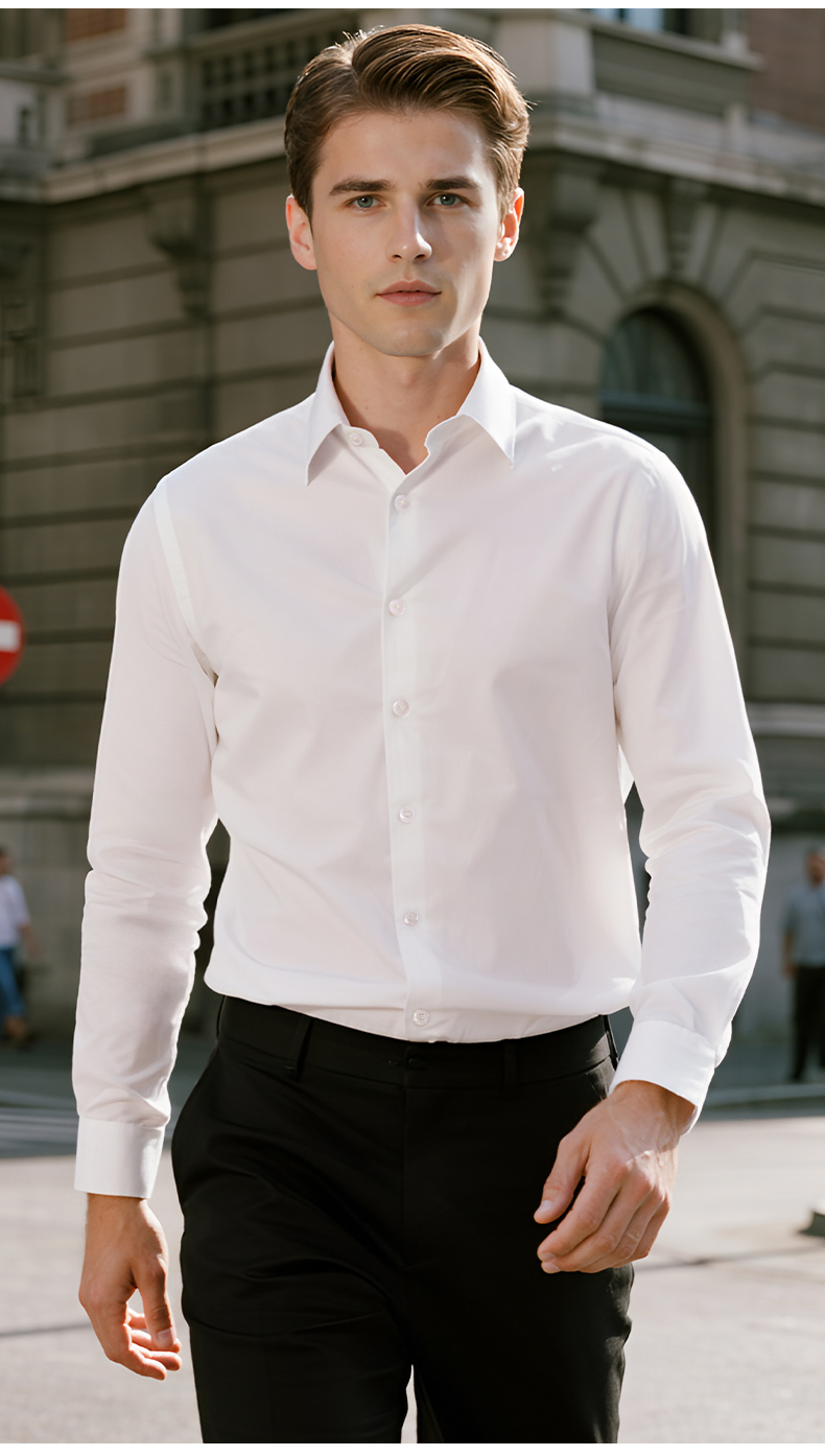 Pierre Cardin High-End White Velvet Long-Sleeved Shirt for Men in Autumn and Winter Business Casual Men's Anti-Wrinkle and Iron-Free Shirt