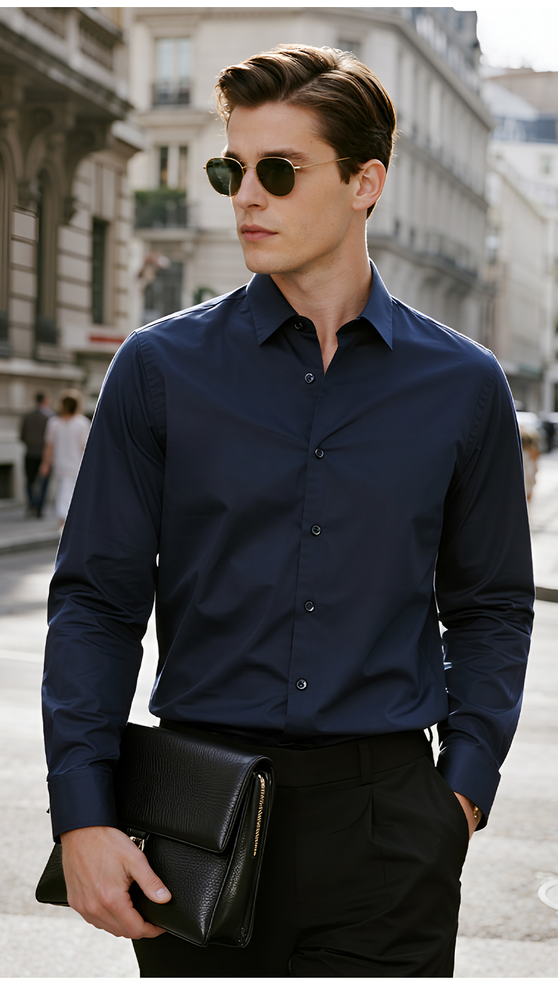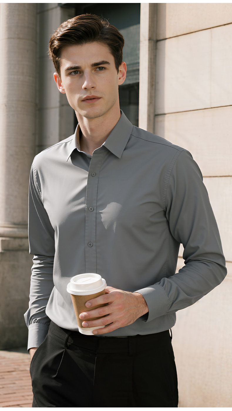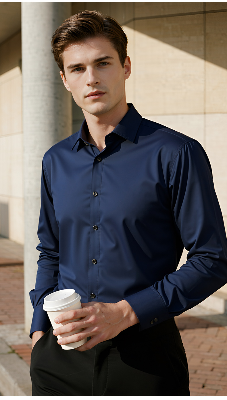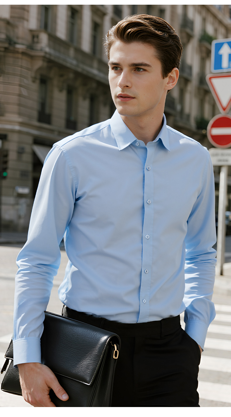Pierre Cardin High-End White Velvet Long-Sleeved Shirt for Men in Autumn and Winter Business Casual Men's Anti-Wrinkle and Iron-Free Shirt